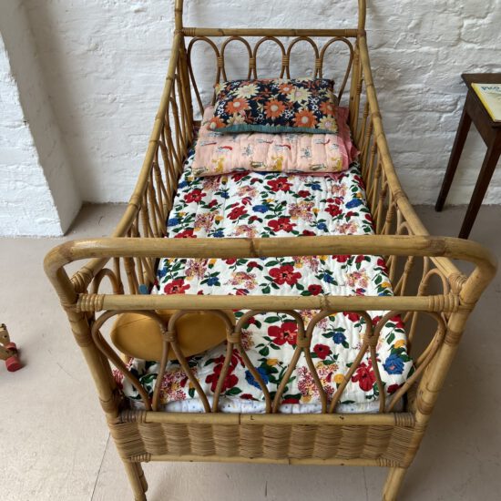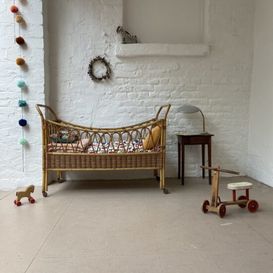 Luna ist ein zuckersüßes Kindertischset aus Rattan. Es stammt aus den 70er Jahren, ist sehr gut erhalten – die Stühle tragen sogar mich als Erwachsene – und sind für Kinder ab ca. 2,5 Jahren geeignet. Das Set ist ein wunderschöner warmer charmanter Hingucker in jedem Kinderzimmer;-)