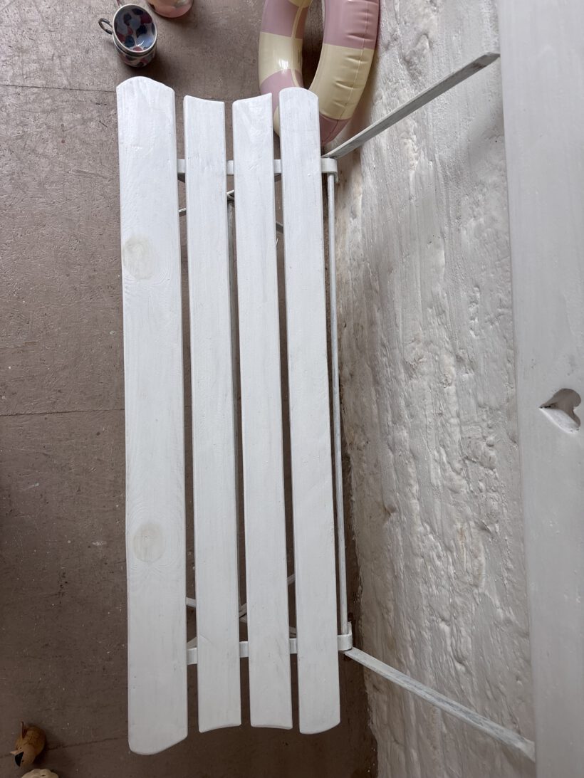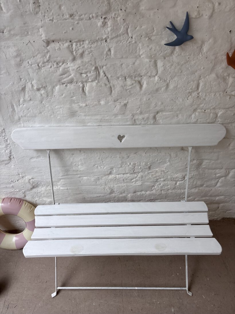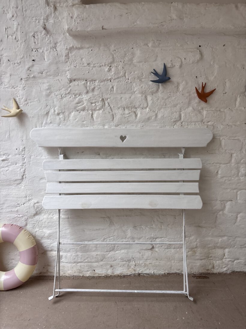 …sind zwei schöne alte Vintage Klappbänke aus Frankreich. Charmant und praktisch, denn schmal zusammenklappbar und somit easy verstaubar. Beide Bänke haben wir im Norden Frankreichs auf einem Flohmarkt entdeckt. Sie sind von uns nur gefunden, gesäubert, geliebt und fotografiert worden und sind ansonsten so geblieben, wie gefunden, weil sie so wunderschön sind. Beide haben also leichte Patina Spuren (siehe Fotos). es gibt eine grüne und eine weiße Bank. Sie werden als separates Produkt aufgeführt.