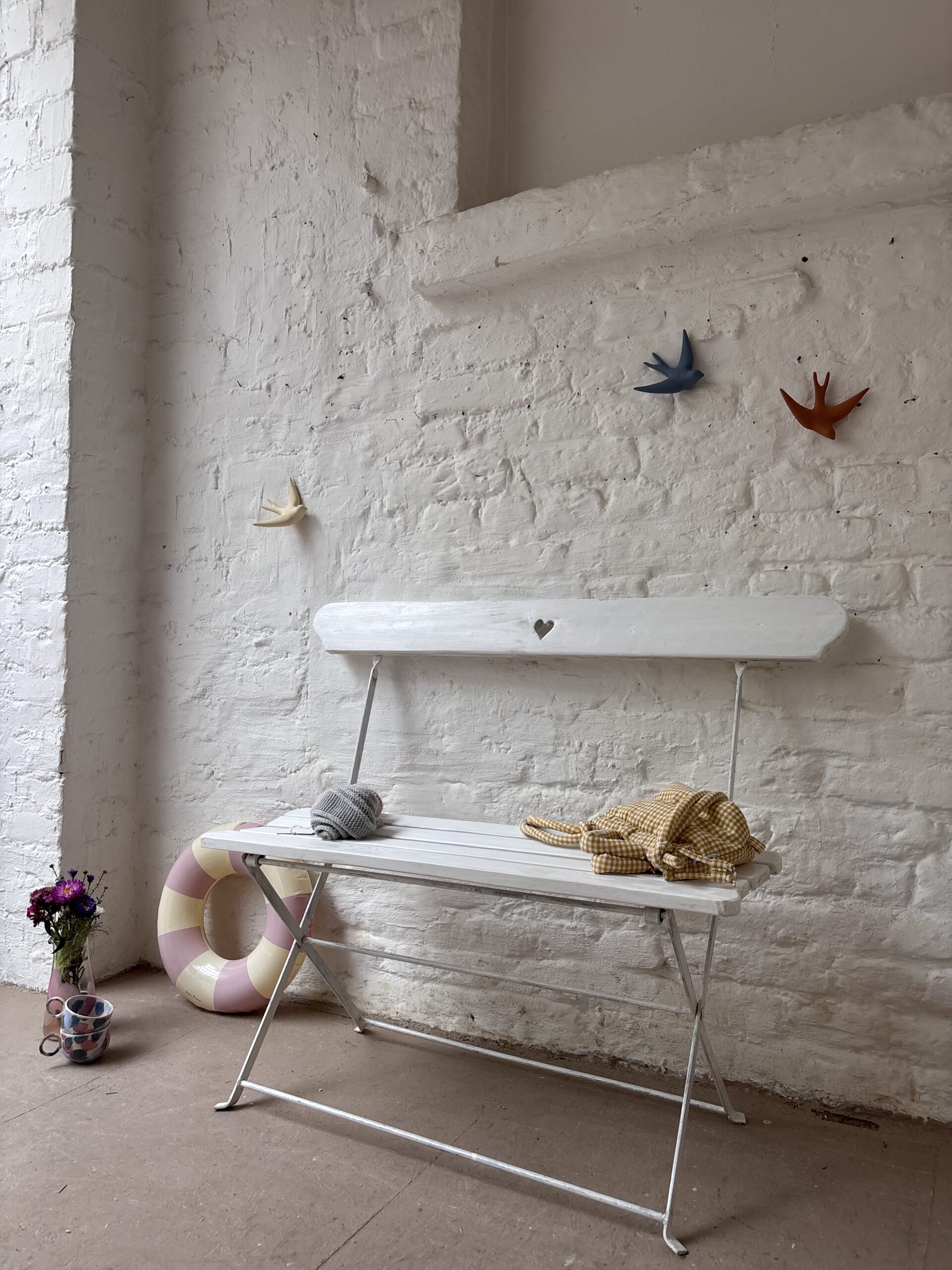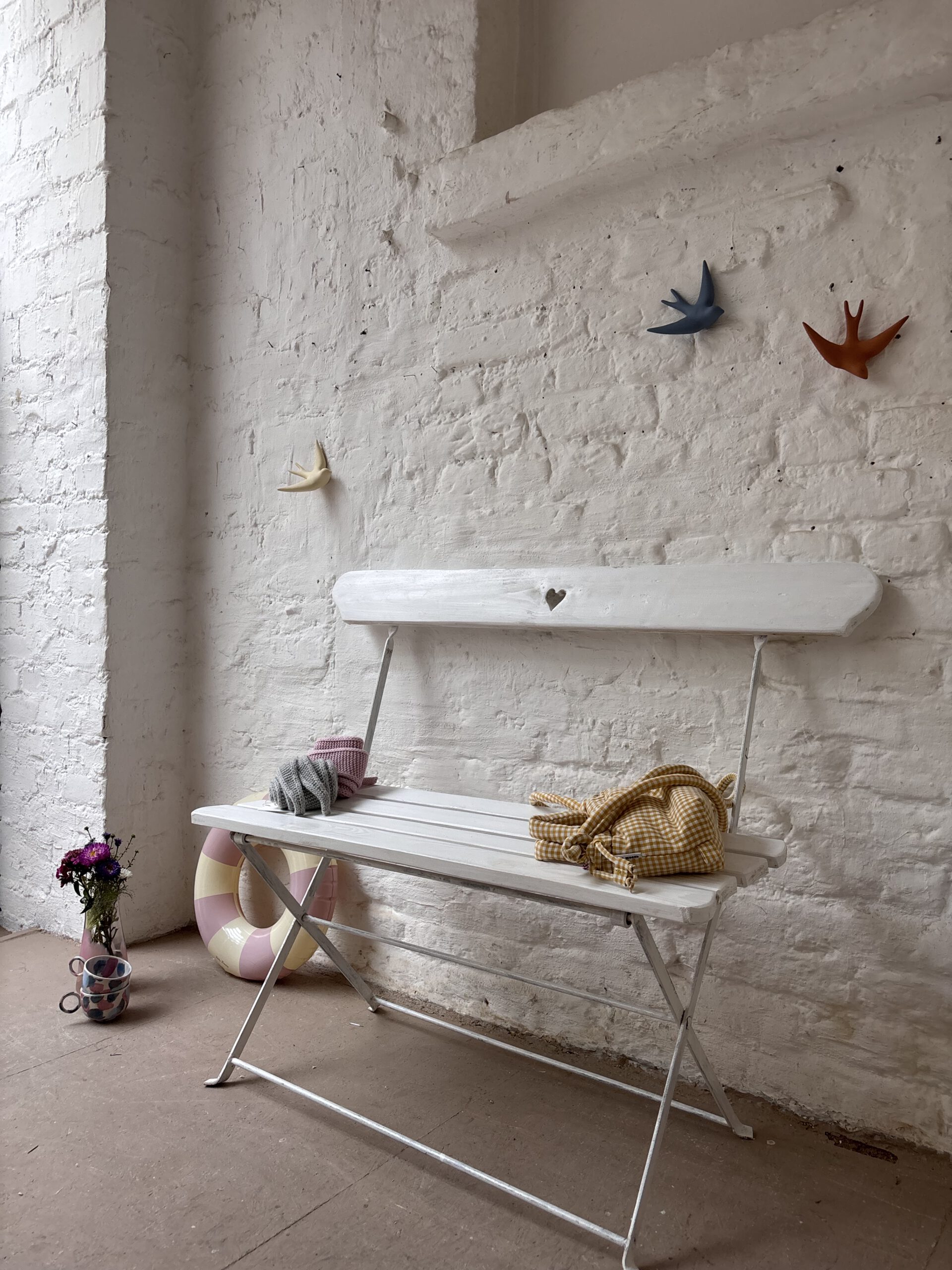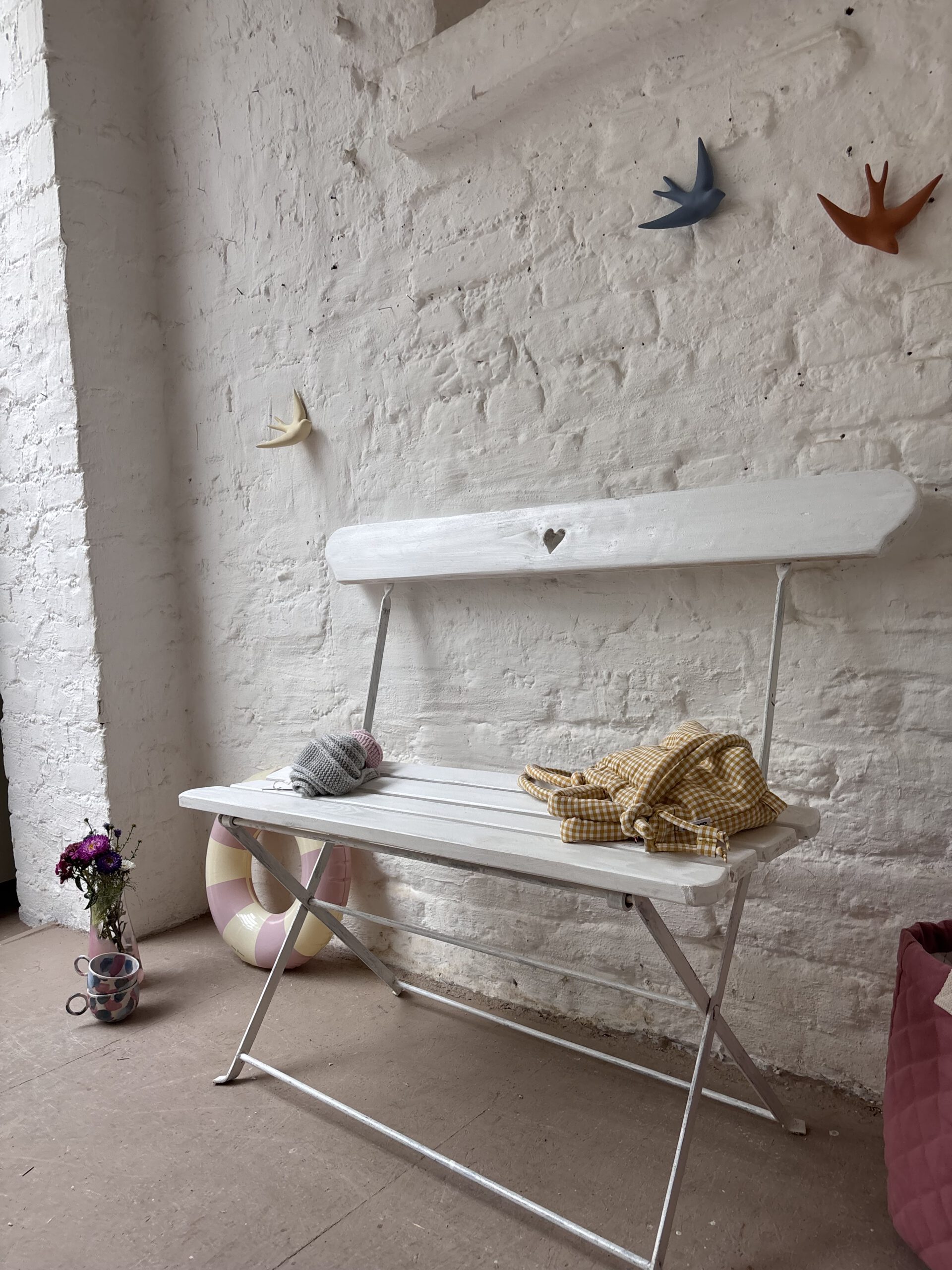 …sind zwei schöne alte Vintage Klappbänke aus Frankreich. Charmant und praktisch, denn schmal zusammenklappbar und somit easy verstaubar. Beide Bänke haben wir im Norden Frankreichs auf einem Flohmarkt entdeckt. Sie sind von uns nur gefunden, gesäubert, geliebt und fotografiert worden und sind ansonsten so geblieben, wie gefunden, weil sie so wunderschön sind. Beide haben also leichte Patina Spuren (siehe Fotos). es gibt eine grüne und eine weiße Bank. Sie werden als separates Produkt aufgeführt.