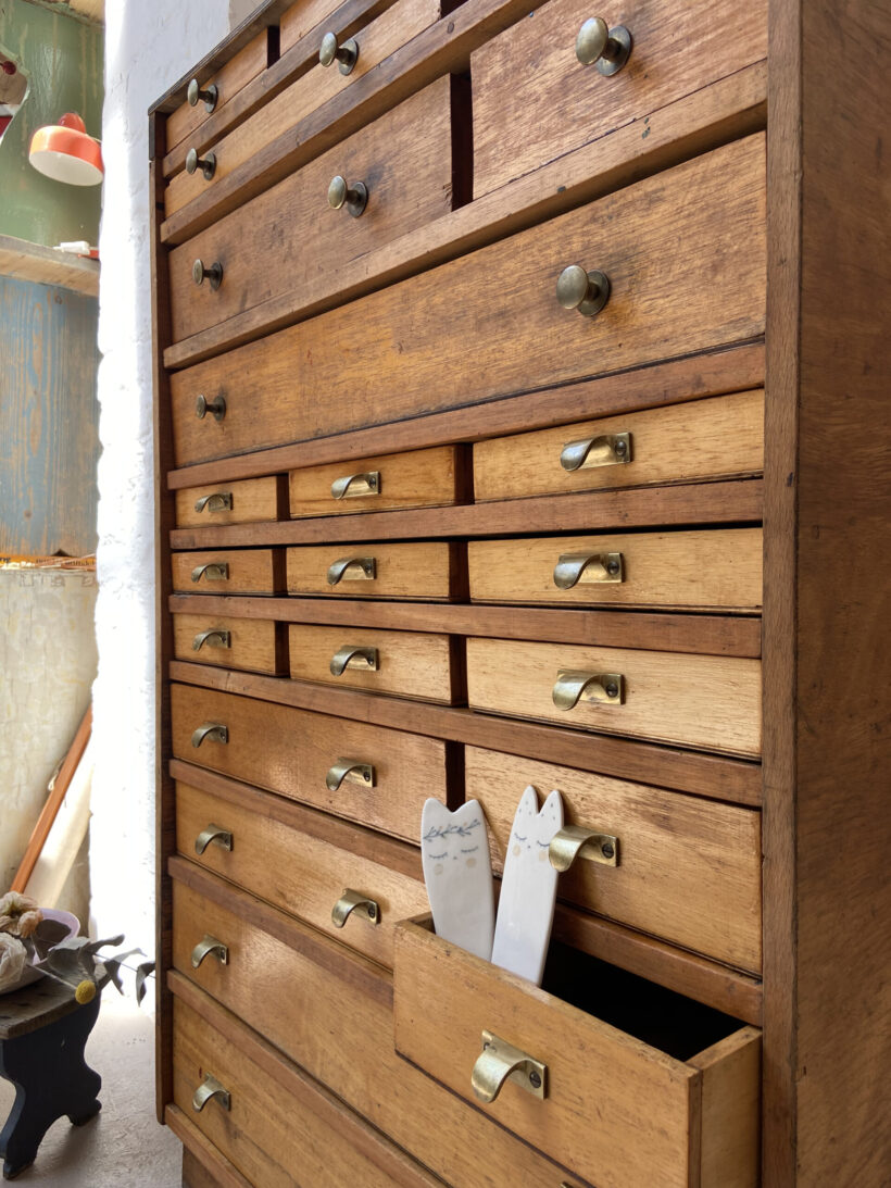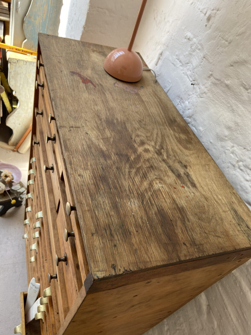 Almut ist ein wunderschöner besonderer Apotheker, der in den 50ern zweckentfremdet wurde und zu einem Werkstatt- Schubladenschrank umgebaut wurde. Almuts Geschichte und Patina schenkt ihm absolute Einzigartigkeit. Er ist ein individuelles Möbel mit viel Hingucker-Charme;-)