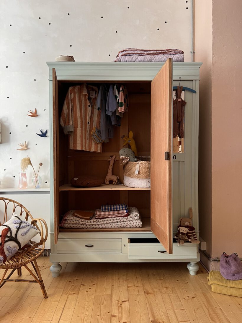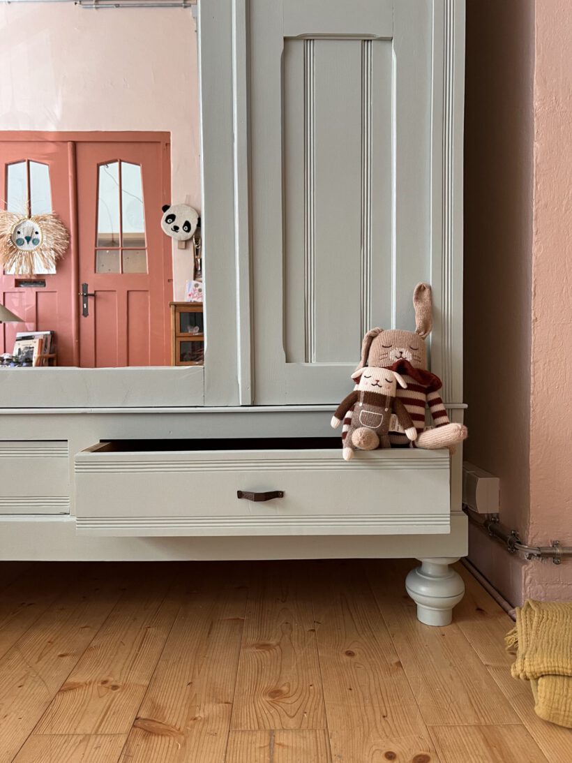 Als Steckschrank kann man Antoine einfach in 9 Teilen auf- und abbauen. Gerne geben wir eine Anleitung dazu mit, falls diese Art von Schrankaufbau euch noch unbekannt ist. Kleine Info vorab: Steckschränke sollten immer auf geradem Boden stehen, damit die Türen gut schließen und öffnen. Gegebenenfalls kann man einen ungeraden Boden unterlegen.