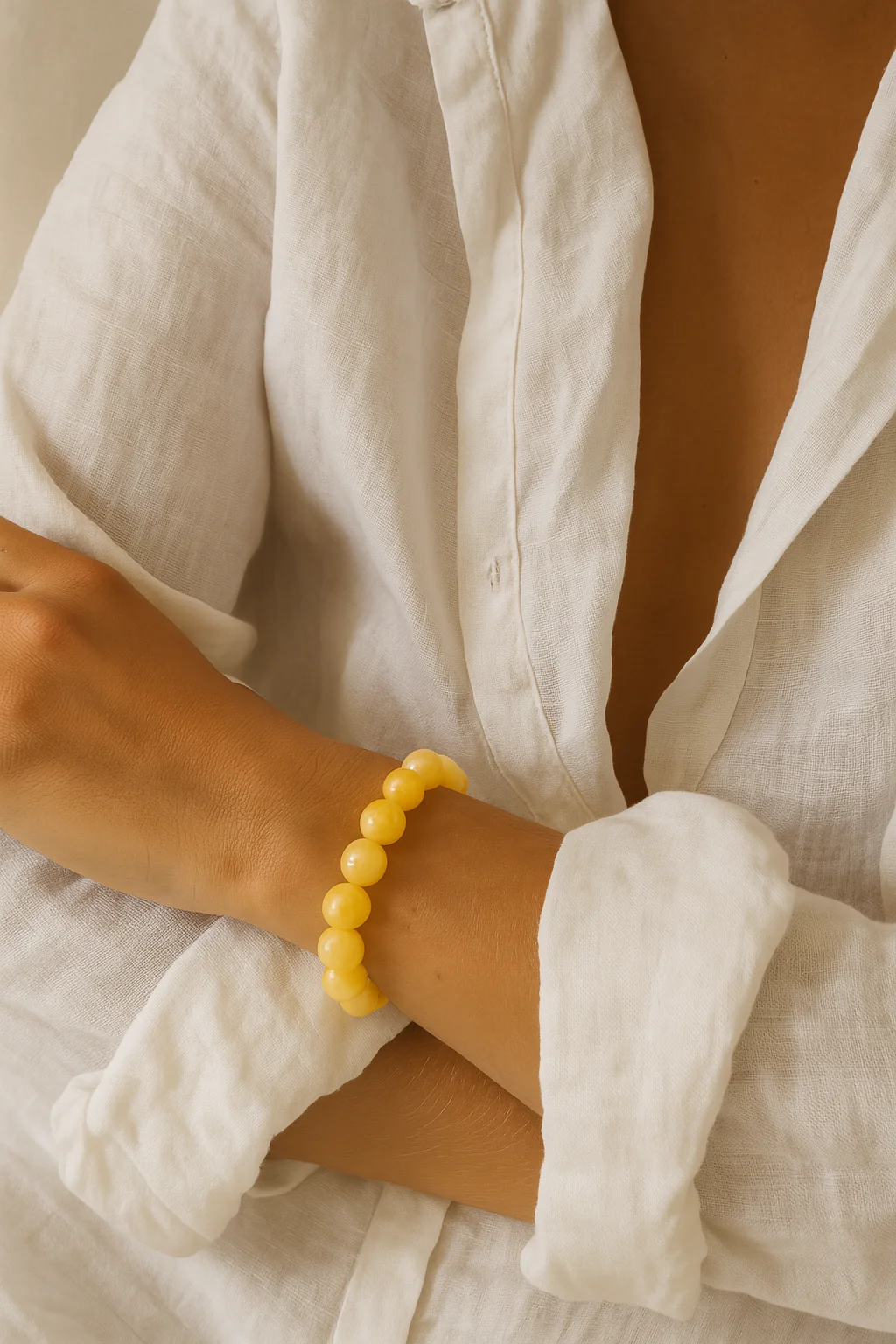 Das Chunky Yellow Jade Kristallarmband wurde mit dem Ziel kreiert, Ihnen zu mehr Wohlbefinden, Freude und innerer Ruhe zu verhelfen. Gelber Jade soll Glück, Wohlstand, mehr Selbstvertrauen und innere Ausgeglichenheit bringen.Das mit Sorgfalt und Präzision gefertigte Armband ist mehr als nur ein Schmuckstück – es ist Ausdruck natürlicher Schönheit und positiver Energie.