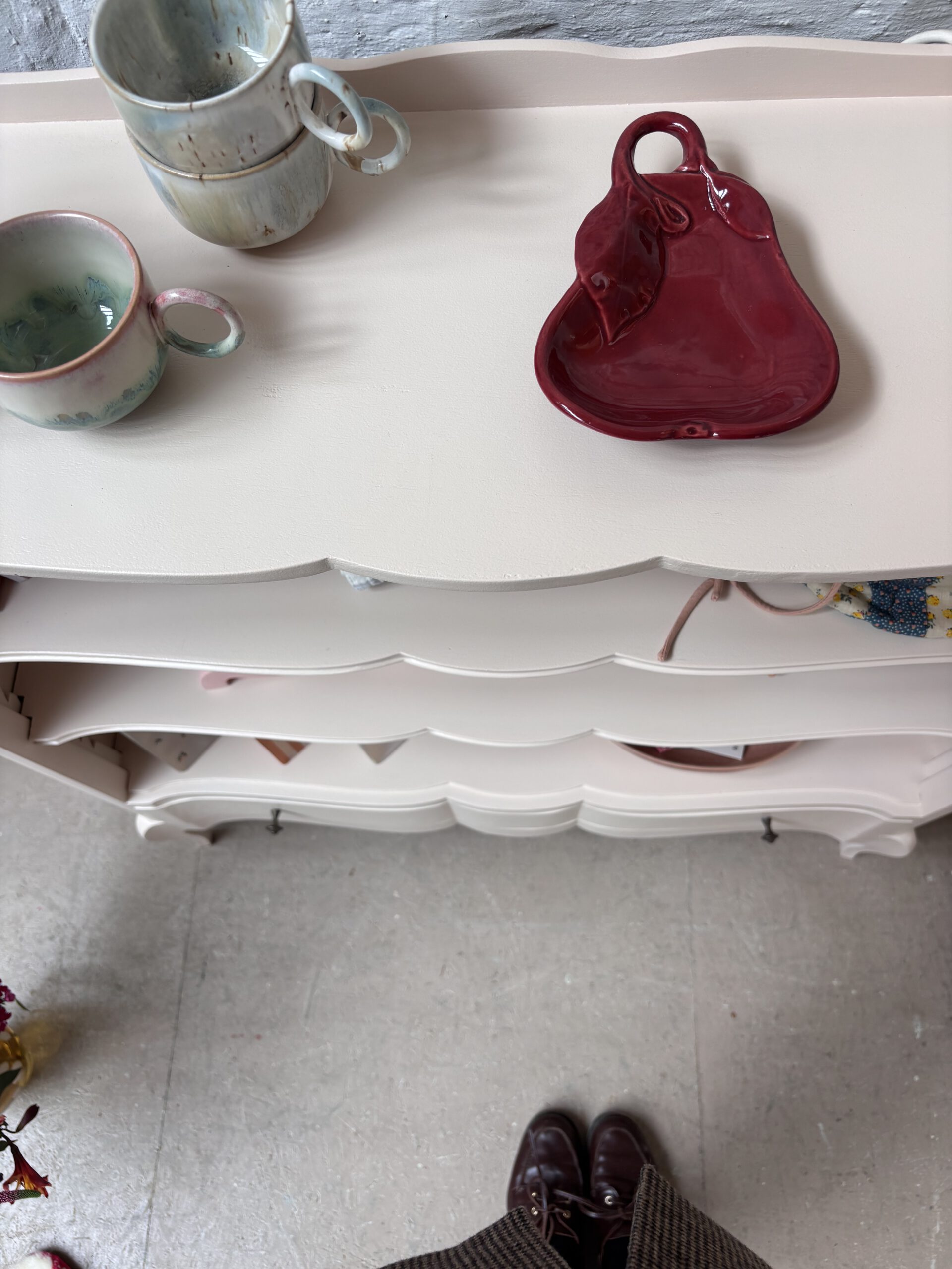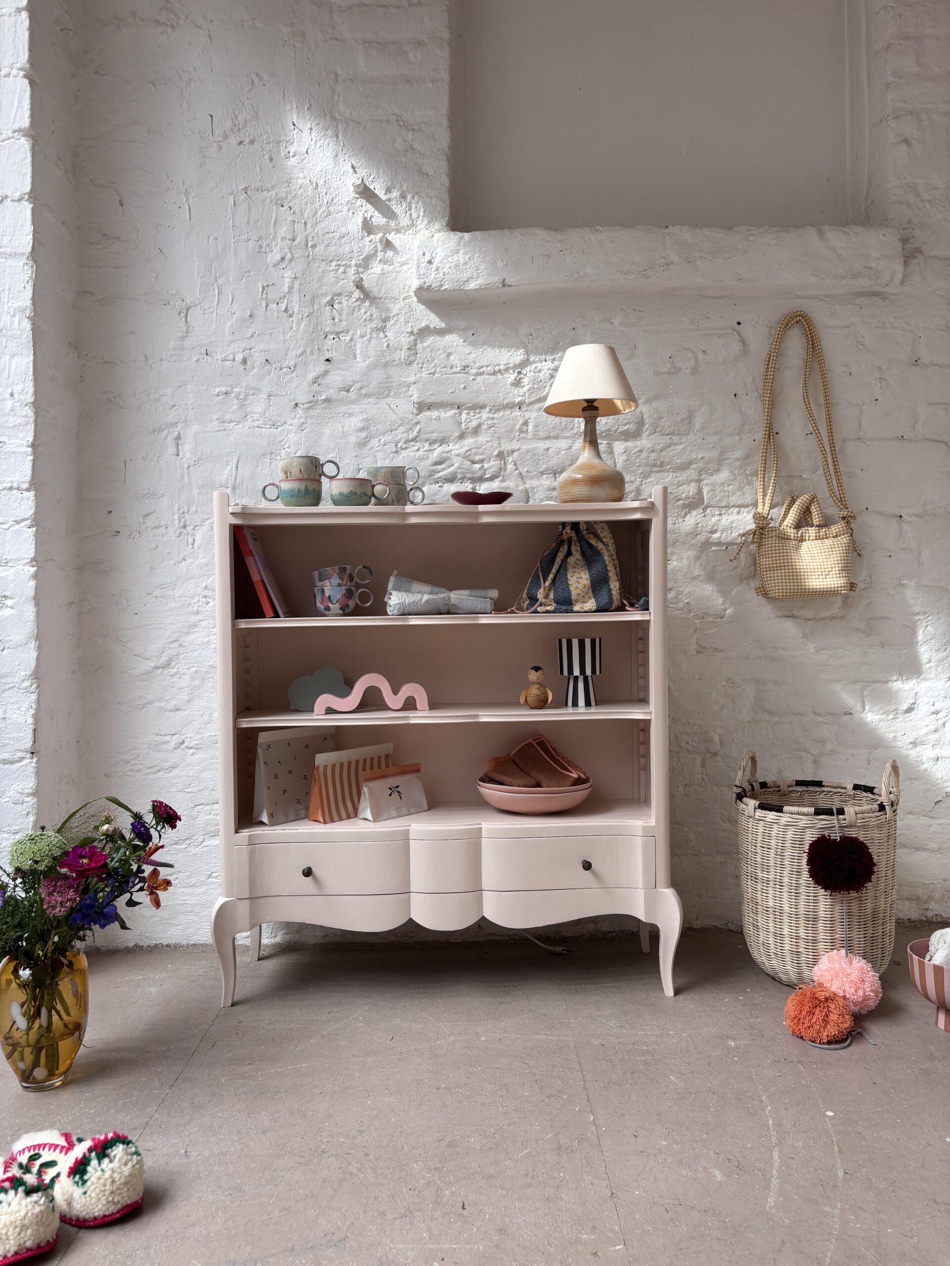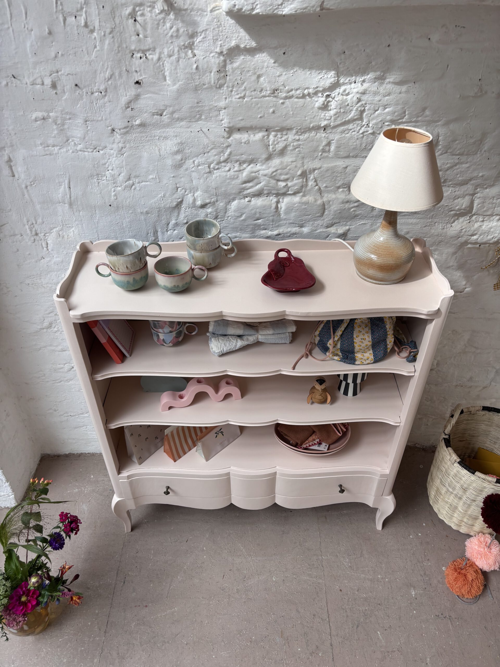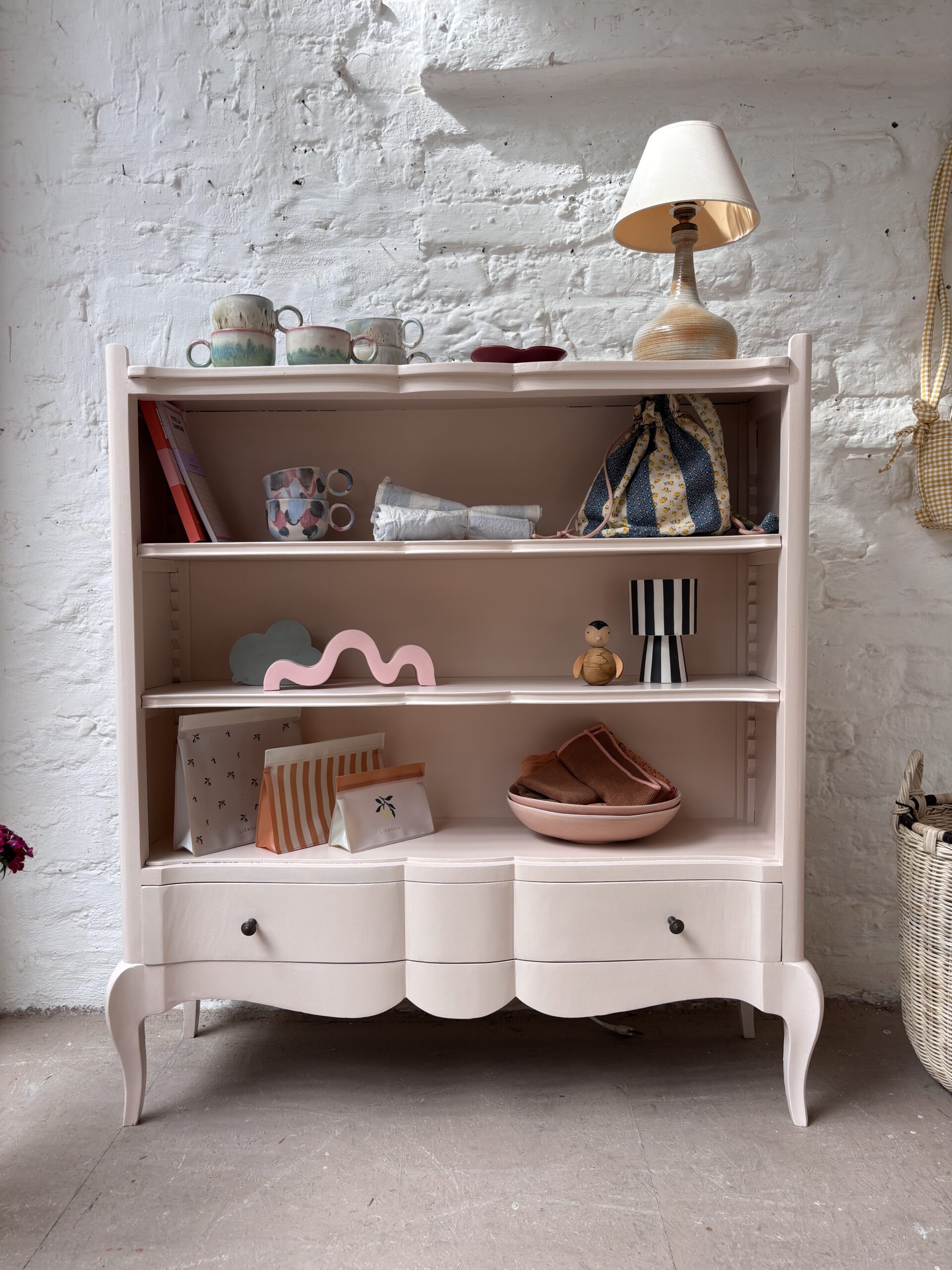 Babette wurde von uns aufbereitet, geschliffen, grundiert und zwei Mal lackiert in einem schönen rosa-apricot von Farrow and Ball.