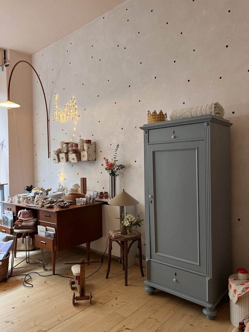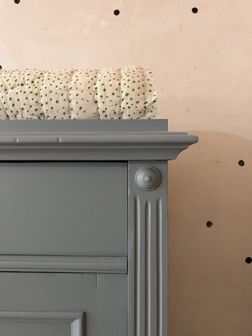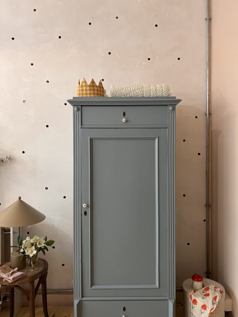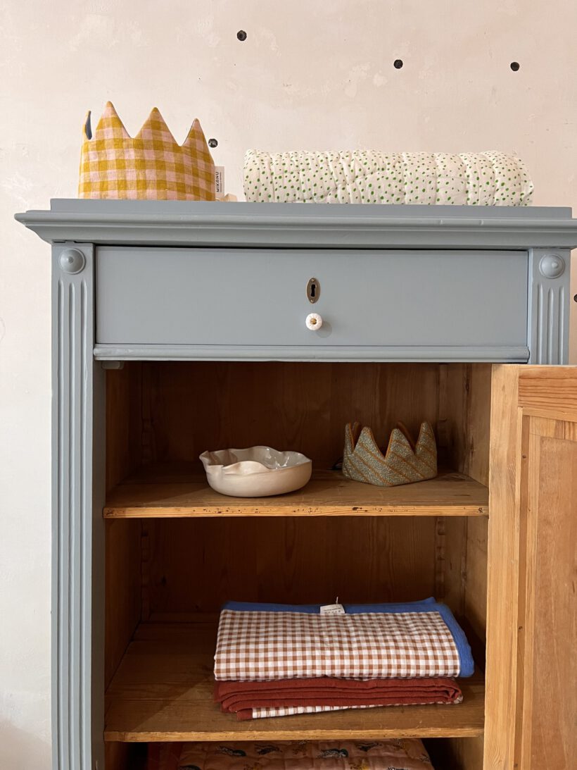 unser kleiner Liebling unter den neuen Schränken. Wir finden Benno einfach unglaublich entzückend. Benne´s Look, die Größe, die zwei Schubladen die schmalen Maße, die Farbe, alle diese Komponenten machen in ganz besonders. Zudem bringt er ne ganze Menge Charme mit – er ist über 100 Jahre alt und immer noch ein Hingucker. Innen hat er vier Legefächer. Außen haben wir Benno in ein neues wunderhübsches blau getaucht von Anna von Mangold Farben. Wir sind verliebt!