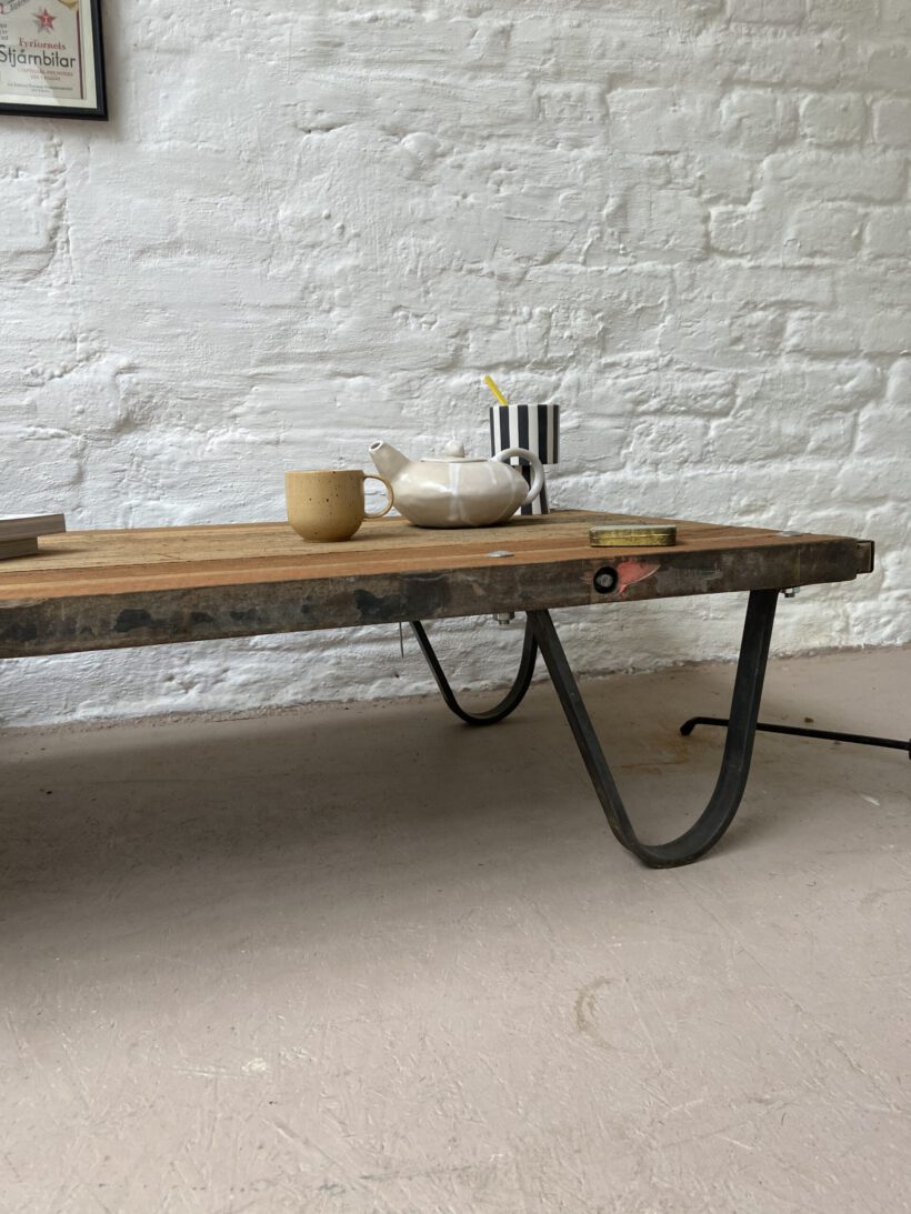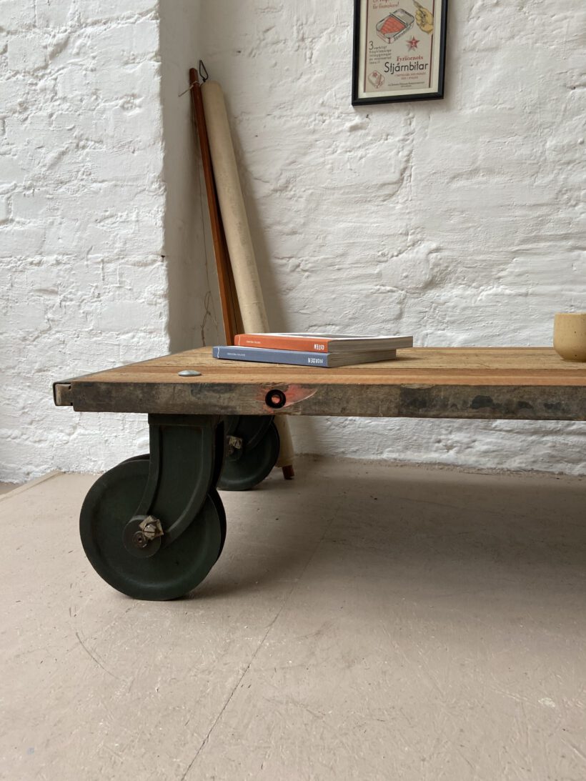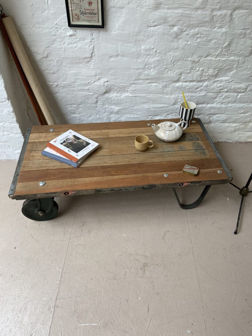 Benno ist ein alter Palettenwagen, der als Couchtisch aufbereitet wurde. Der Tisch hat absoulten Industricharme und bringt einen sehr modernen coolen Look ins Wohnzimmer. Die Maße sind nahezu perfekt für einen Couchtisch – nicht zu groß und nicht zu klein;-) Das Holz hat natürlich Patina.
