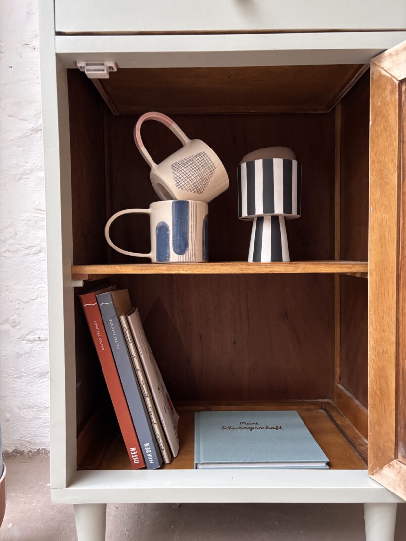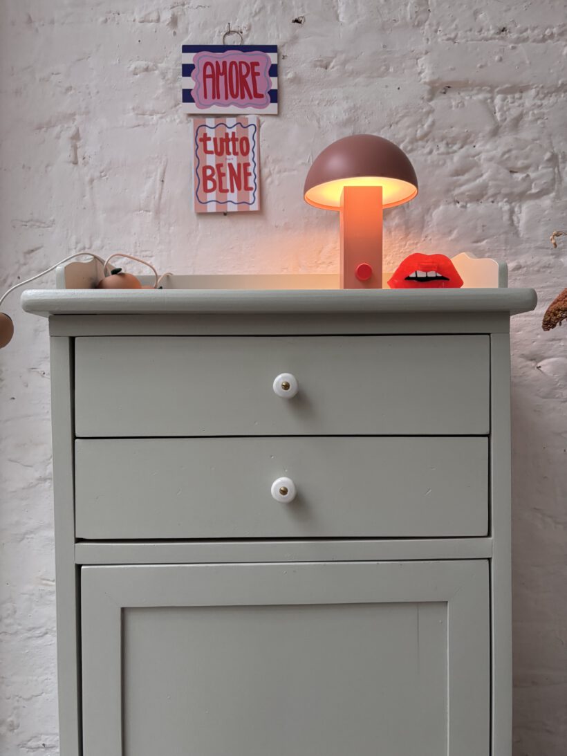 Bernard ist einer unserer Jüngsten, denn er hat keine tausend Jahre auf dem Buckel – definitiv ein paar Jahre weniger. Wir schätzen er ist gut 20 -30 Jahre alte. Gefunden haben wir diesen hübschen Kerl in Frankreich und weil uns seine zwei süßen Schubladen und sein Krönchen auf dem Kopf mit großen süßen Hundeaugen angeschaut hat, haben wir ihn mitgenommen und uns kurzerhand verliebt. Hübsch ist der! Und praktisch. Bernard hat noch neue Füße von uns bekommen, weil er leider keine hatte und einen paar Schönheitsreparaturen. Jetzt strahlt er und freut sich auf eine neue Lebensrunde.