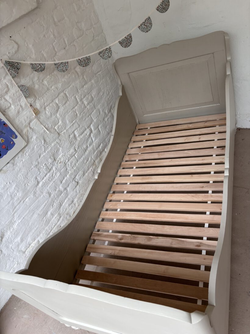 ein wunderschönes antikes Biedermeier Bett mit dezenten und besonderen Verzierungen – einfach gemütlich und schön.
