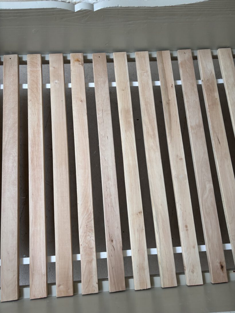 Selma wird ganz einfach ineinander gesteckt: zwei Seitenteile und die beiden Fuß- und Kopfteile. Ein einfaches modernes Roll-Lattenrost ist für diese Bett vorhanden. Dieses legt man einfach auf die Bettinnenflächen.