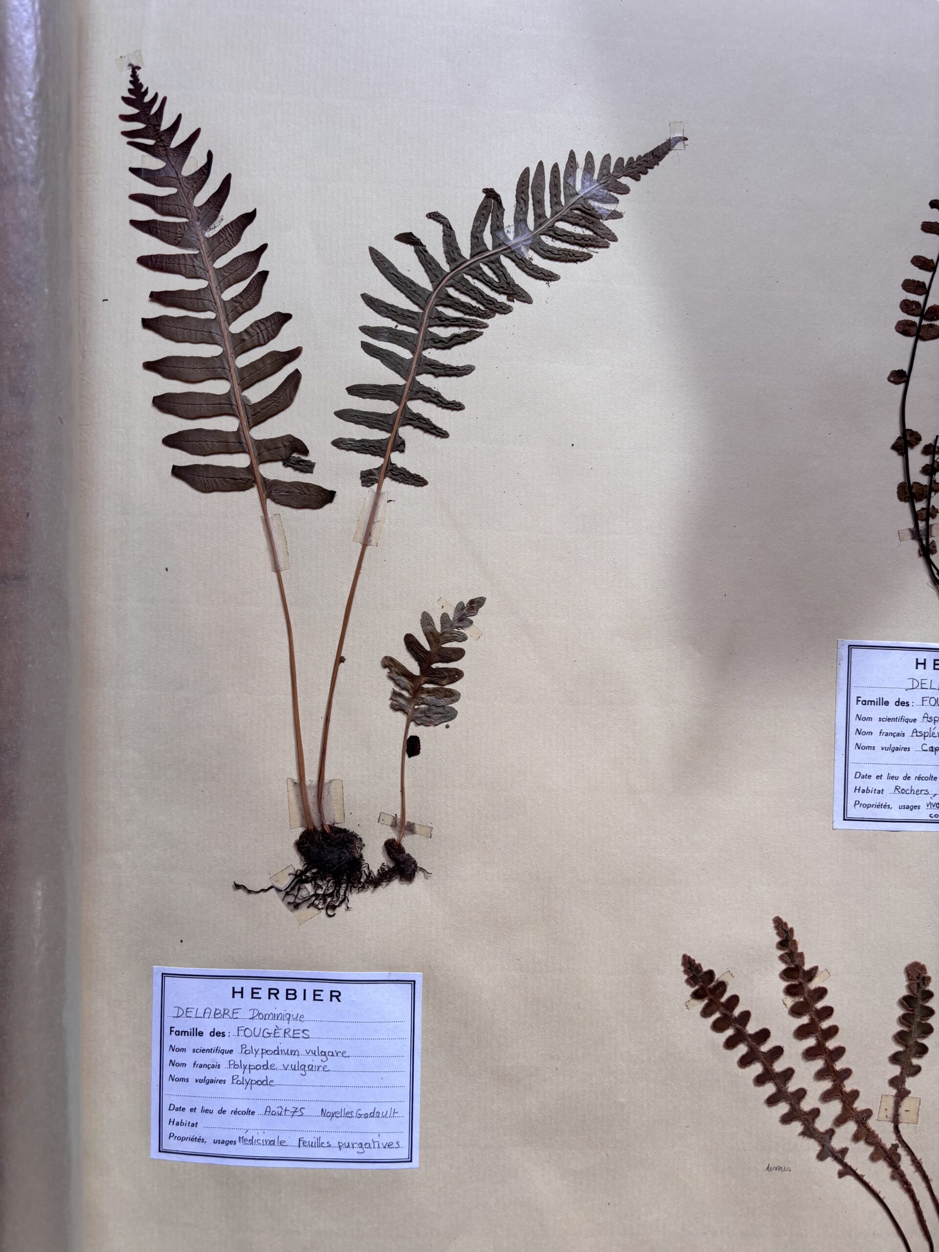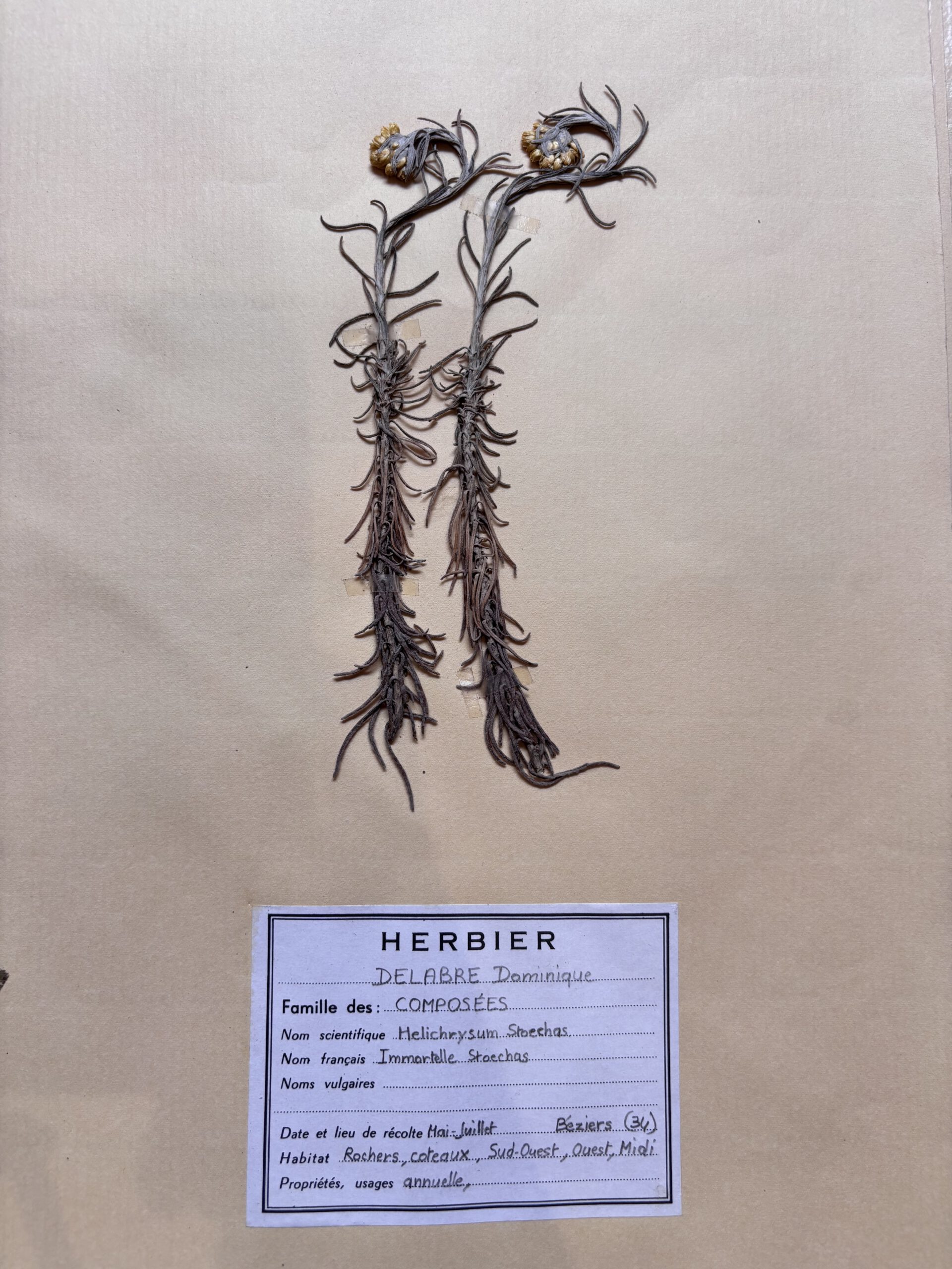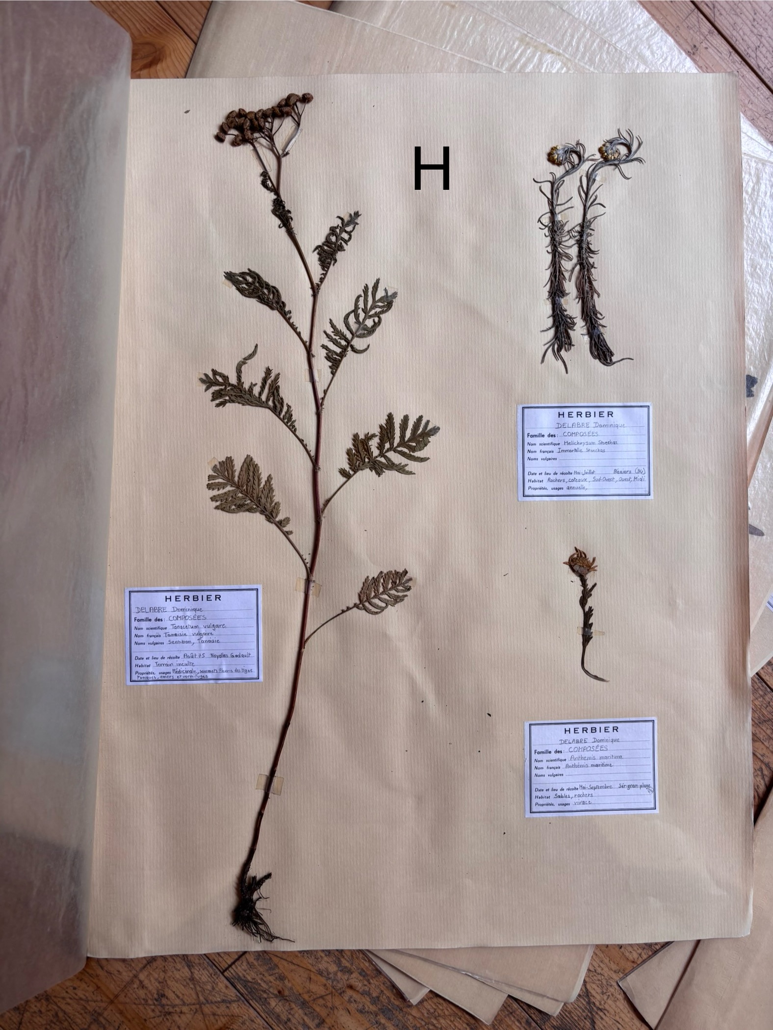 Die alten gesammelten Blüten und Pflanzen kommen alle in einem Seidenpapier und sind bescheiftet auf Französisch in alter Schrift.