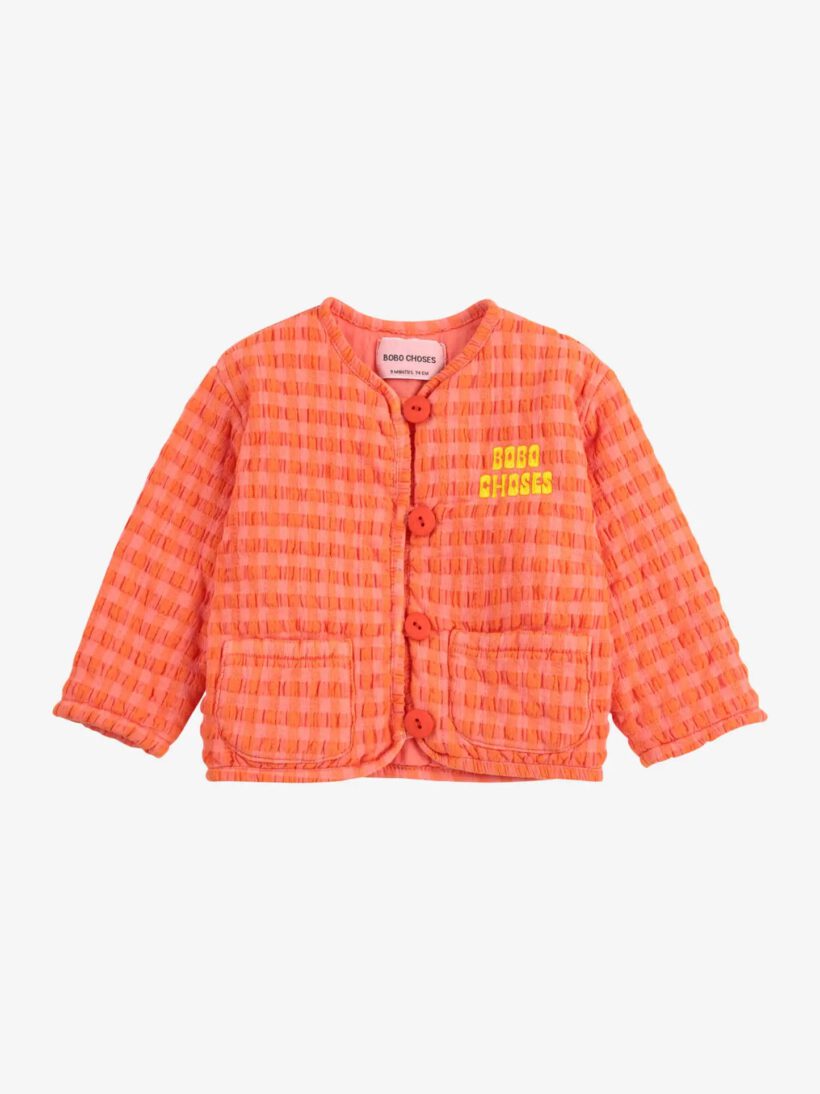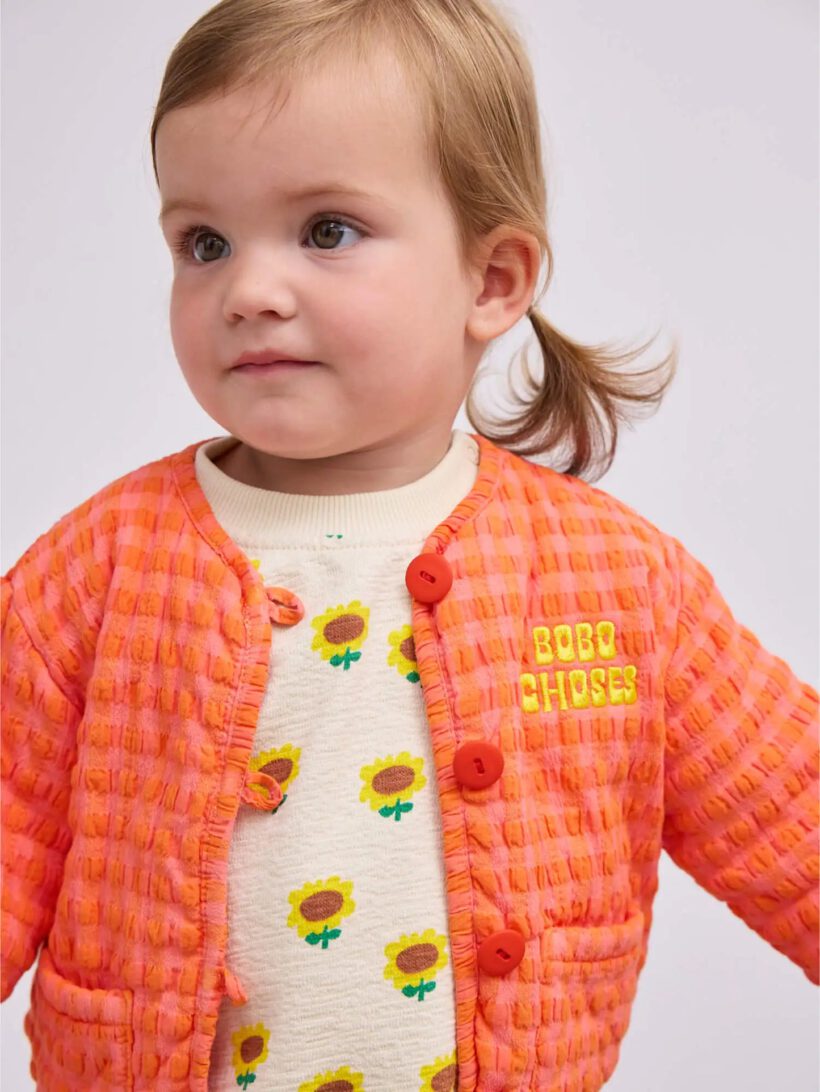 Leichte, verspielte Seersuckerjacke von bobo choses. Mit langen Ärmeln und praktischen Taschen. 93% Baumwolle,3% Elastan, and 4% Polyester und mit viel Liebe in Spanien hergestellt.