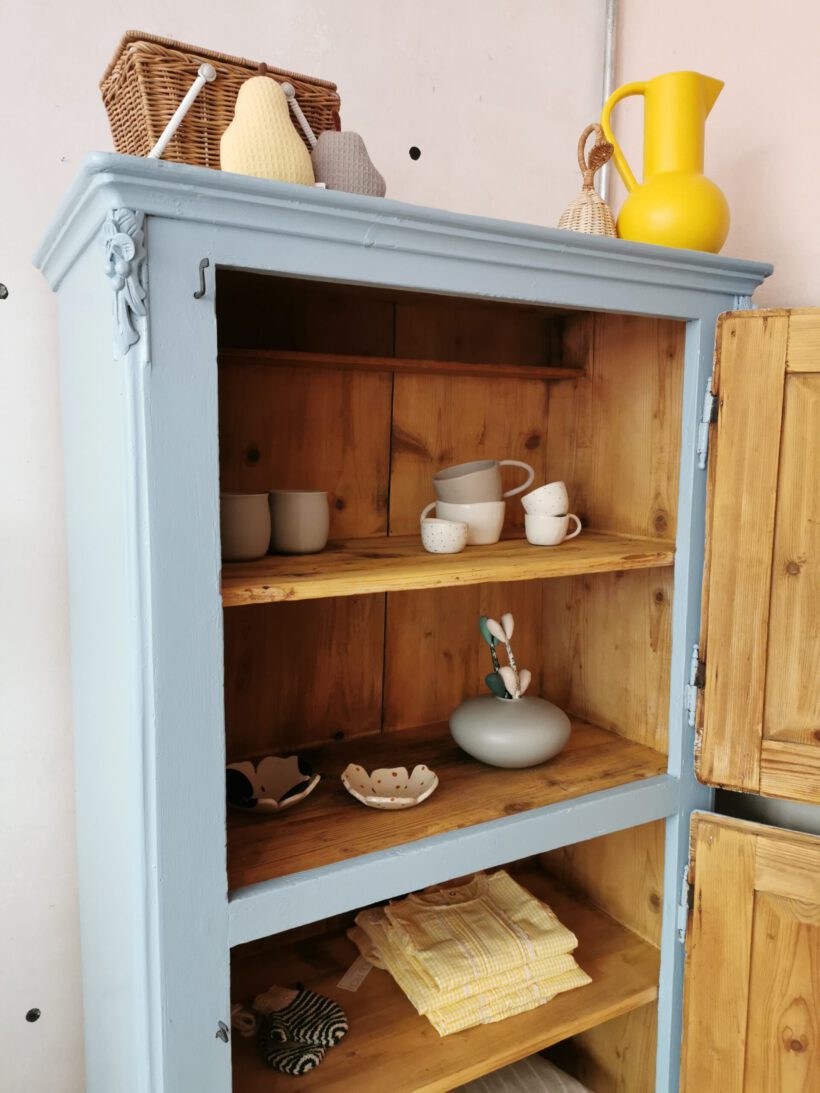 ein zeitloser Klassiker, einer unserer geliebten Brotschränke! Dieser hier ist etwas ganz besonderes, mit jeweils 2 Fächern, versteckt hinter 2 Türen. Im oberen Fach befindet sich noch eine zusätzliche Ablage für kleine Dinge.