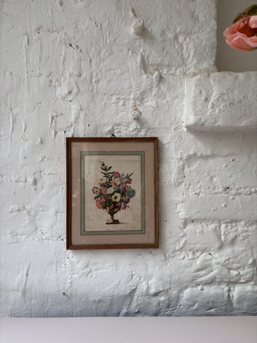 Dieser antike Kunstdruck fasziniert allein durch seine farblichen Komponenten in Kombination mit seiner Patina. Der Druck strahlt Ruhe und Gelassenheit aus und ist ein schöner Hingucker.