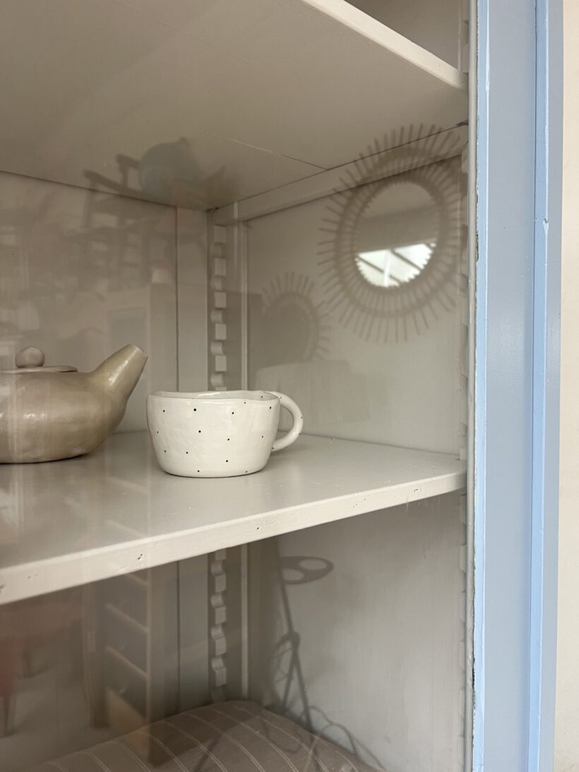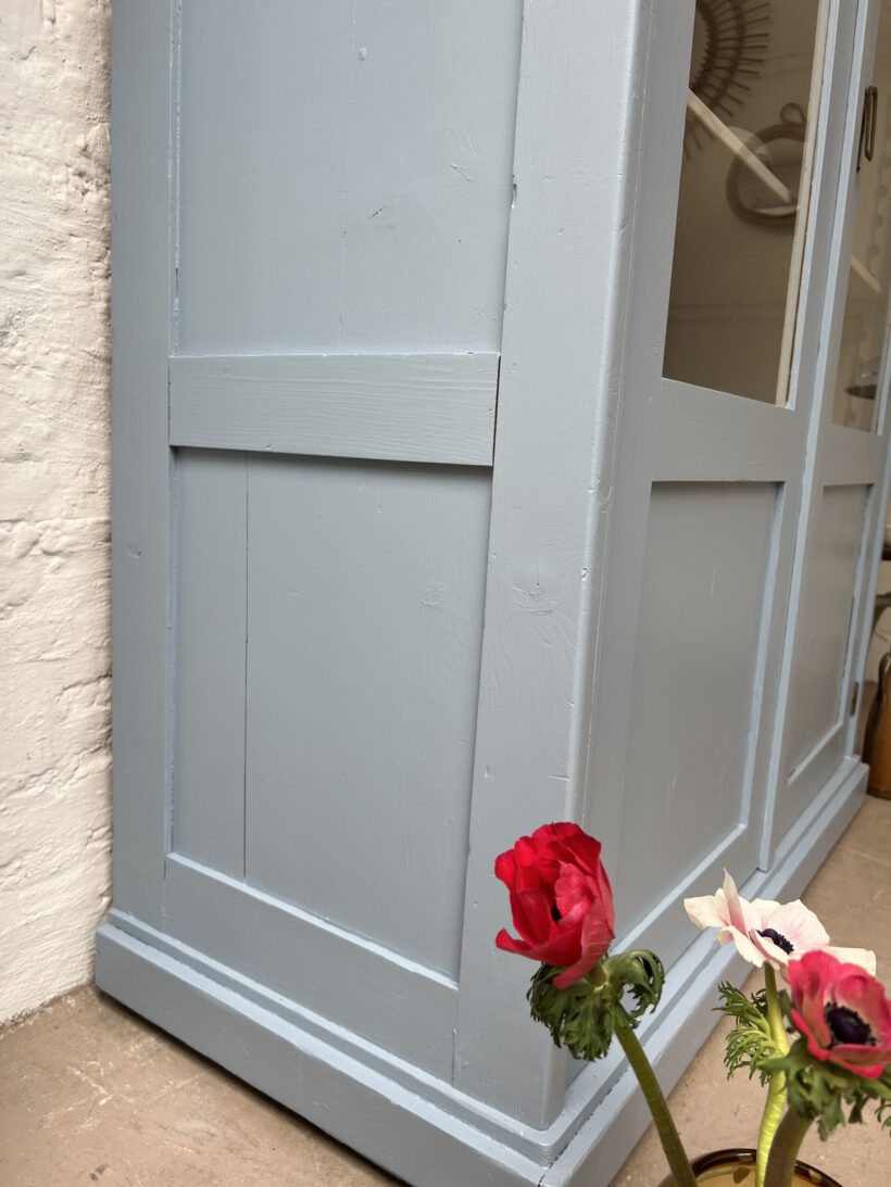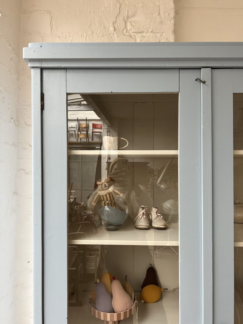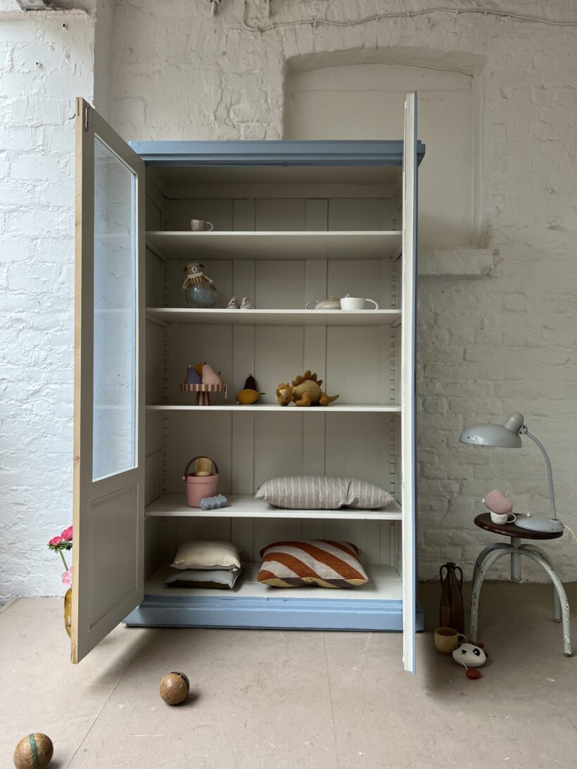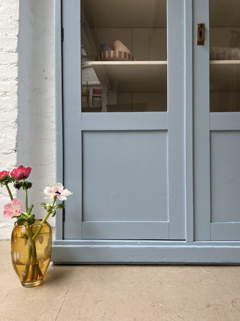 Wir haben Calvin restauriert und außen in wunderschönes mittelblau Farrow and Ball getaucht. Innen trägt er ein grauweiß ebenfalls von Farrow and Ball.