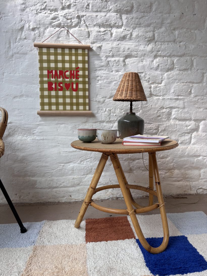 ein wunderschöner kleiner runder Rattantisch aus den 60er Jahren und aus Frankreich. Sehr gut erhalten und einfach zeitlos elegant.