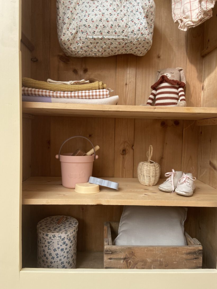 Cenda hat ein schönes Innenleben mit zwei Böden und einer Kleiderstange, die viel Platz zum Verstauen von Kisten aber auch Kleidern bieten. Die Böden kann man wahlweise auch höher anbringen oder weitere hinzufügen – dank der antiken Technik versetzbarer Leisten an den Seiten.