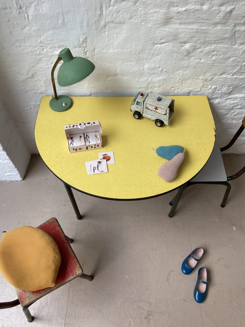 Chloé und Mathis sind zwei wunderschöne Design Kindertische aus dem Hause Tubax. Sie stammen aus einem belgischen Kindergarten der 50/60er Jahre und können einzeln oder zusammen gekauft werden. Das Halbmond Design ist sehr praktisch und besonders wenn der Tisch an der Wand steht – es gibt keine Ecken und Kanten für kleinere Kinder. Zusammengestellt bilden sie einen ovalen gr0ßen Kindertisch zum absoluten austoben in Sachen Kreativität.