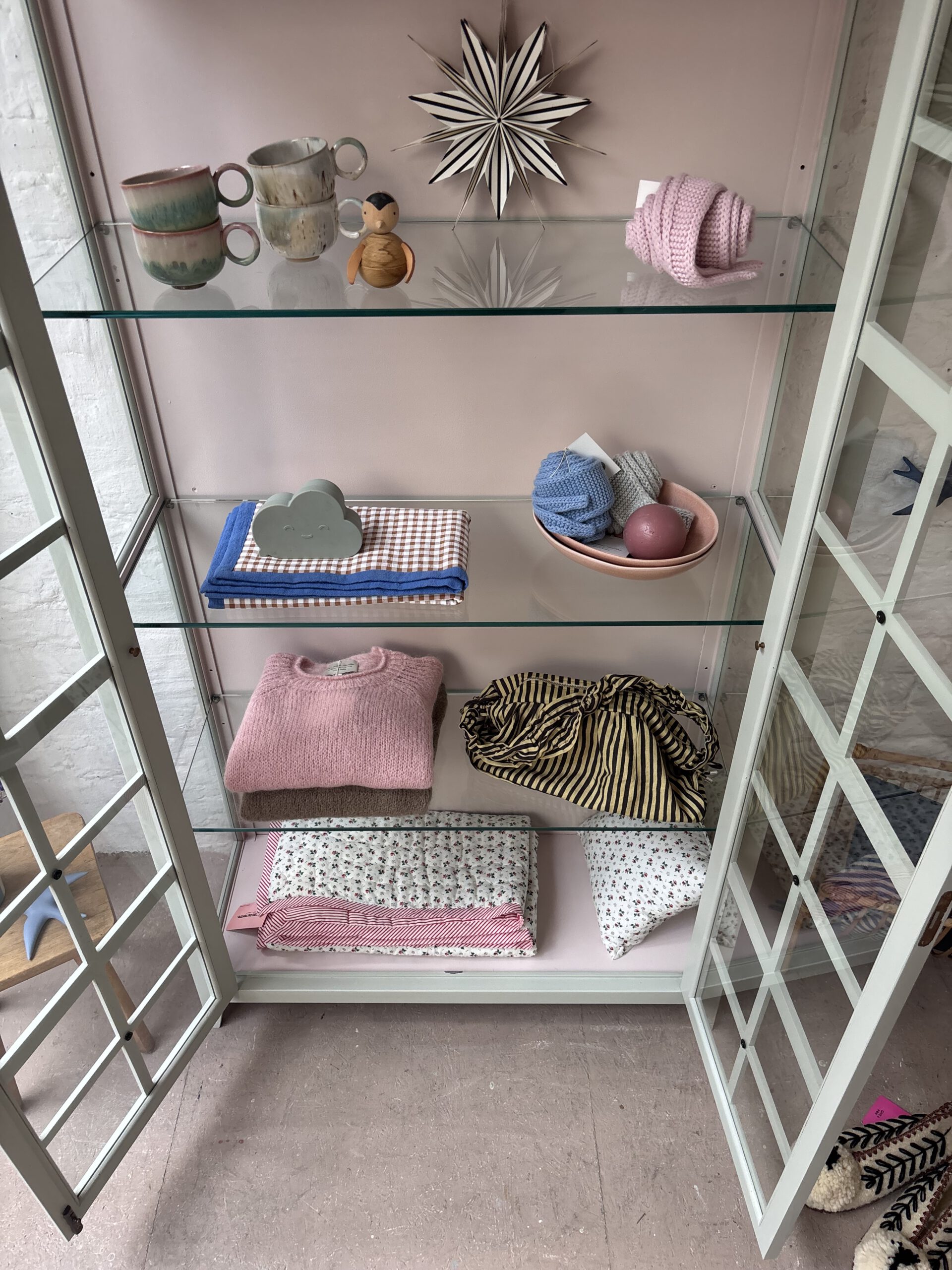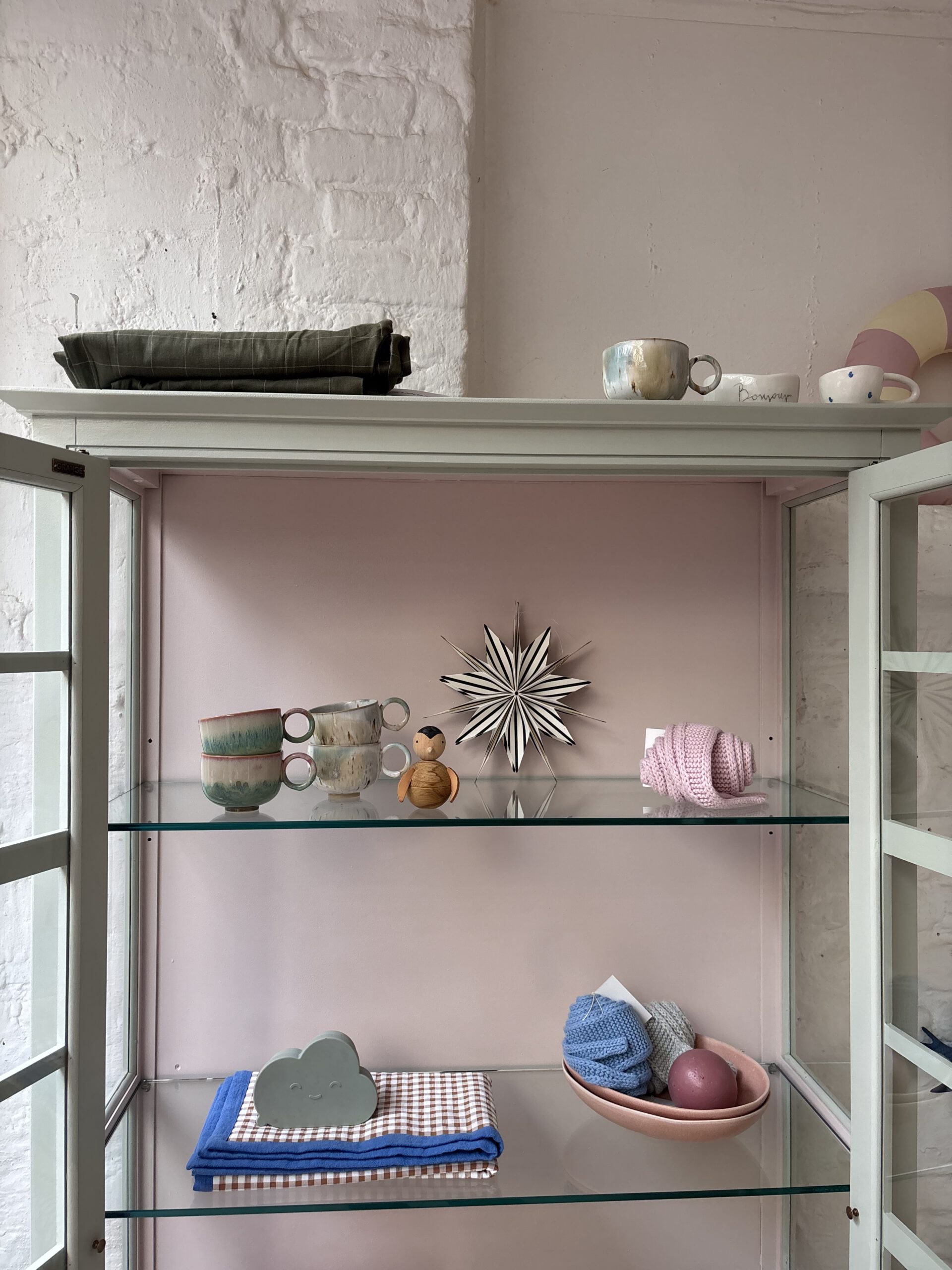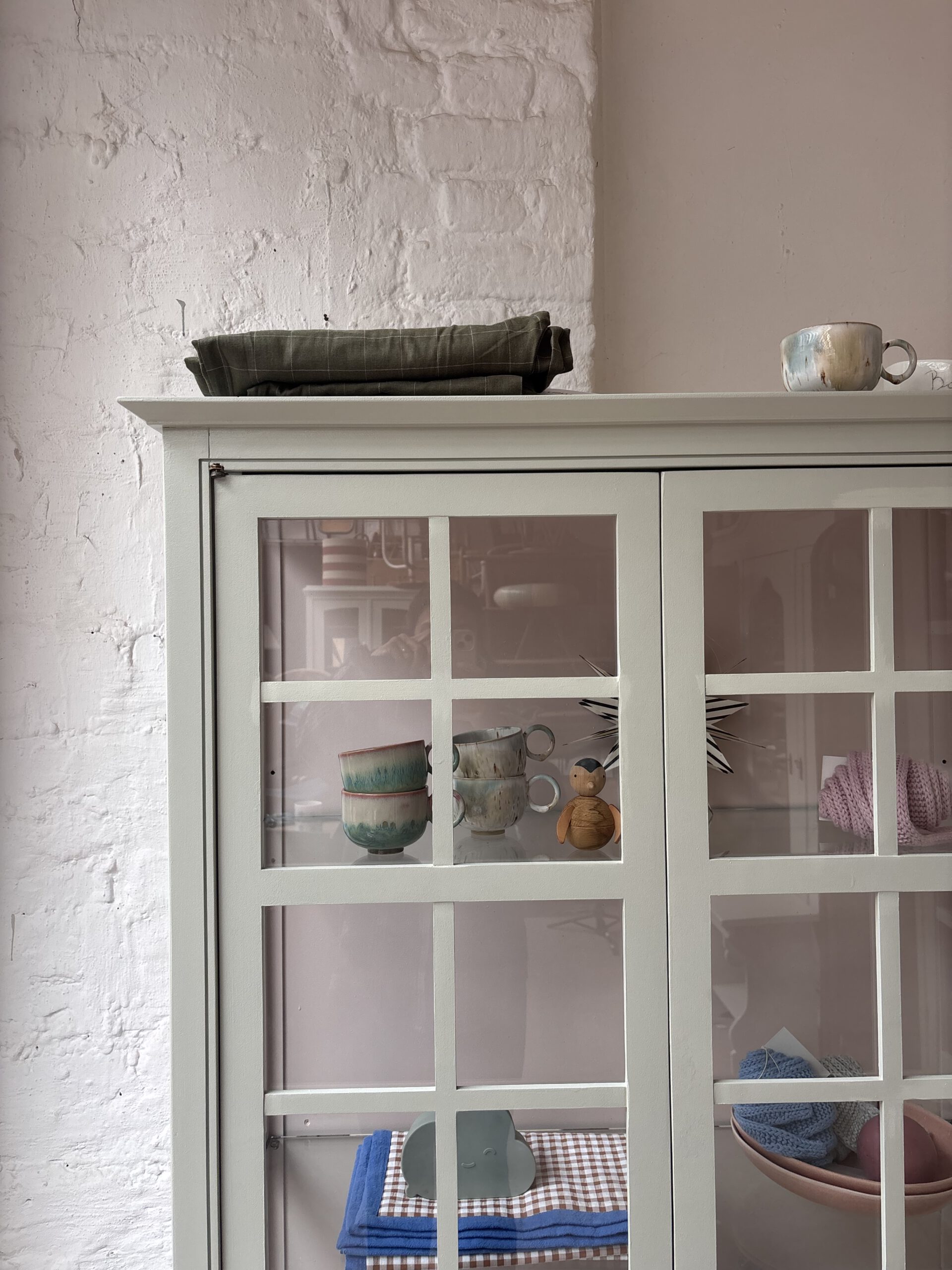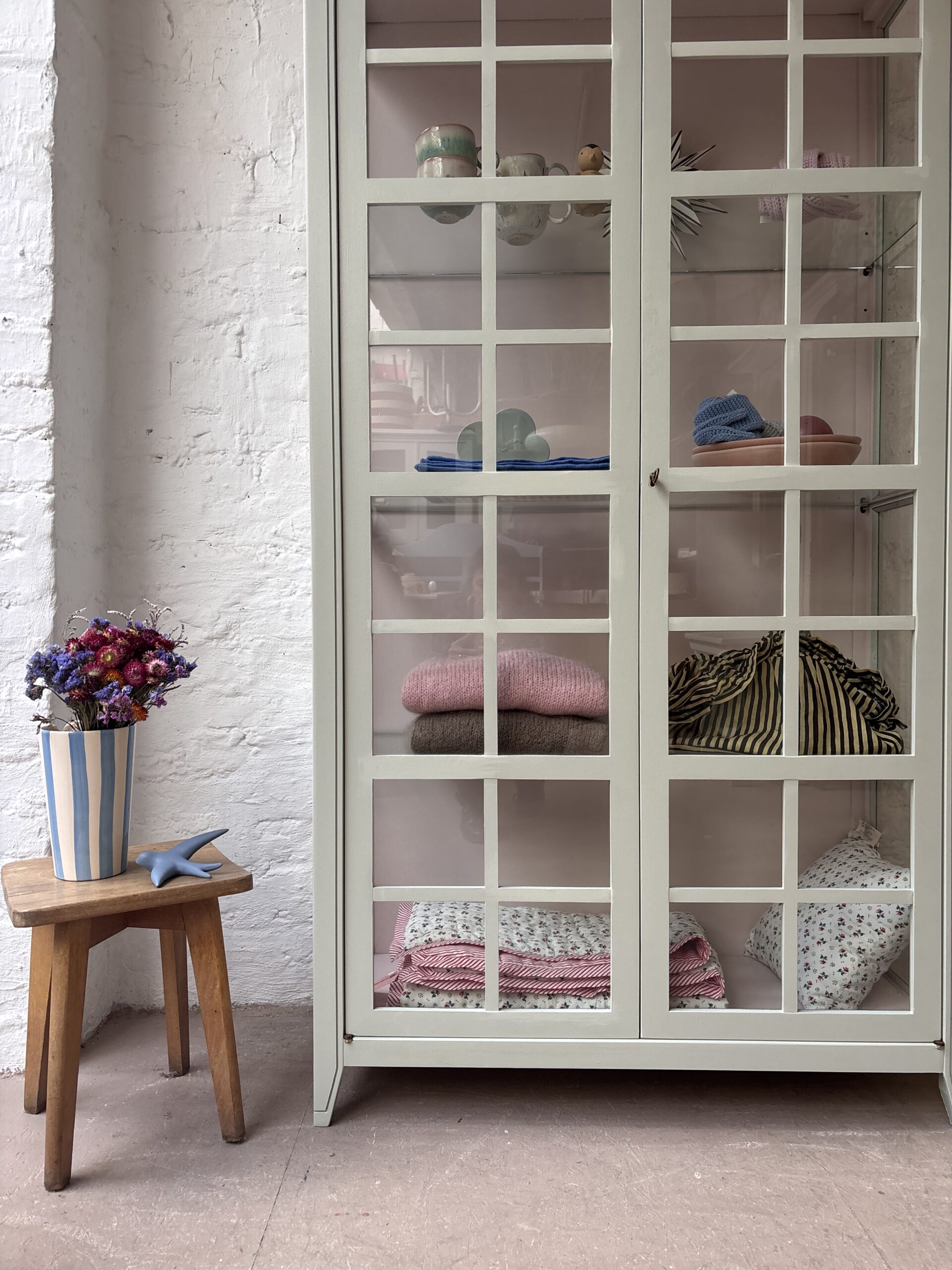 Ciel macht seinem Namen alle Ehre, denn diese so luftige französische wunderschöne Vitrine bringt Leichtigkeit in dein Zuhause. Ciel stammt aus Frankreich von der Traditionsmöbelfirma Grange. Die Firma gibt es seid 1904. Ciel ist allerdings erst 24 Jahre alt (das verrät der Aufkleber hinten an der Rückwand) und ein Vintage Schätzchen vom feinsten. Diese Sprossenfenster-Optik ist einfach zauberhaft, der Rahmen filigran und das ganze Möbel einfach schön. Dadurch das Ciel so luftig wirkt und mit gerade mal einer Tiefe von 38 cm, ist er einfach wunderschön für jeden Raum. Er trägt nicht auf als Möbel und stellt deine Lieblinge elegant aus.