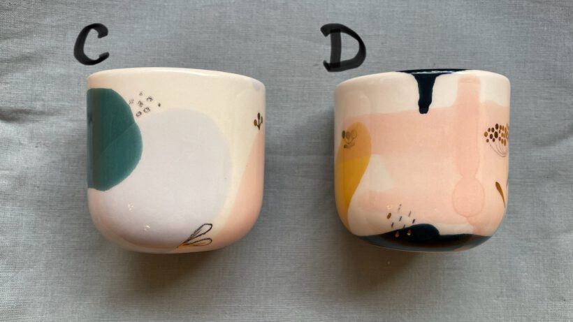 Die verwendeten Glasuren sind alle Bleifrei und Lebensmittelecht. Um die Schönheit der Keramiken zu erhalten empfehlen wir euch sie mit der Hand zu spülen.