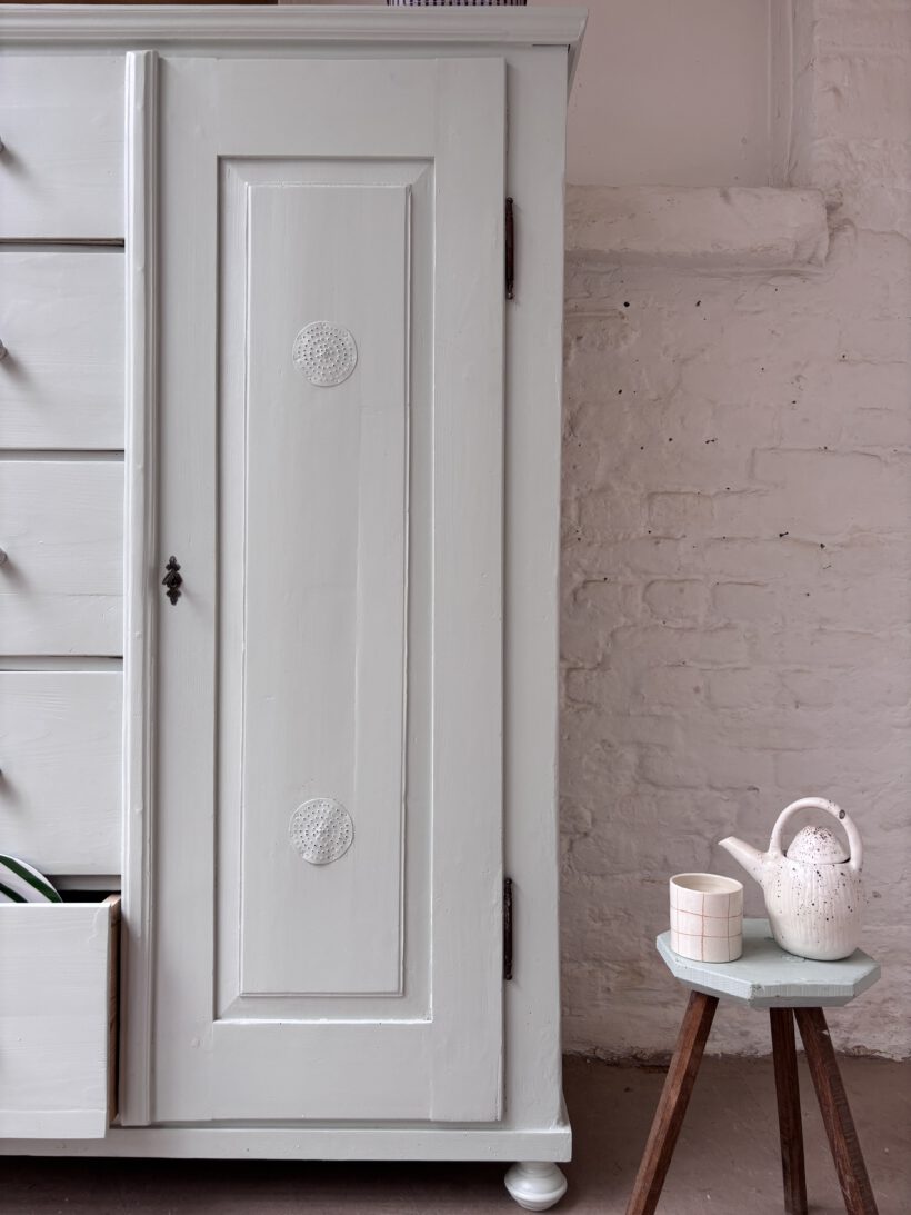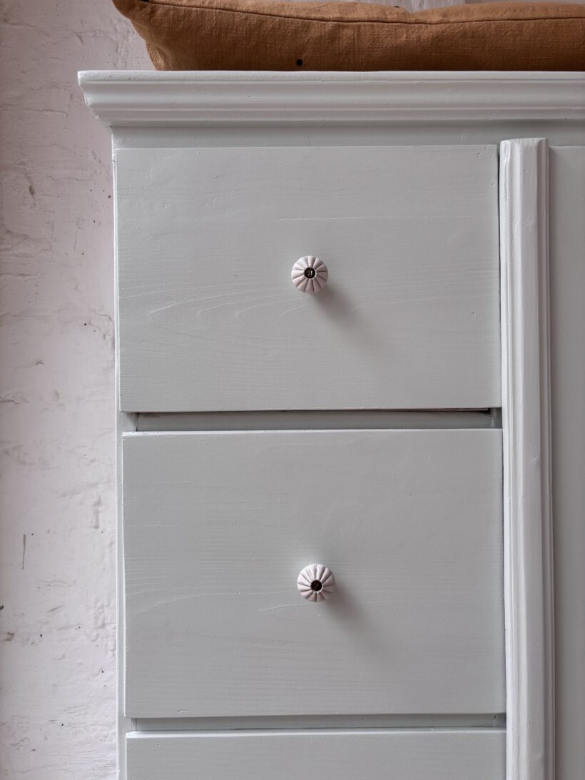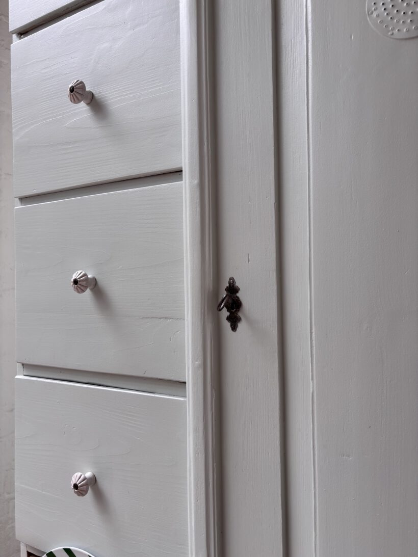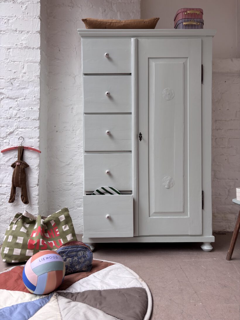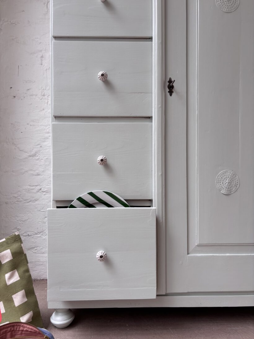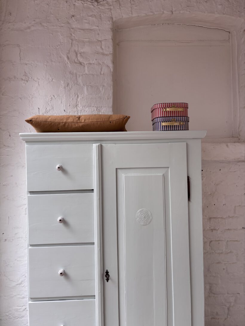 In Egon steckt eine Menge Liebe und Arbeitszeit. Wir haben das Holz viel ausbessern müssen, denn Egon hat mehr als 100 Jahre auf dem Buckel. Er ist genau deshalb ultra charmant und bringt Licht ins Haus. Wir haben ihn innen und außen lackiert. Die Schubladen sind innen naturbelassen.