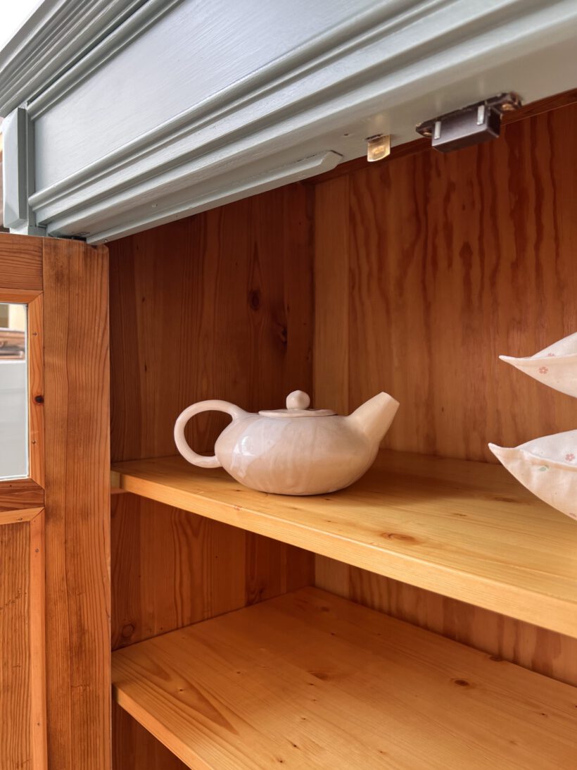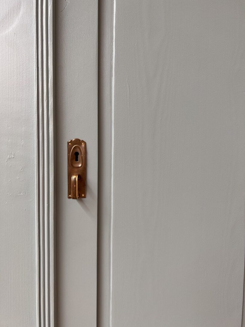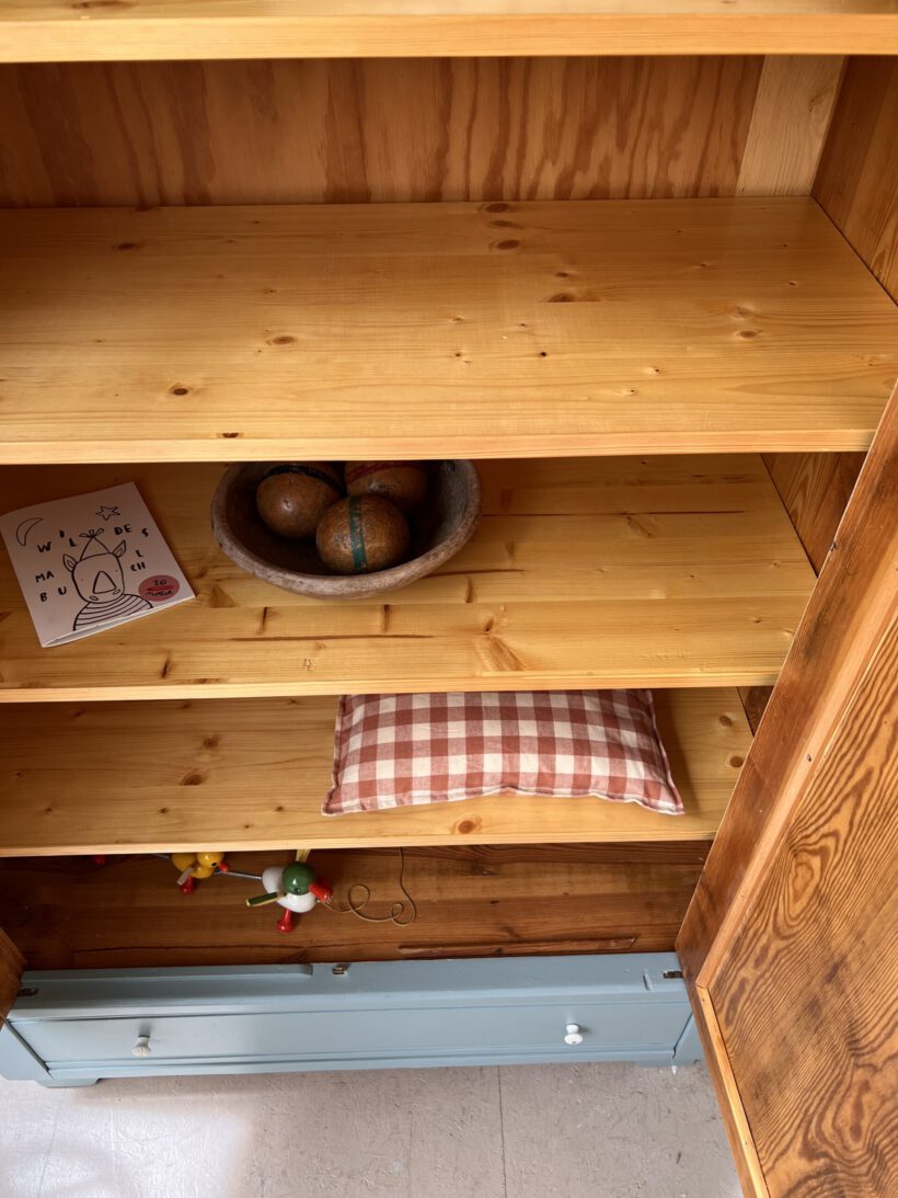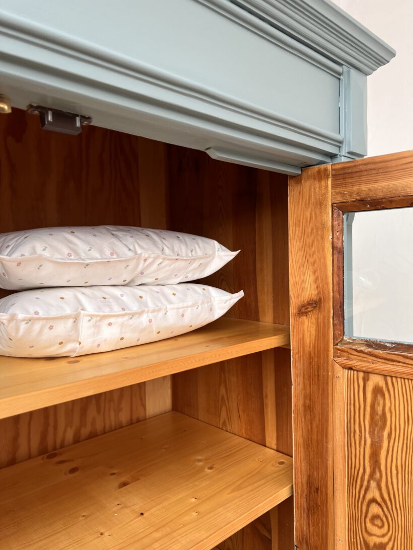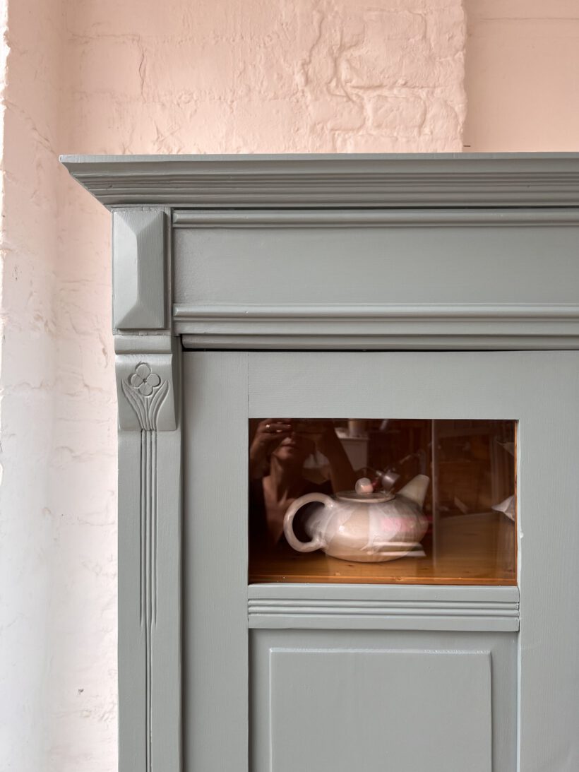 Emil wurde restauriert, geschliffen und grundiert, sowie zwei Mal lackiert in unserem absoluten Lieblingsblaugrau von Farrow and Ball.