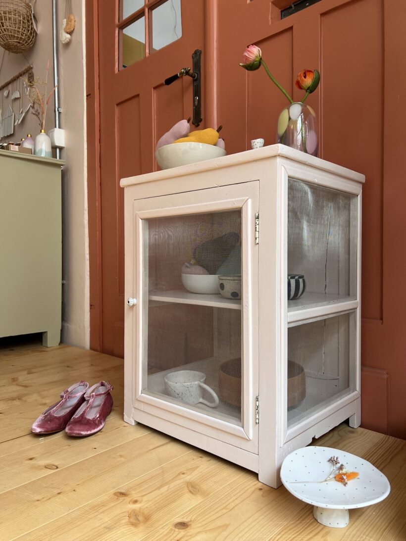 brauchte viel Zeit und Liebe von uns und da steht er nun ganz neu und lebensfroh, bereit für ein neues Zuhause. Etienne ist ein hübscher kleiner Fliegenschrank aus Frankreich. In seiner Ursprungsfunktion zur Aufbewahrung für Vorräte, kann er das und vieles mehr sein. Er würde sich sicher auch gut als kleines Nachtschränkchen, Vitrine für Keramiken etc. machen. Ein Hingucker…überall;-)