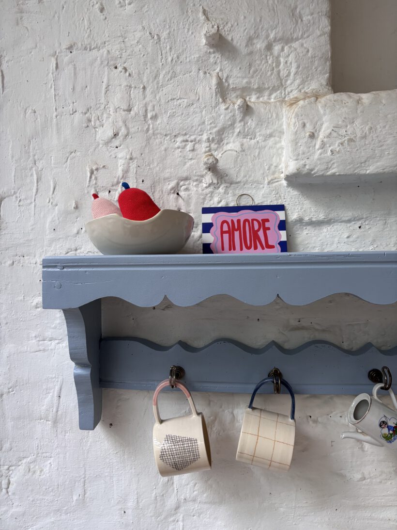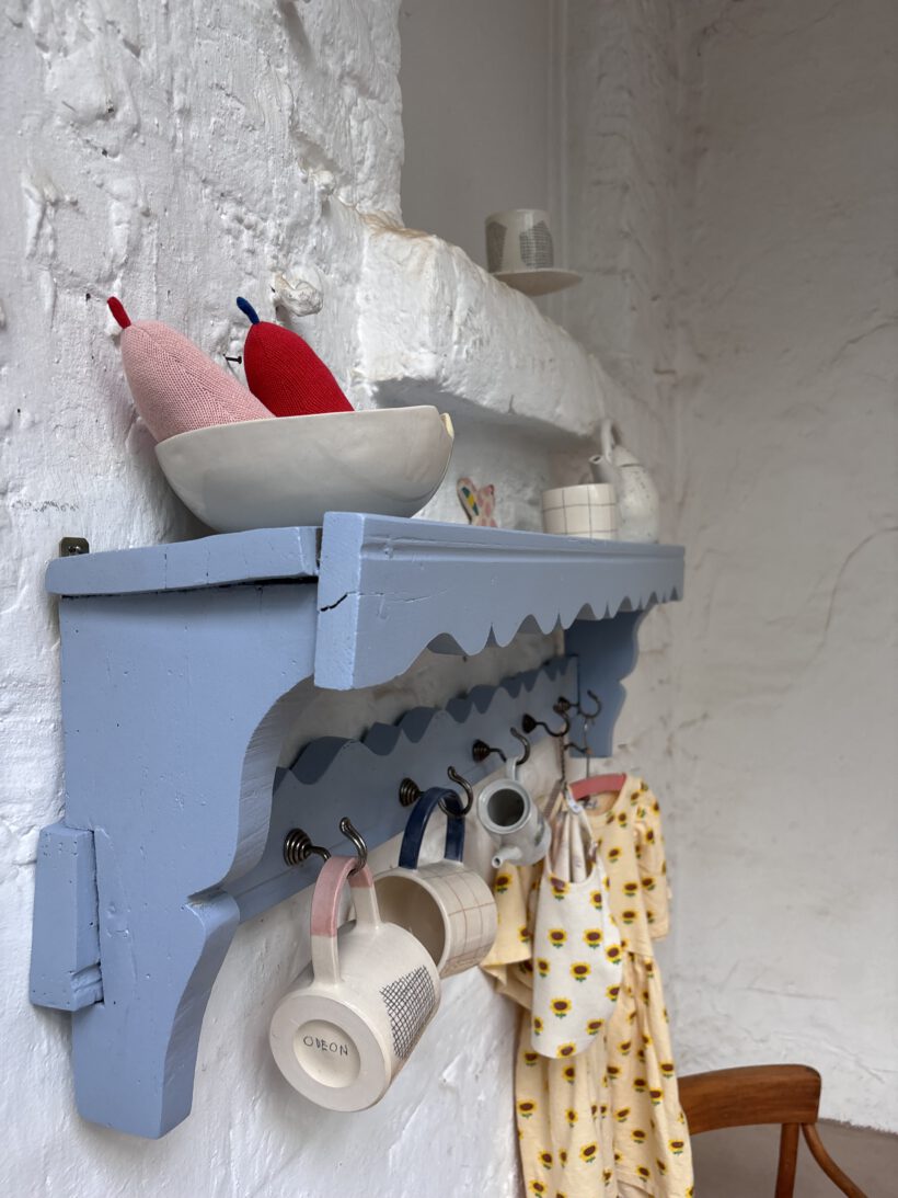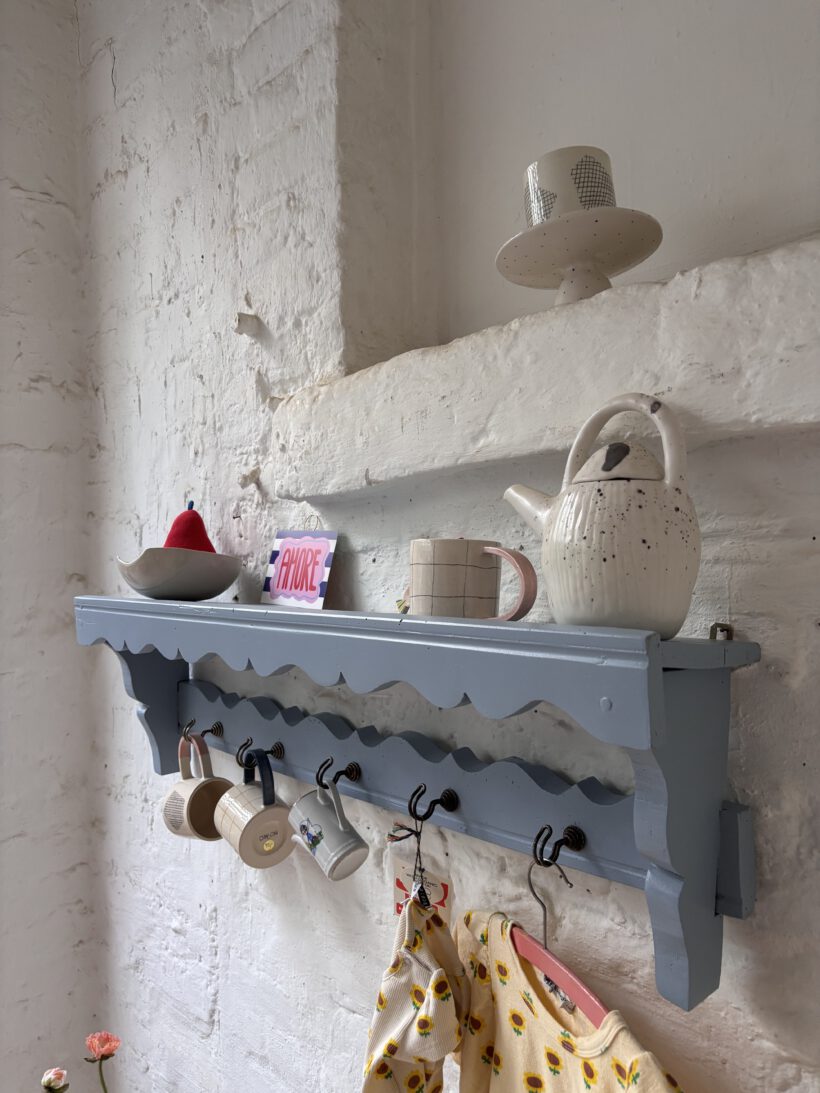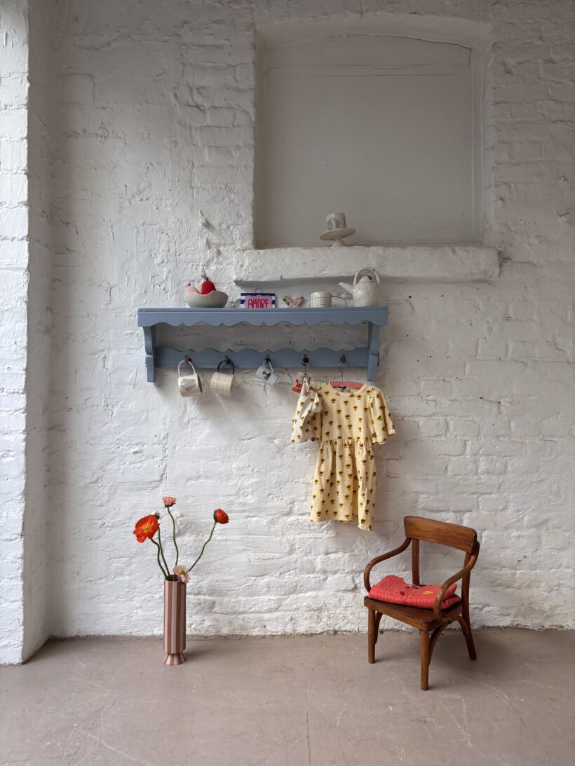 Ferdinand wird über zwei Hacken, von hinten an die Wand befestigt. Er ist sowohl ein Tegal zum abstellen von schönen Dingen, als auch zum hängen. Seien es Basen Geschirr und Co, oder die Kinderbücher oder Kleidung. Alles geht. Überall ist er schön und praktisch.