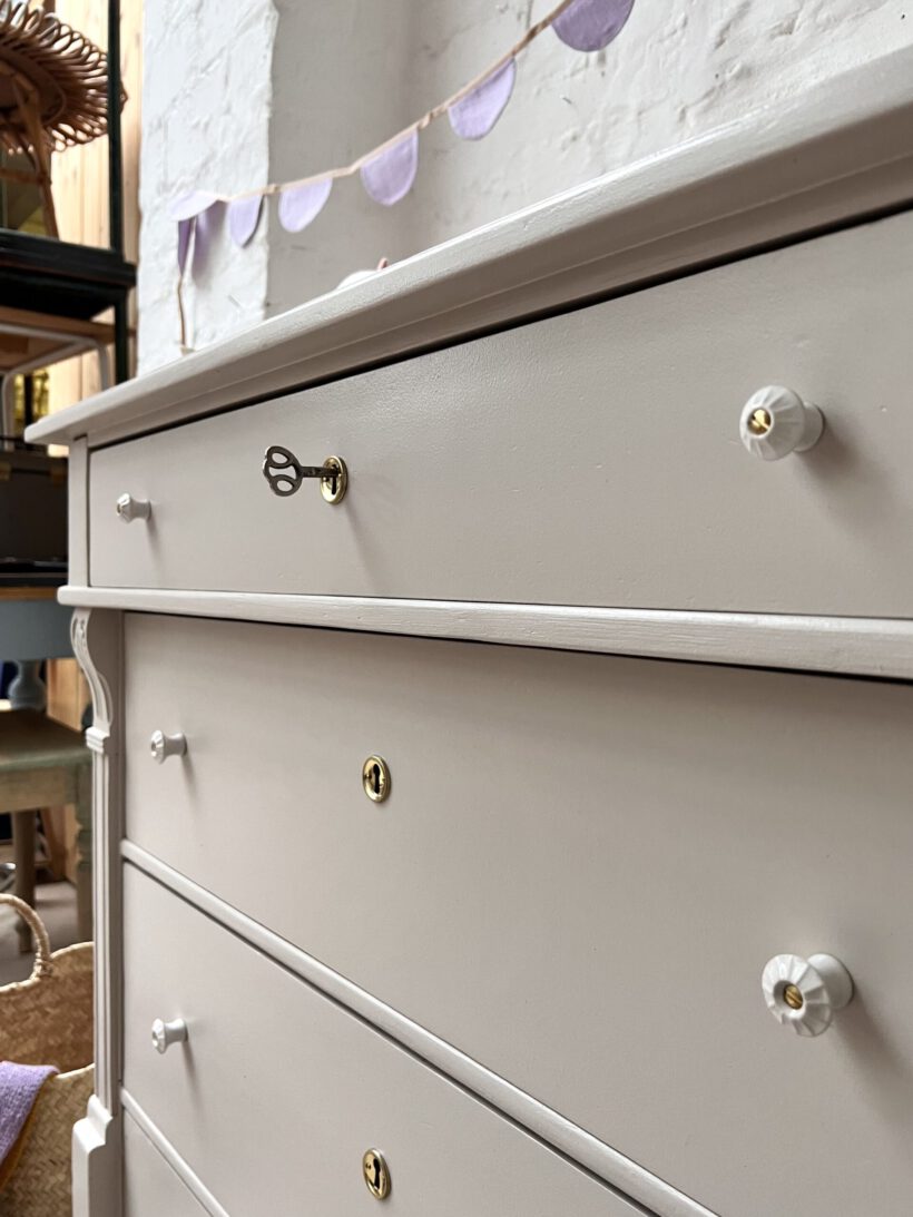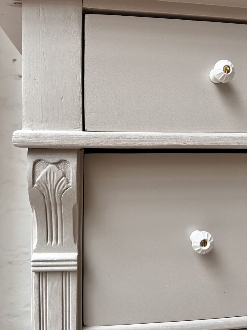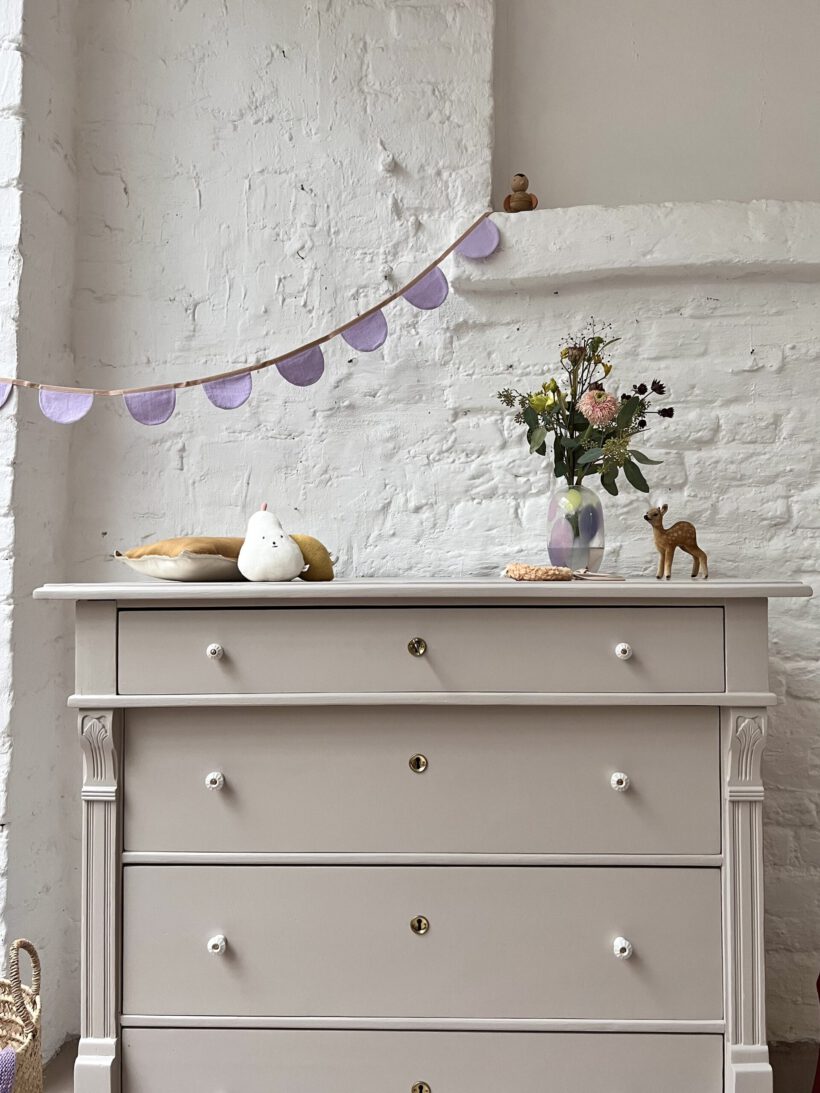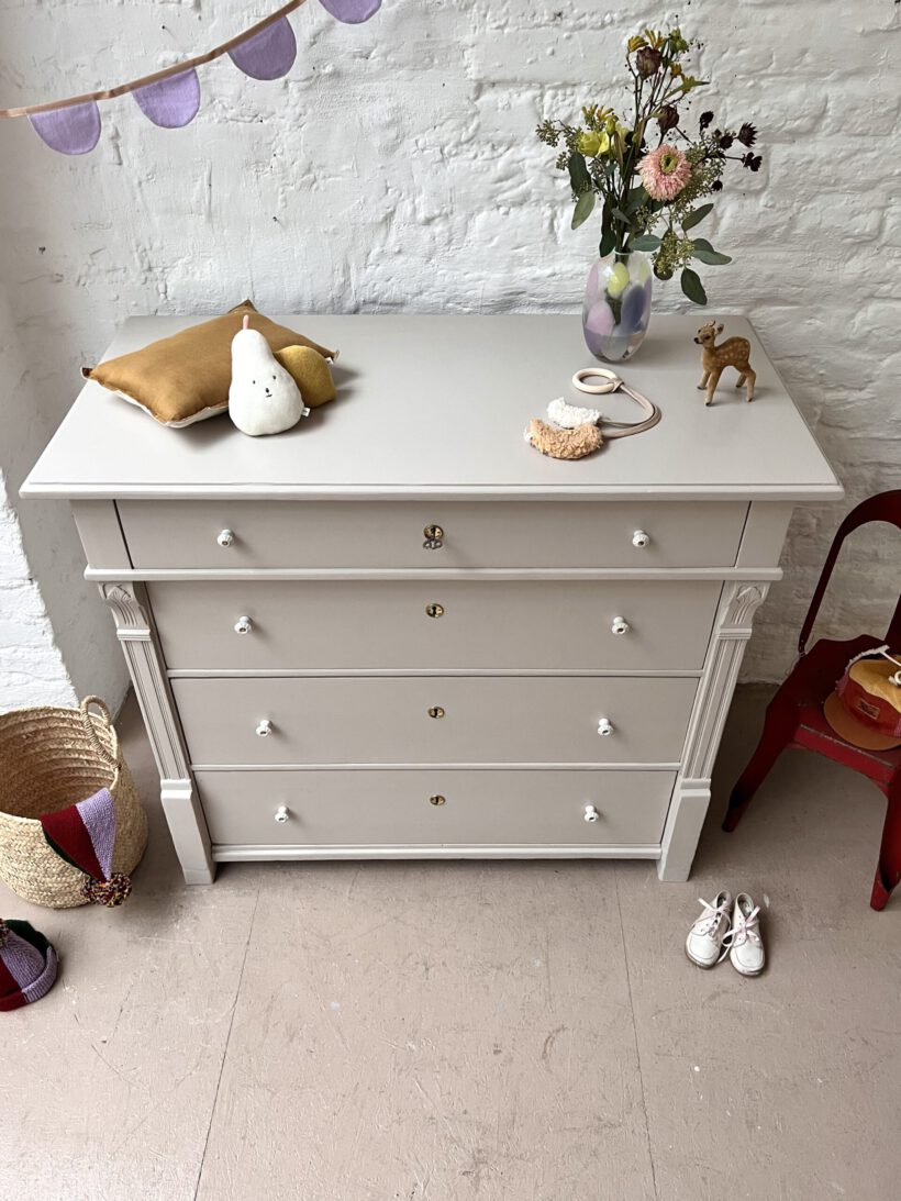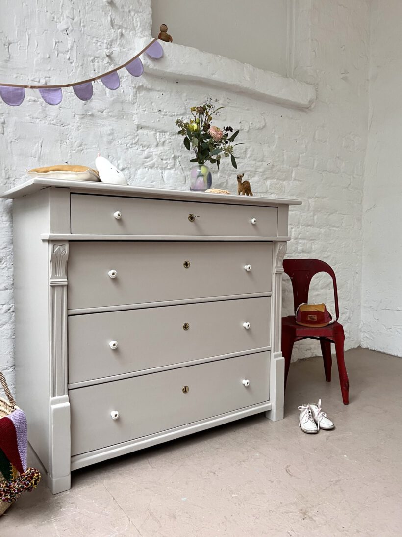 ist eine wunderschöne klassische Kommode mit vier Schubladen, die in jedem Raum alle Aufmerksamkeit auf sich zieht. Besonders sind die dezenten Jugendstil Verzierungen an den Seiten, sowie ihre zugleich schlichte Form. Finke hat zudem die perfekten Maße für eine Erweiterung als Wickelkommode. Die Höhe von 92 cm bietet sich perfekt dafür an und kann durch einen Wickelaufsatz ergänzt werden.