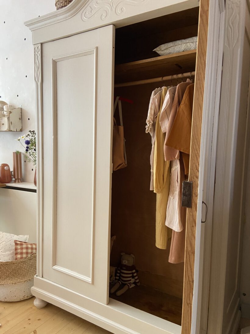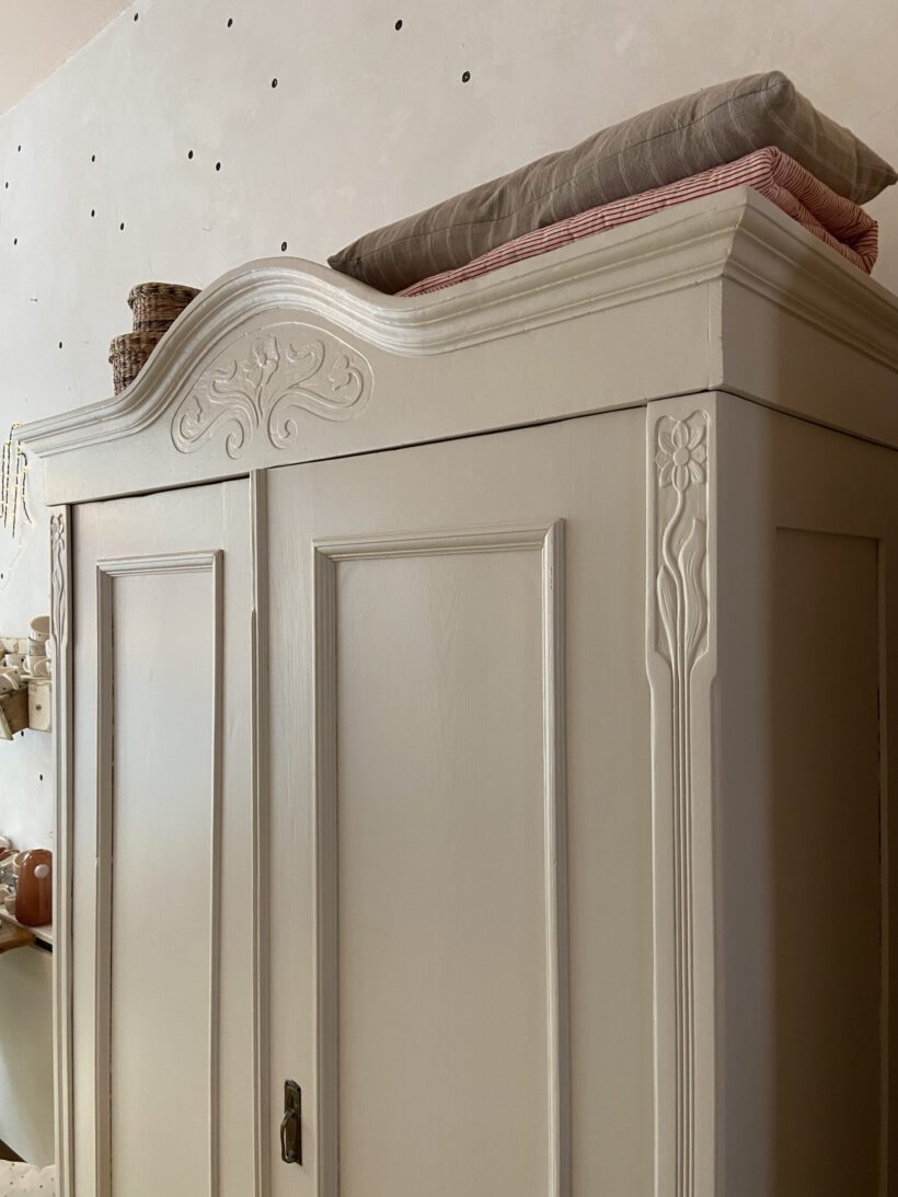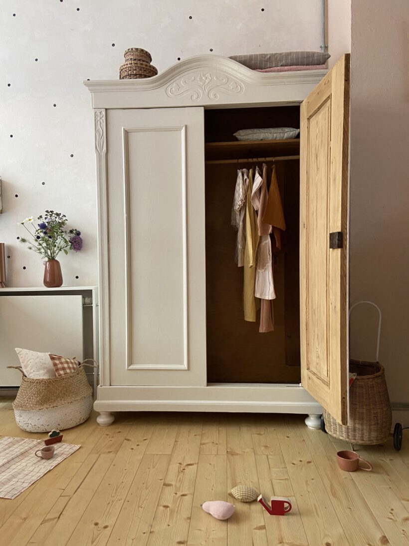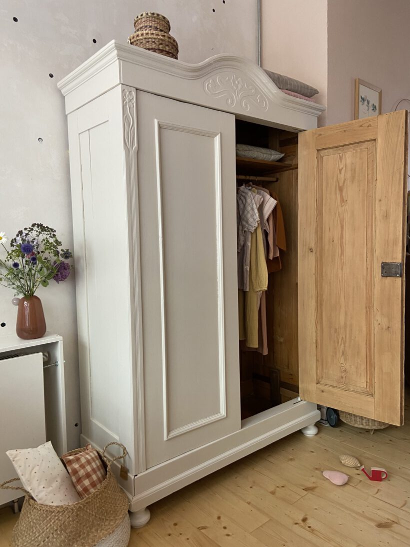 So eine wie Flora hatten wir noch nie; Die filligranen floralen Schnitzereien machen sie zu einem ganz besonderem Exemplar. Sie ist ein großer Schrank, bietet sehr viel Stauraum und eignet sich sowohl als Kinderkleiderschrank, als auch für Erwachsene im Schlafzimmer. Als Steckschrank ist Flora sehr praktisch und somit für jedes noch so schwierige Stockwerk oder Dachboden Eck nutzbar, den sie lässt sich überall hin transportieren.