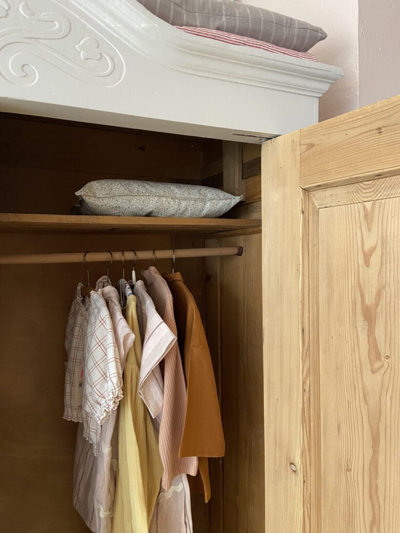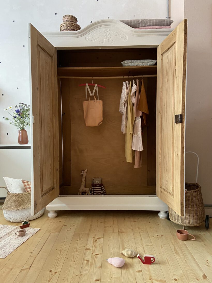 Als Steckschrank lässt sich Flora einfach in 9 Teilen auf- und abbauen. Gerne geben wir eine Anleitung dazu mit, falls diese Art von Schrankaufbau euch noch unbekannt ist. Kleine Info vorab: Steckschränke sollten immer auf geradem Boden stehen, damit die Türen gut schließen und öffnen. Gegebenenfalls kann man einen ungeradem Boden unterlegen.