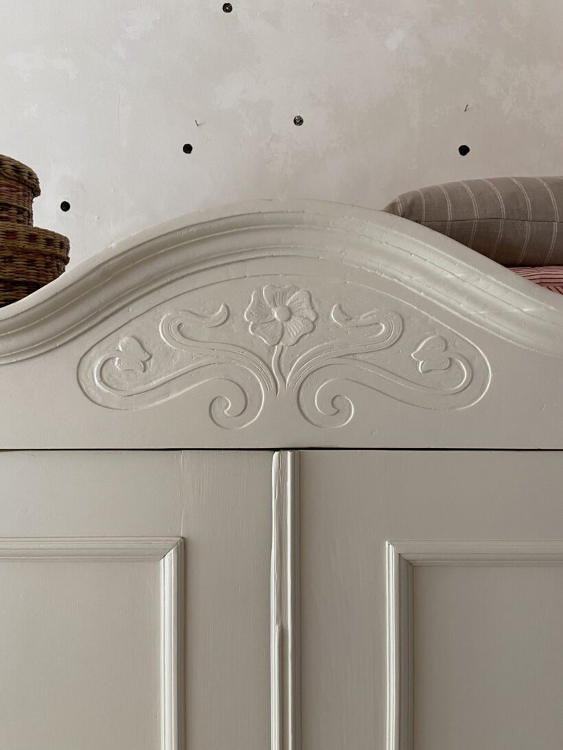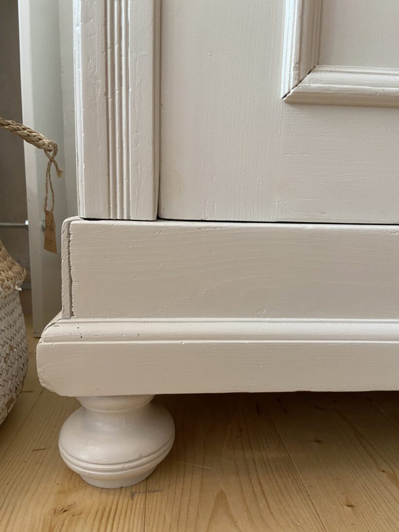 Wir haben Flora restauriert, geschliffen und grundiert, sowie zwei Mal lackiert und sie in ein warmes weiß von Farrow and Ball getaucht.
