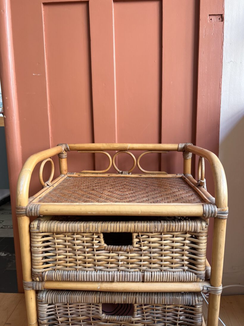 ein wunderhübsches vintage Rattan-Kommödchen aus Frankreich. Absoluter Klassiker mit viel Charme und selten noch in „vintage“ zu finden