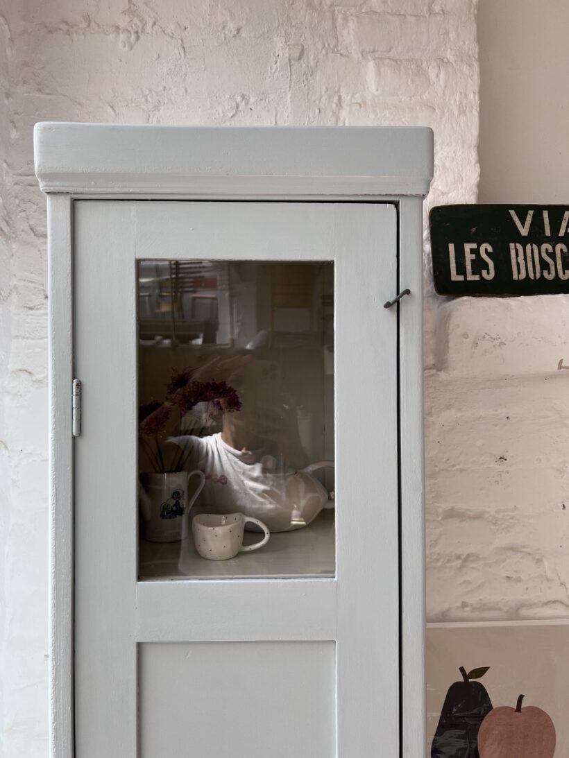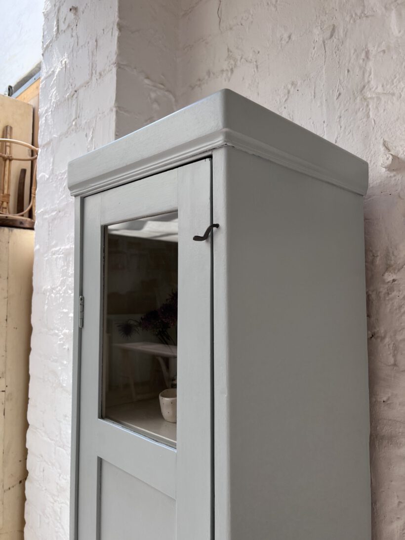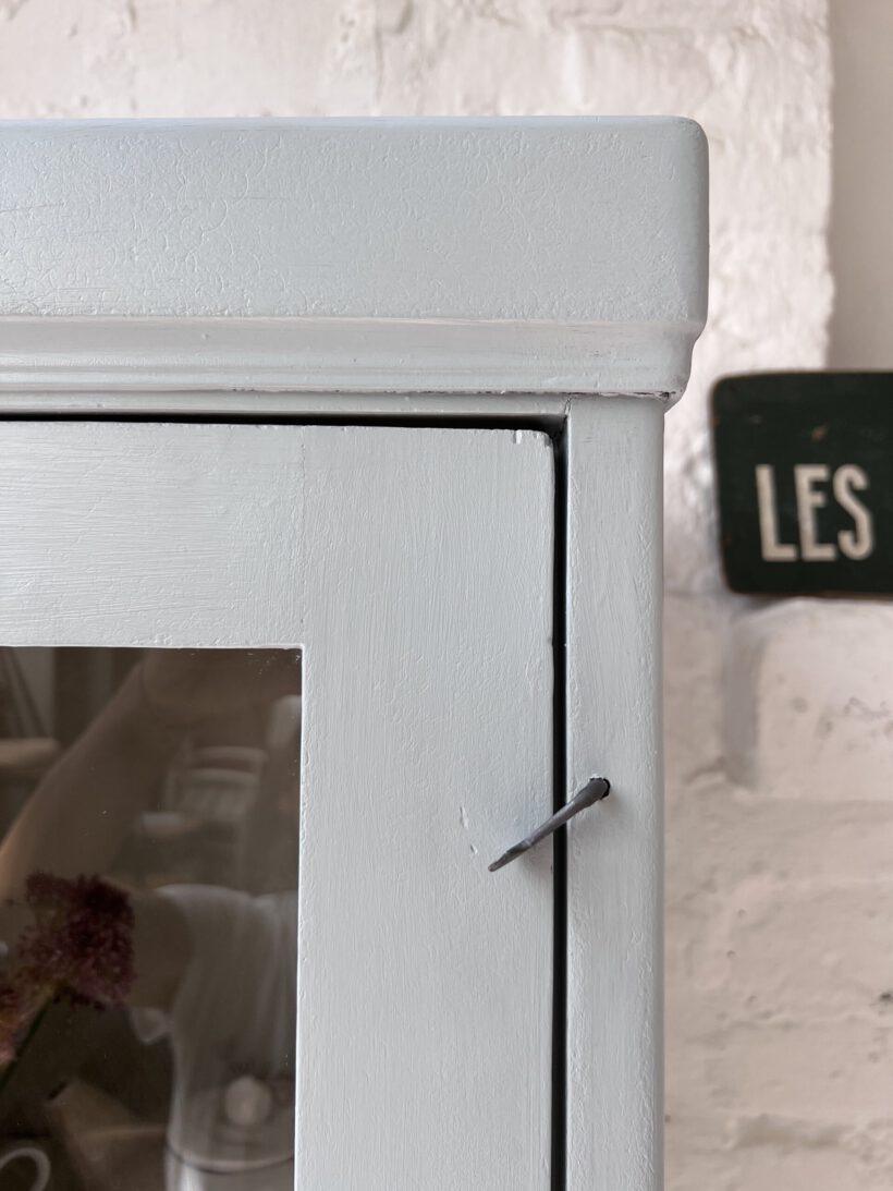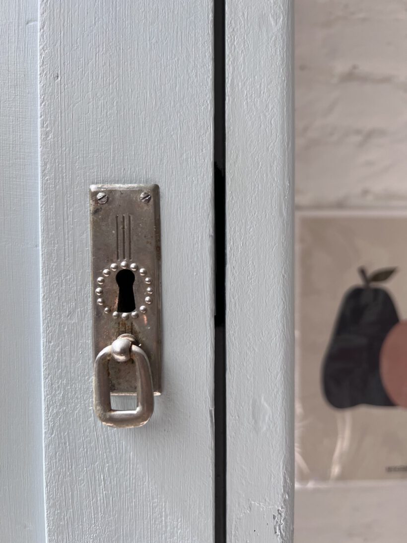 das sind zwei schlichte wunderschöne alte Hochschränke in einem zarten hellblaugrau. Die beiden sind Zwillinge. Franjko öffnet nach links und „Brudi“ nach rechts;-)