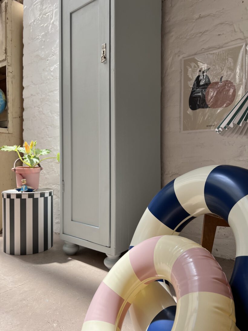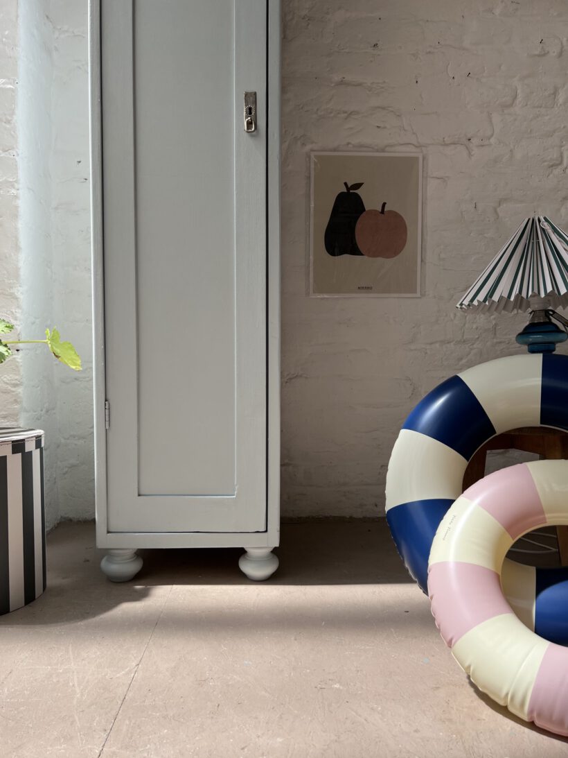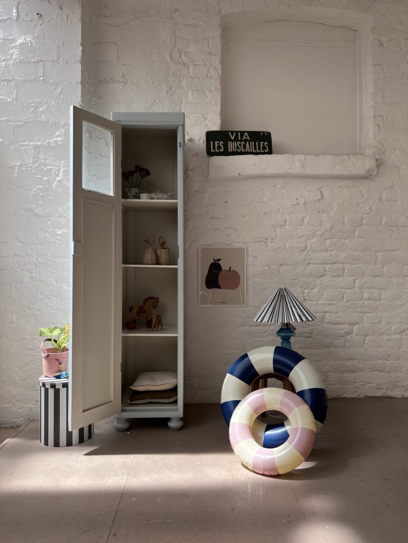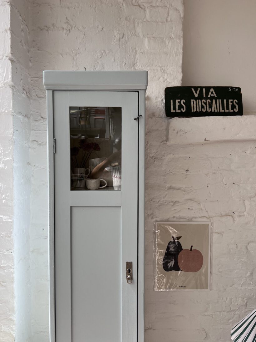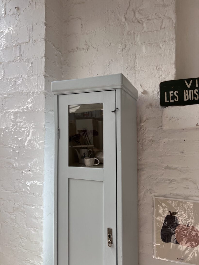das sind zwei schlichte wunderschöne alte Hochschränke in einem zarten hellblaugrau. Die beiden sind Zwillinge. Franjko öffnet nach links und „Brudi“ nach rechts;-)