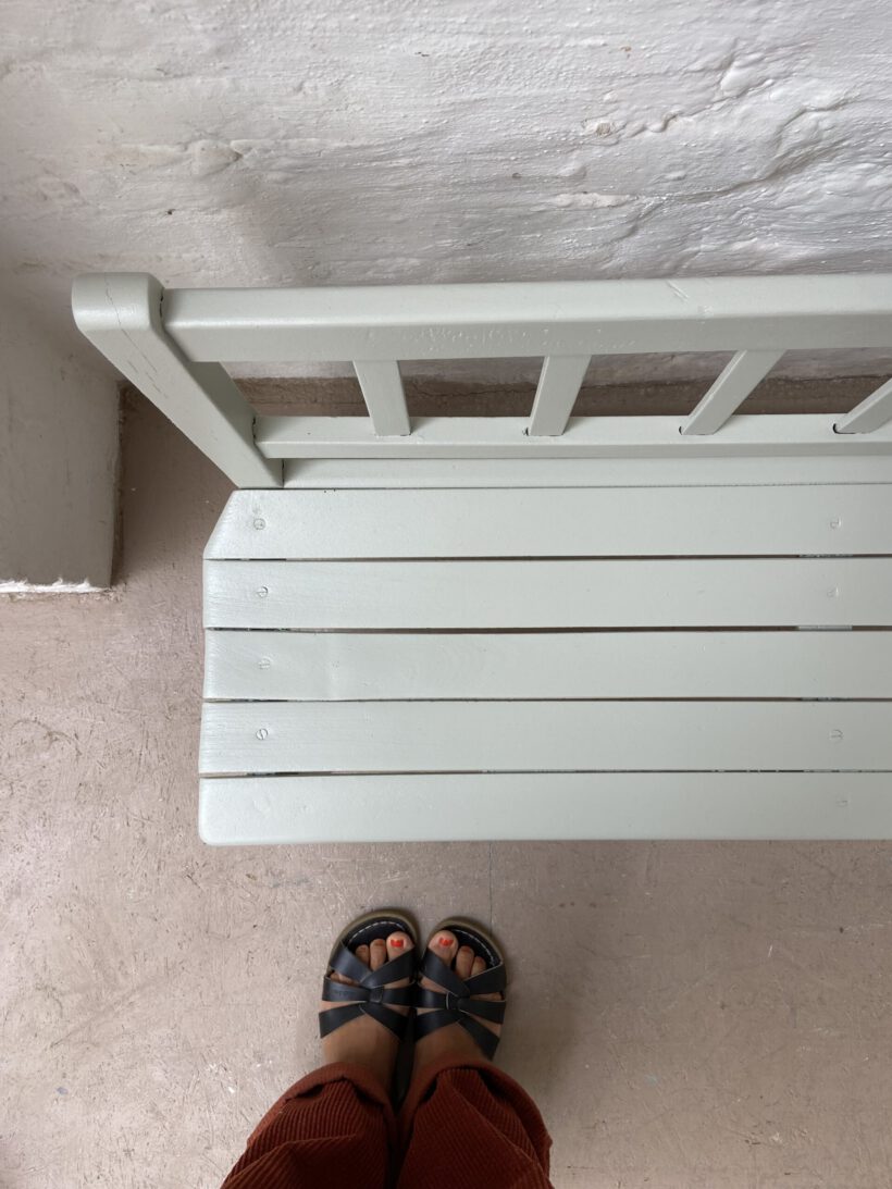 Franz`s Holz hat Patina und hat sich über die Jahre hier und da ganz leicht verzogen, dies stört die Funktion als Bank null und sieht einfach nur charmant aus. Ich bin verliebt! Und ihr?