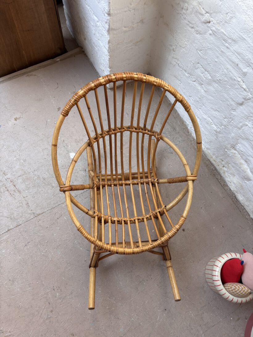 was für ein wunderschöner seltener und urgemütlicher Rattanschaukelstuhl für Kinder. Frederic ist ein Designklassiker, den man heutzutage nur noch selten findet. Er ist aus den 60er Jahren stammt aus Frankreich und ist sehr gut erhalten.