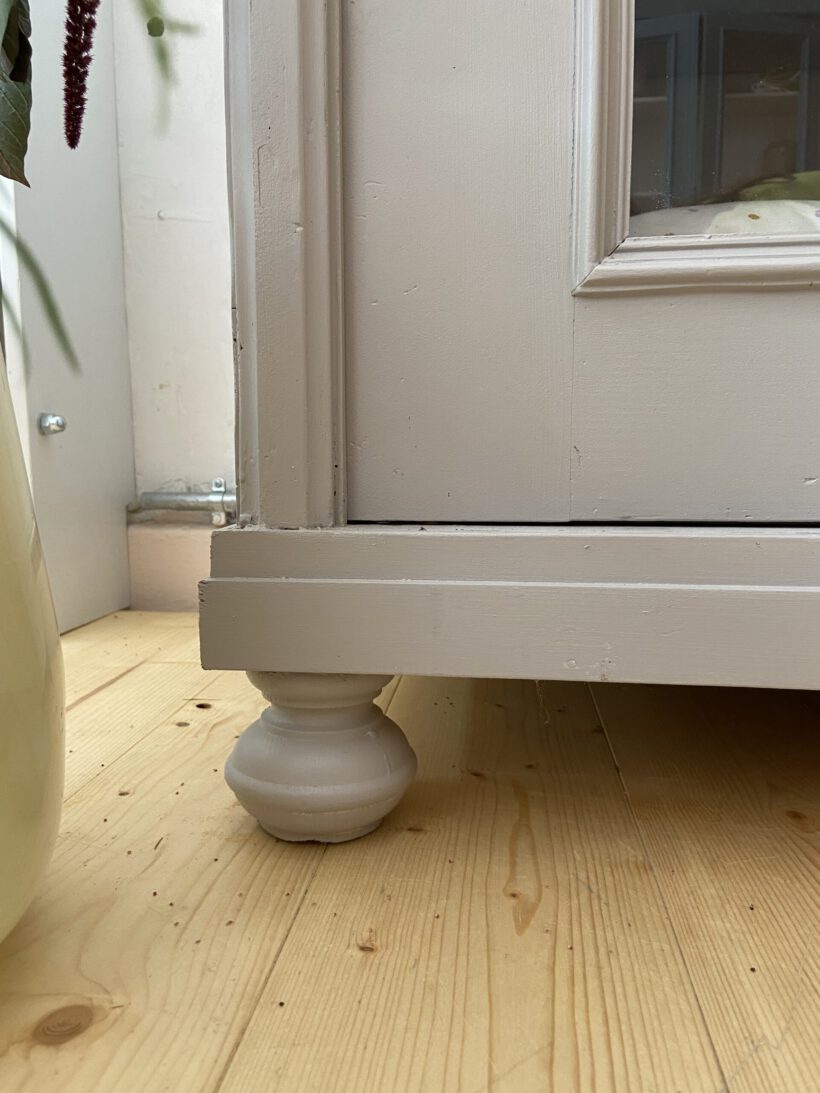 Frida wurde restauriert, geschliffen und grundiert, sowie zwei Mal lackiert. Sie hat von uns einen Ton in Ton Look in zwei verschiedene Farbnuancen bekommen: Innen ein helles Grau-Flieder und außen ein dunkleres warmes Grau. Beide Farben sind von Farrow and Ball. Wir liebes es.