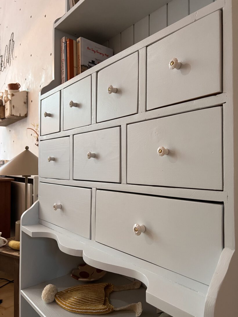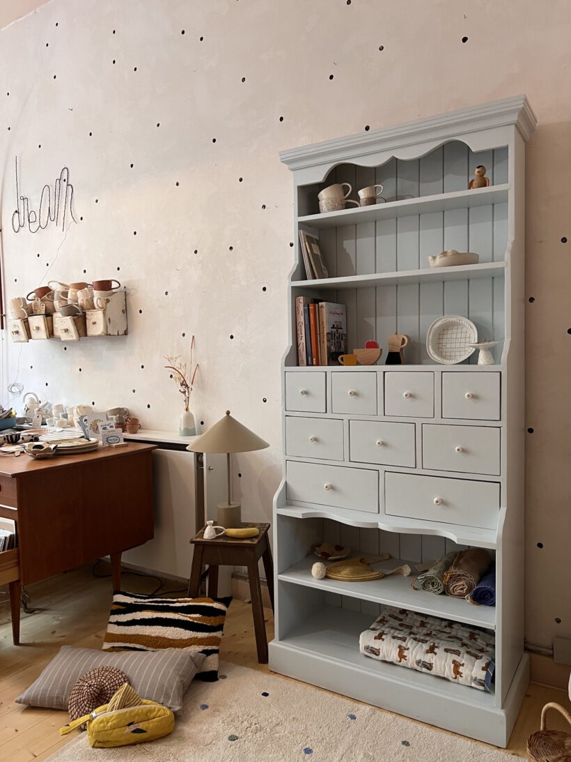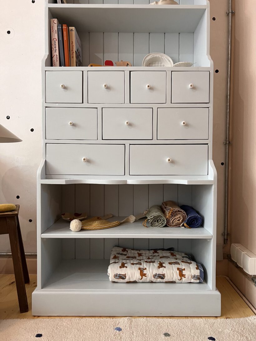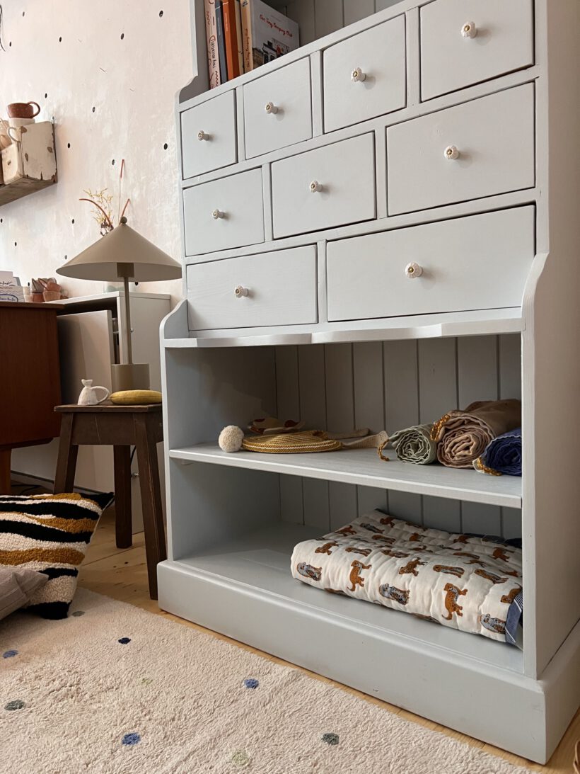 Sie ist ein ganz besonderes Möbel, selten zu finden in dieser Art und ein handgemachtes Schreinerunikat aus uralten Zeiten. Halb als Buffet, halb als Apotheker kommt Friedel daher und hat ganz besonders schmale und praktische Maße – wodurch Friedel gut in kleine Räume passt. Sie bietet unglaublich viel Stauraum, macht sich großartig als Bücher- oder Küchenschrank und einfach ganz bezaubernd als Kinderzimmerschrank. Ich sehe es förmlich schon vor meinem Auge, wie Friedel mit lauter kleinen hübschen Spielsachen, Büchern, Malutensilien und co., das Kinderzimmer zu einem absolut warmen und besonderen Ort macht.