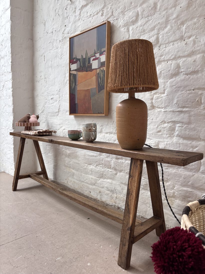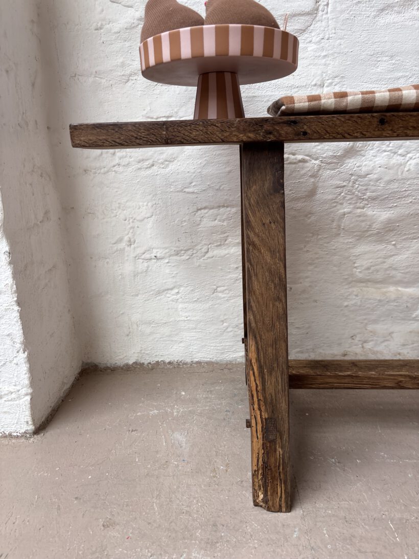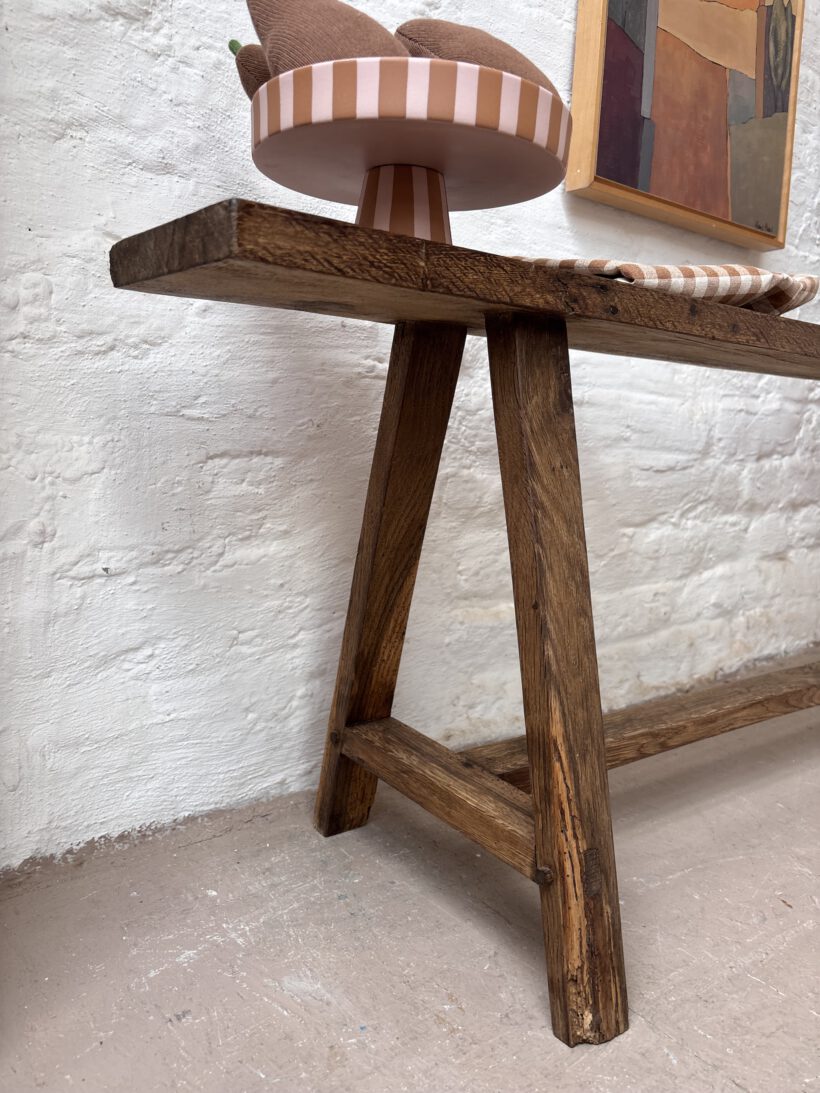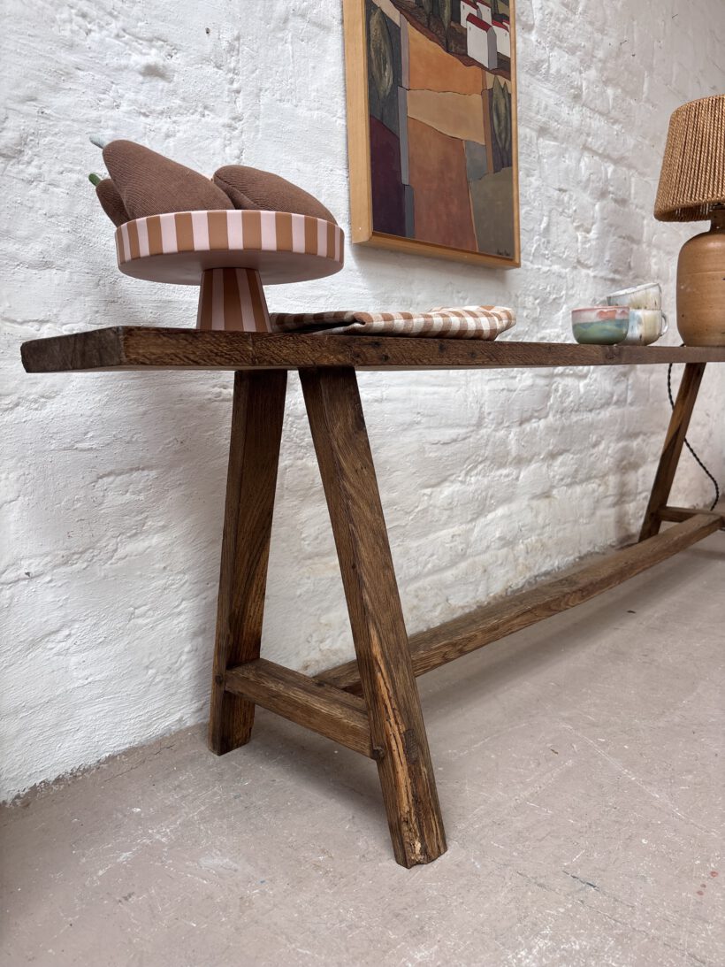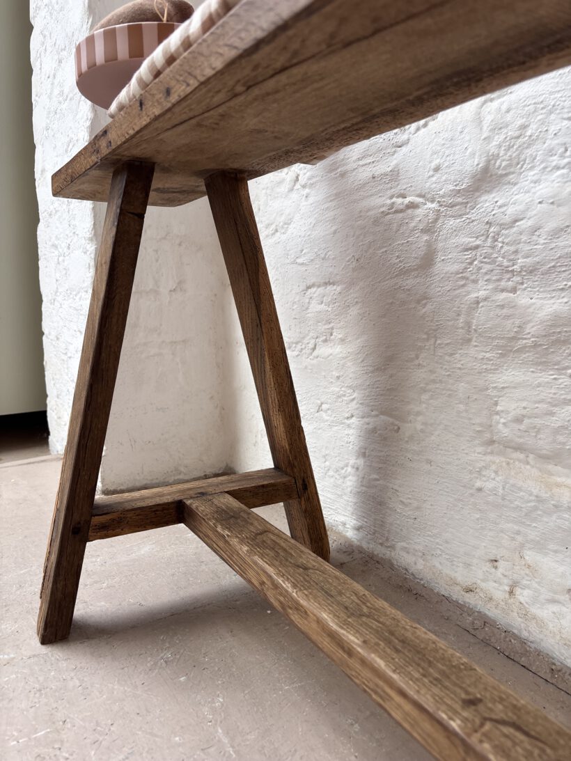 zwei wunderschöne antike Eichenbänke aus einem französischen Kloster. Sie sind mega robust, haben eine bezaubernde Patina und eine sehe schöne Form. Sie sehen auch als kleines niedriges Sideboard mega aus und machen siech ebenso gut als Sitzbank an Esstischen oder in Fluren. Ursprünglich sind sie gemeinsam mit dem Esstisch Gaston zu uns gekommen. Sie passen exakt an seine Seiten;-)