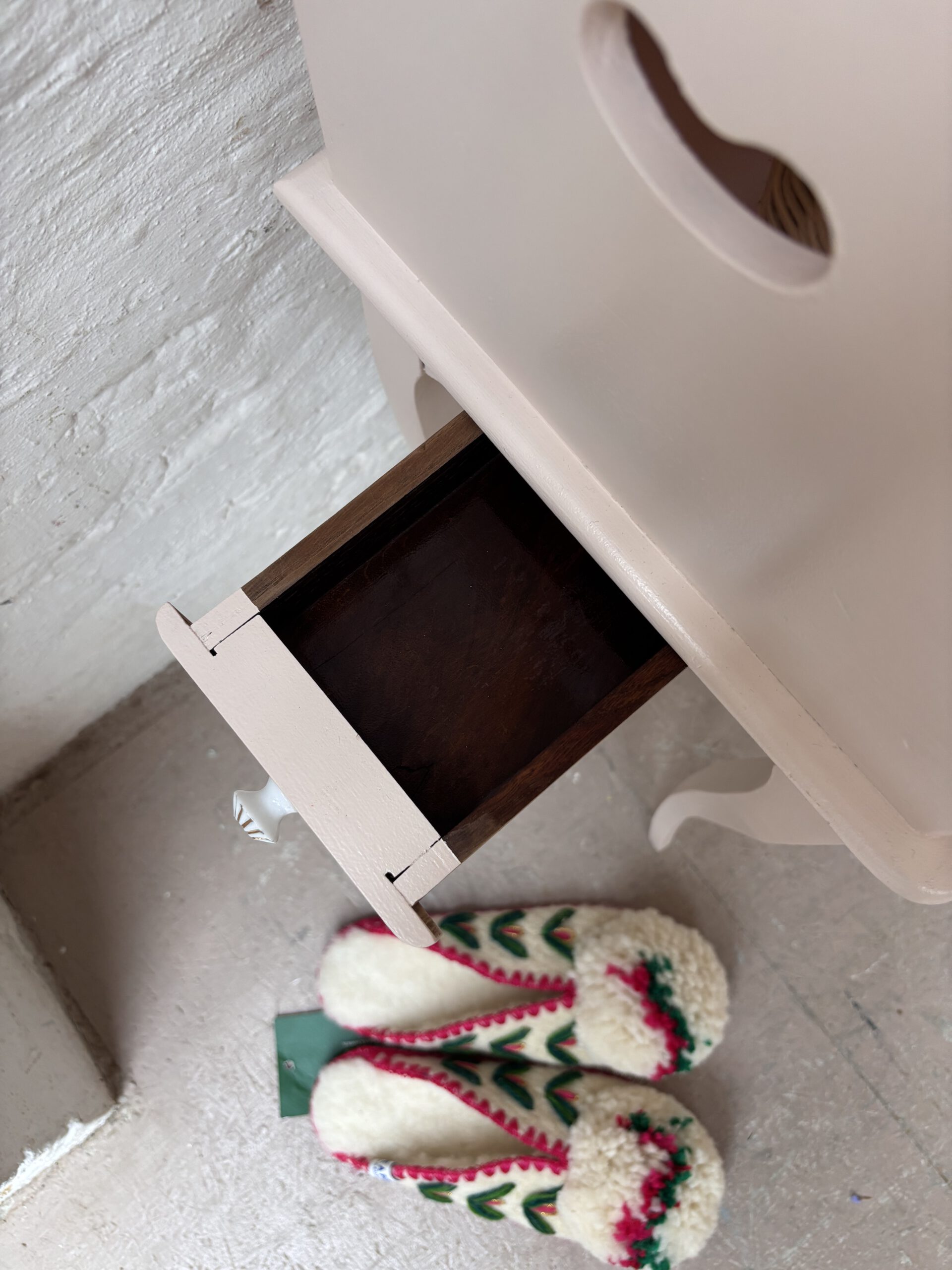 Geneviève wurde von uns aufbereitet. Sie wurde geschliffen, grundiert und zwei Mal lackiert in einem schönen rosa von Farrow and Ball.