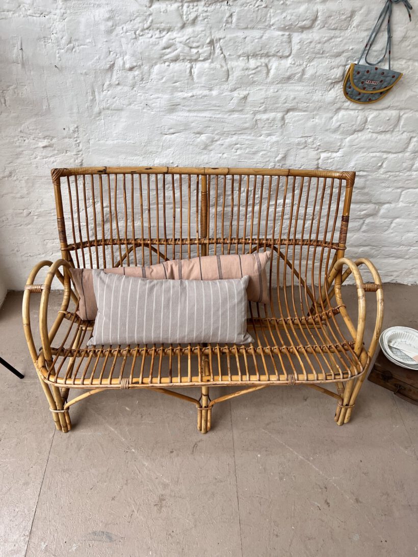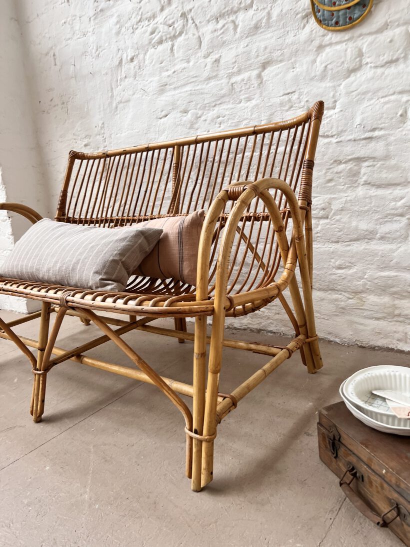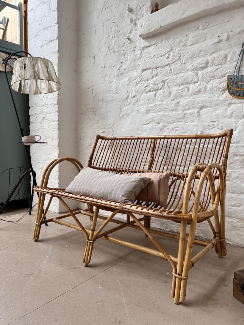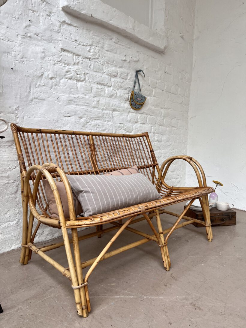 eine wunderschöne alte Vintage Rattan Bank aus Frankreich. Das Rattan ist sehr gut erhalten. Einfach ein schönes warmes Möbel, dass mit einem Lammfell oder einer schönen Decke darauf sehr viel Gemütlichkeit ins Haus bringt;-)