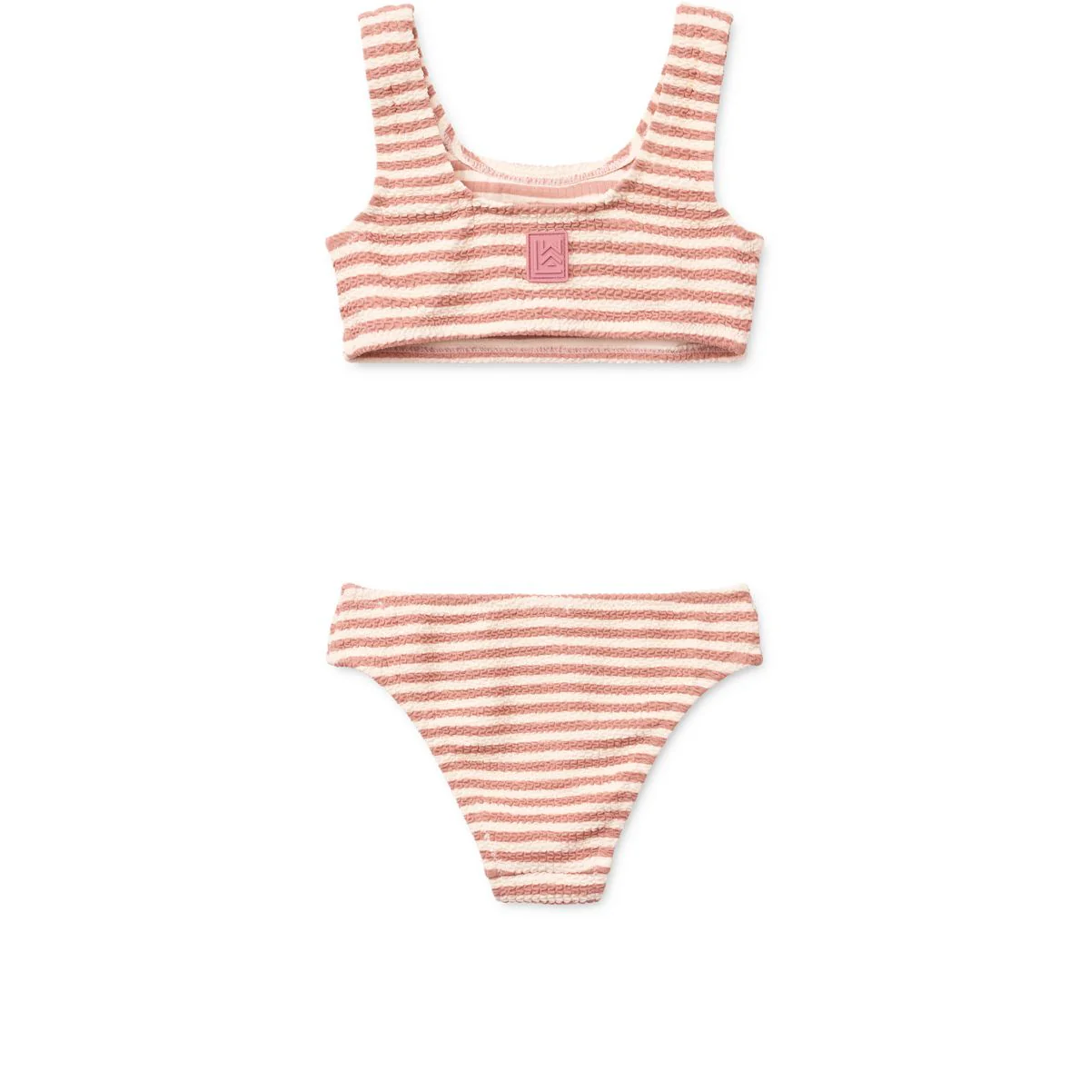 Eine moderne Version einer klassischen Silhouette, das sportliche BELLO Bikini-Set von liewood besteht aus Crinkle-Effekt-Badestoff, der weich und dehnbar ist und eine komfortable Passform bietet. Mit UV40+ Schutz, U-Ausschnitt und subtiler Streifenstruktur ist es eine elegante und einfache Wahl für die tägliche Bademode.
