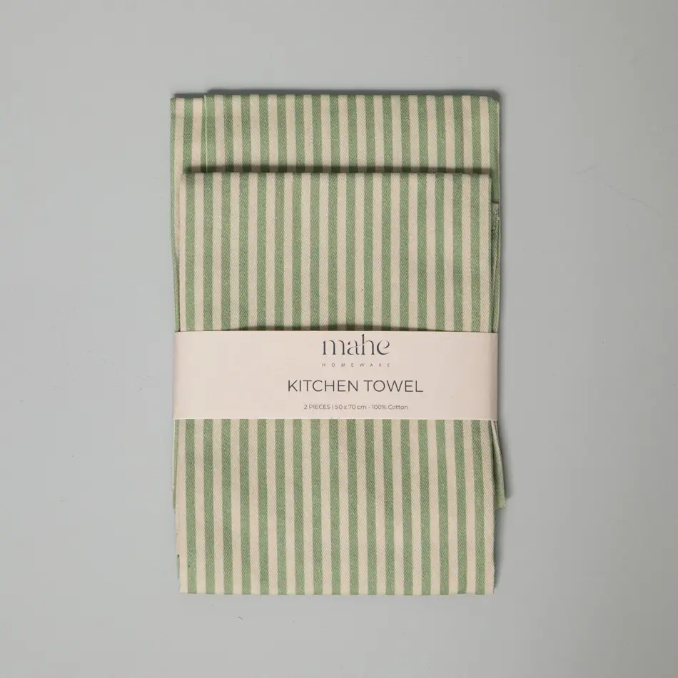 Set aus 2 Küchentüchern aus 100% Baumwolle im gestreiften grünen Motiv