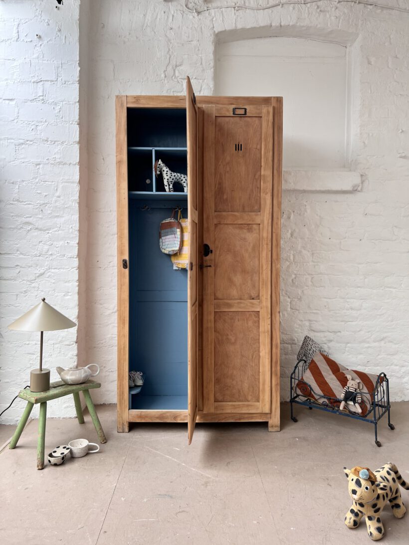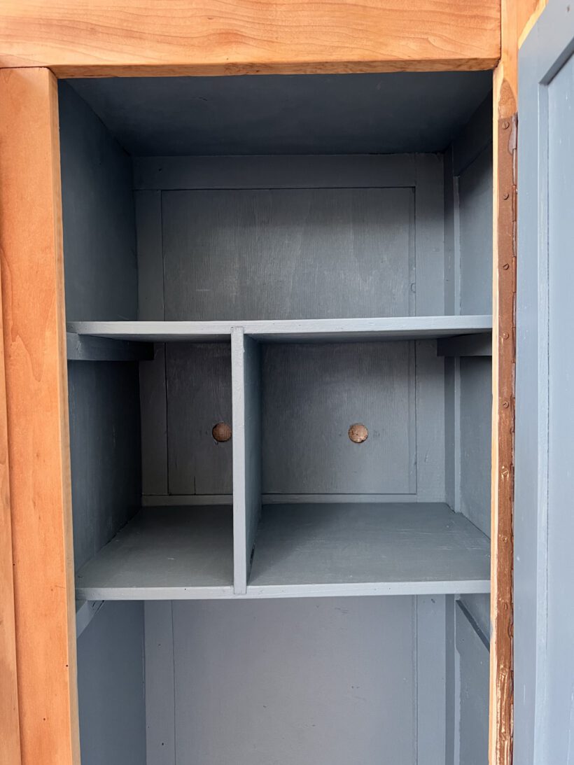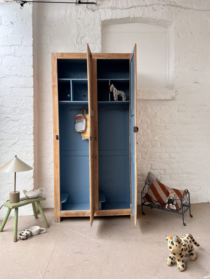 Gonzague ist ein Hingucker schlechthin: sein Holz ist wunderschön honigfarben, er hat eine traumhafte Patina und sprüht vor Charme. Er hat besondere Spuren der zeit, die ihn umso spannender machen (siehe Fotos). Innen hat er eine tolle Aufteilung und wurde von uns in ein tiefes blau von Farrow and Ball getaucht. Er hat besonders schmale Maße und ist nur 41 cm tief.