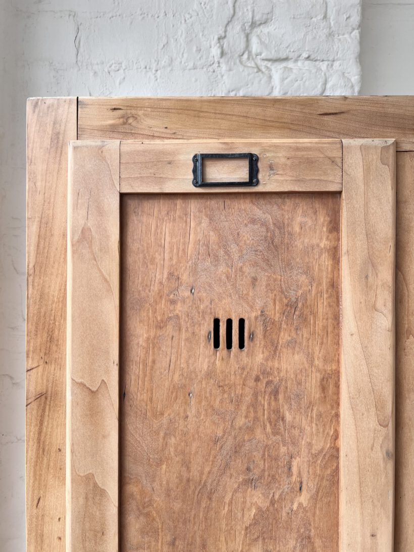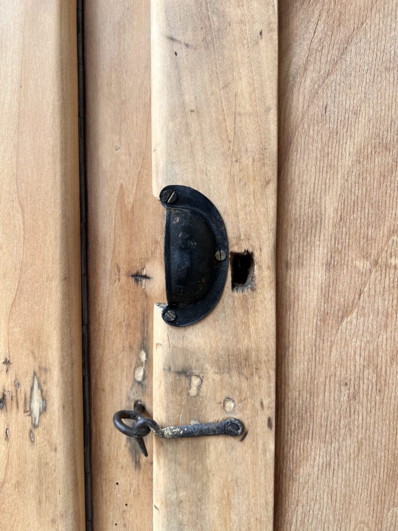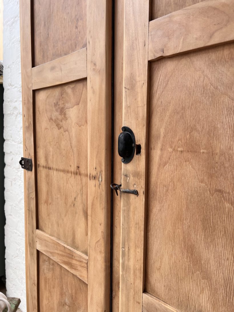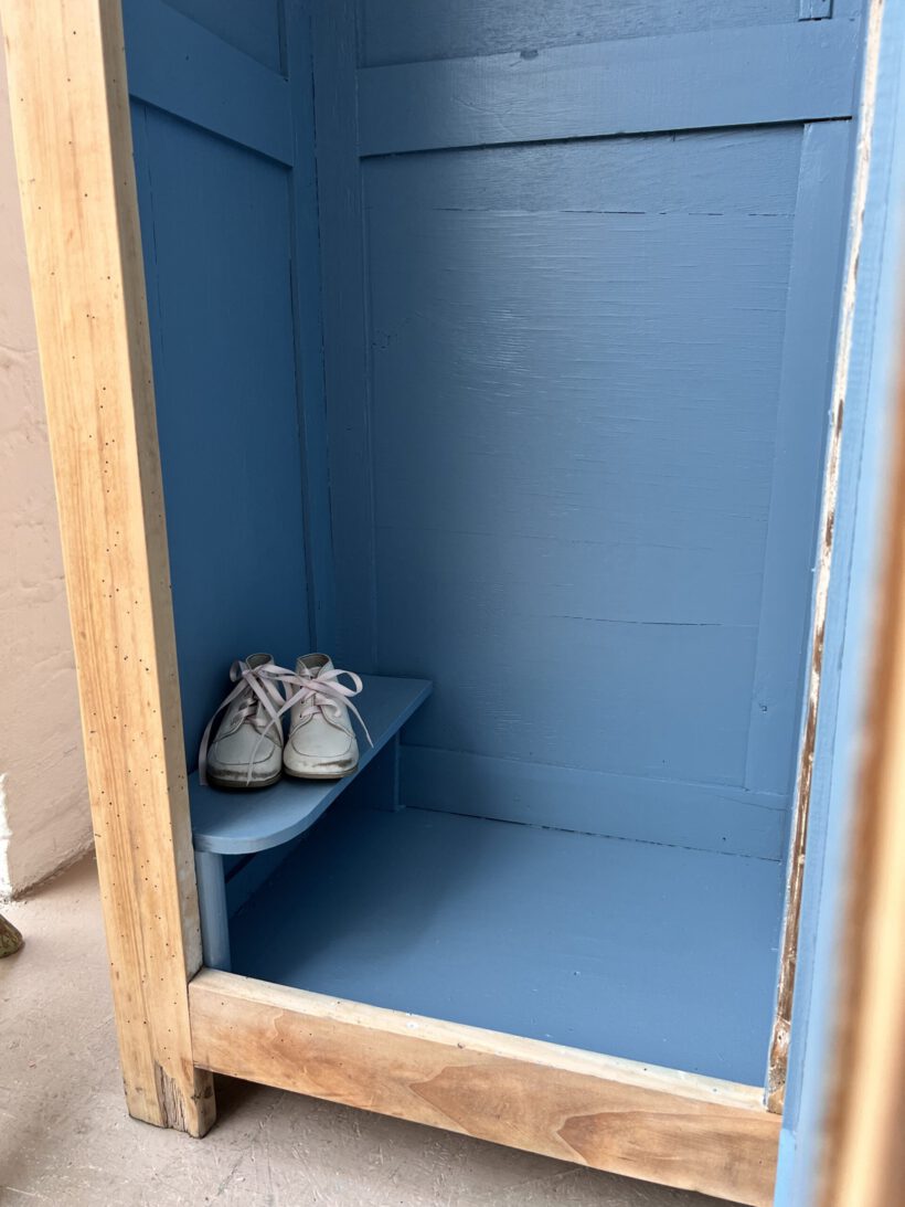 Gonzague ist ein Hingucker schlechthin: sein Holz ist wunderschön honigfarben, er hat eine traumhafte Patina und sprüht vor Charme. Er hat besondere Spuren der zeit, die ihn umso spannender machen (siehe Fotos). Innen hat er eine tolle Aufteilung und wurde von uns in ein tiefes blau von Farrow and Ball getaucht. Er hat besonders schmale Maße und ist nur 41 cm tief.