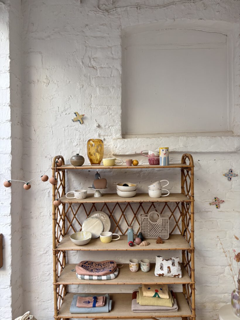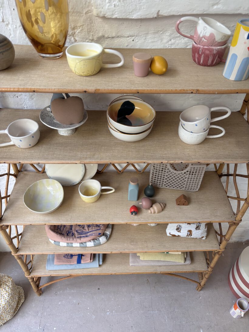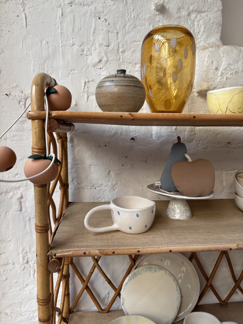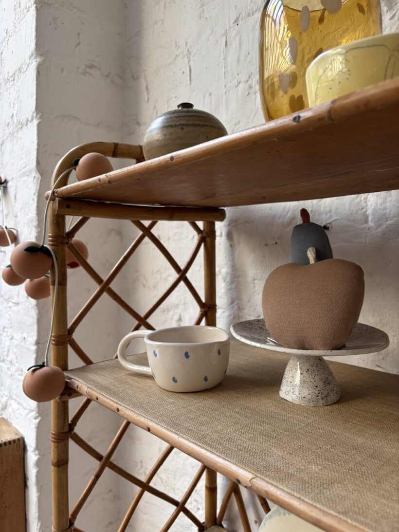 Mit viel Glück haben wie Hervé auf einem französischen Flohmarkt gefunden und wir sind überglücklich. Das Rattanregal stammt aus den 60 er Jahren und ist tatsächlich sehr gut erhalten. Bis auf ein paar kleine kaum sichtbare Spuren der Zeit (zum Beispiel links an der Seite am zweiten Regal fehlt ein kleines Stück Rattan – siehe Bild).