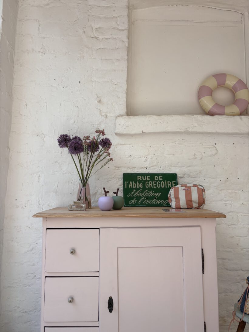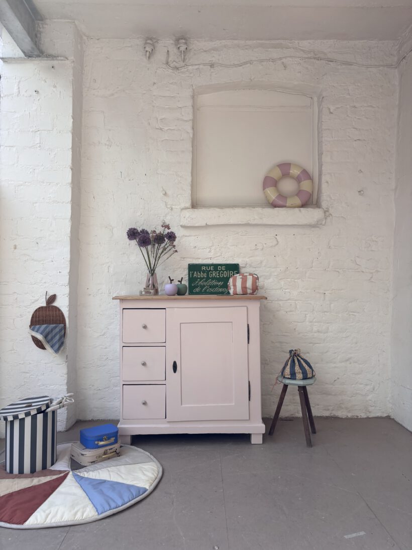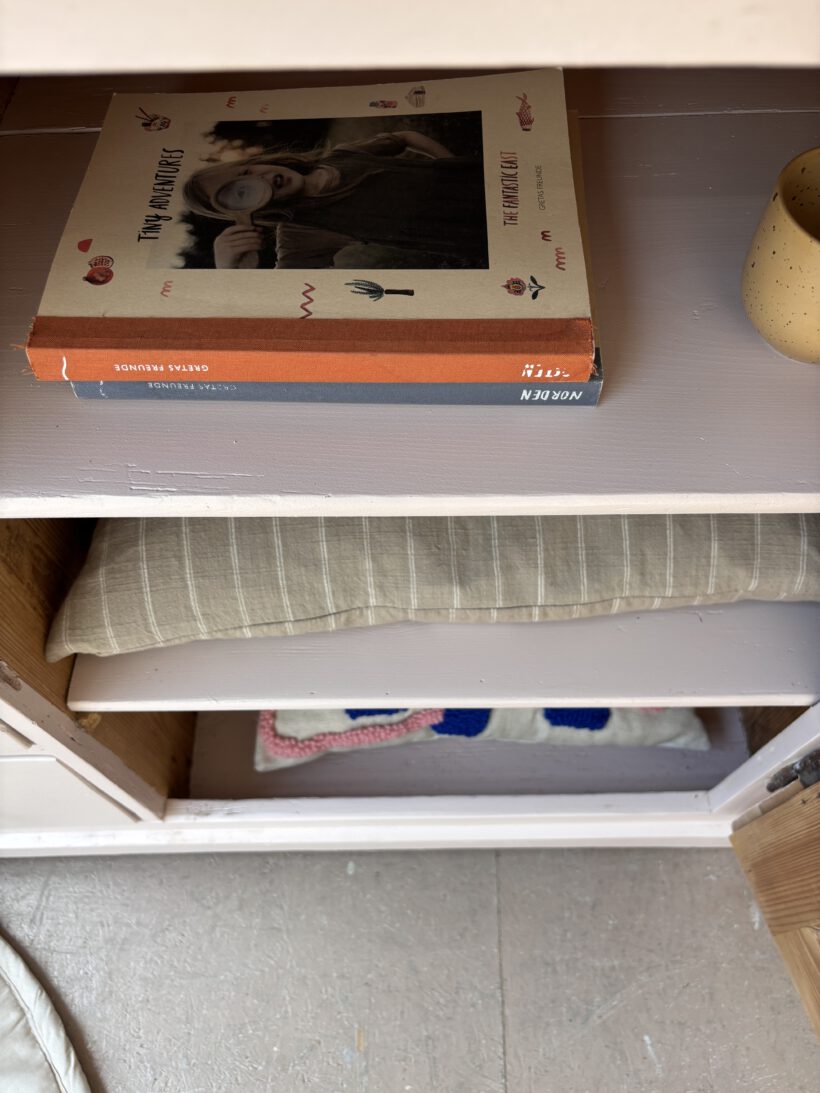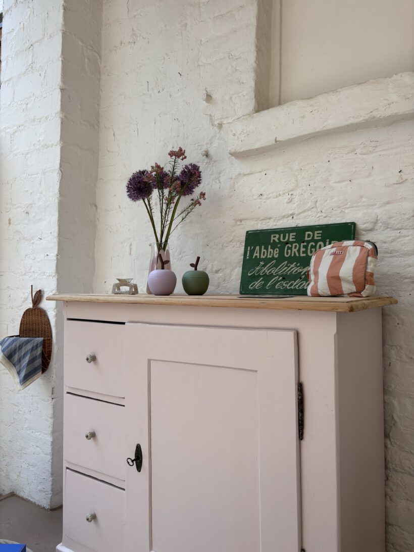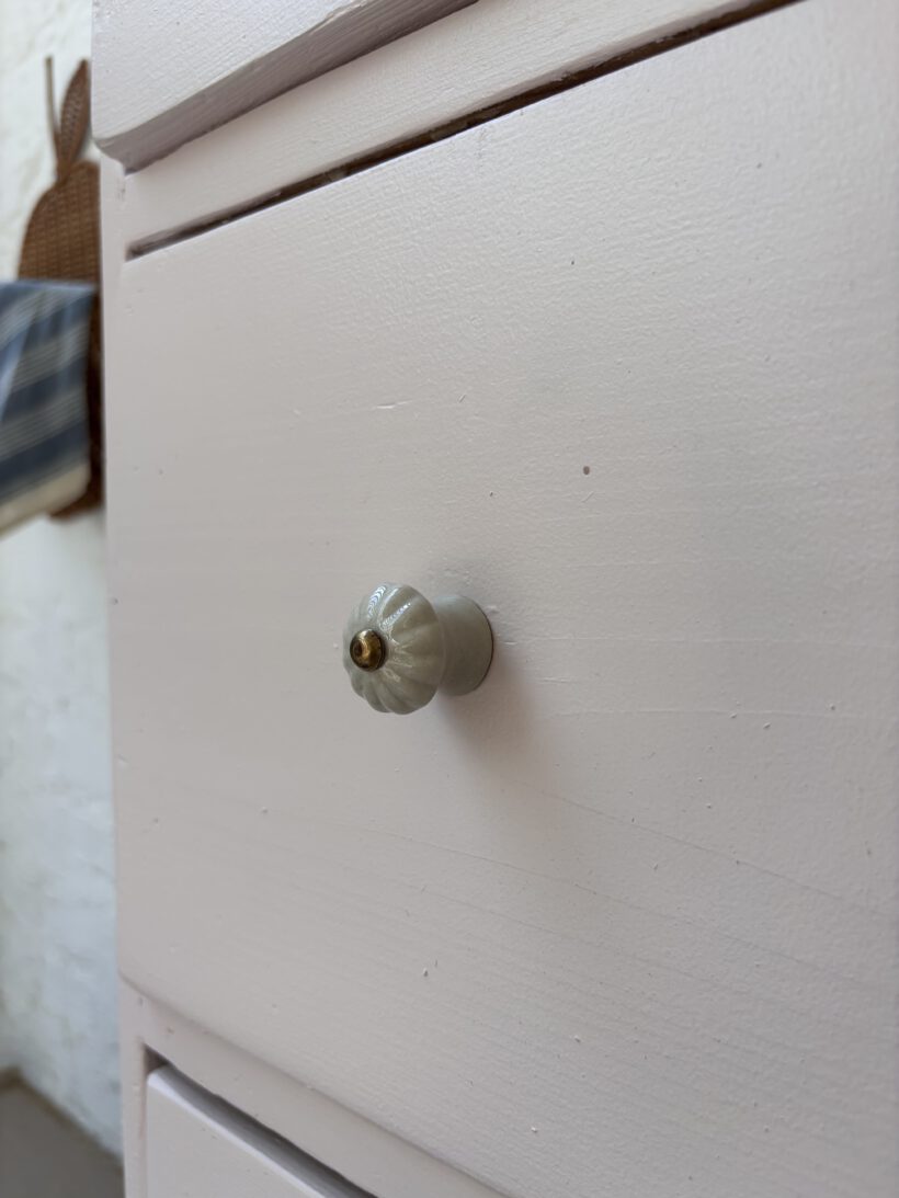 Hilma hat von uns ein rund um Wohlfühl-Paket bekommen: ihr Holz wurde geschliffen, ausgebessert, grundiert und lackiert in einem zarten rosa von Farrow and Ball. Sie hat neue Keramikknöpfe von uns bekommen und auch innen haben wir die Böden lackiert. Die obere Platte haben wir ausgebessert, geschliffen und gewachst in Natur belassen. einfach wunderschön!