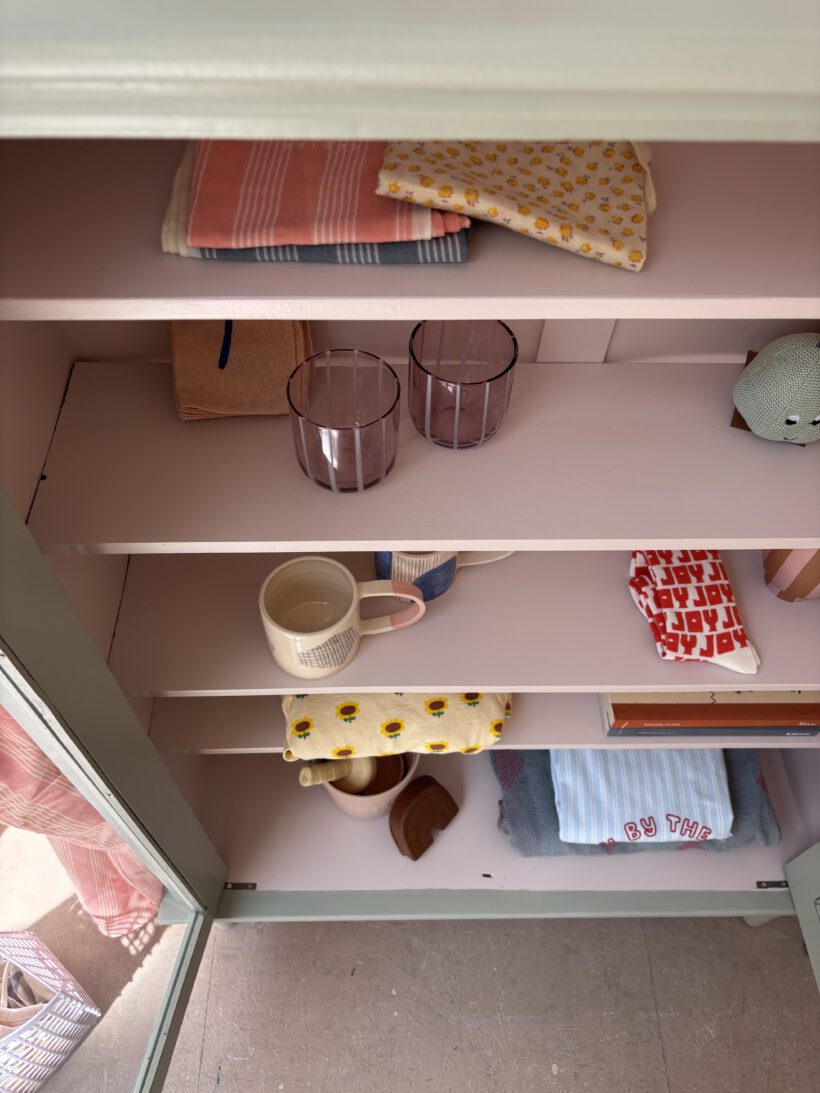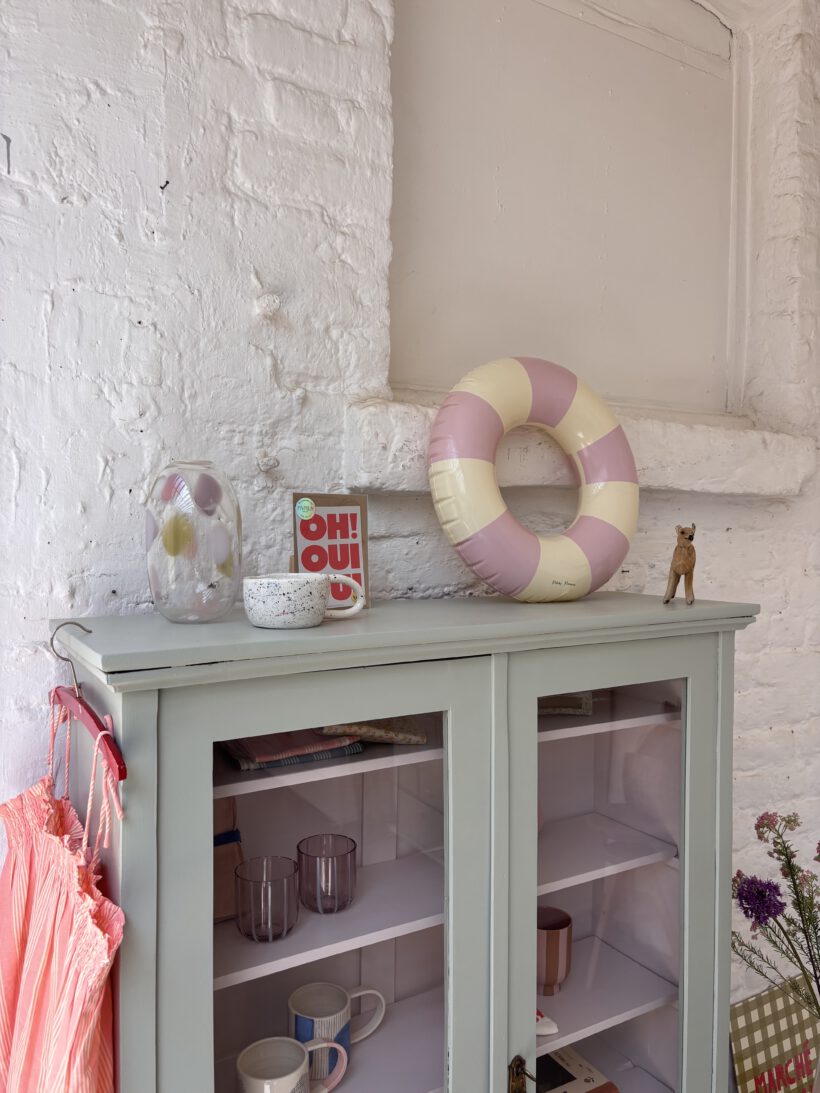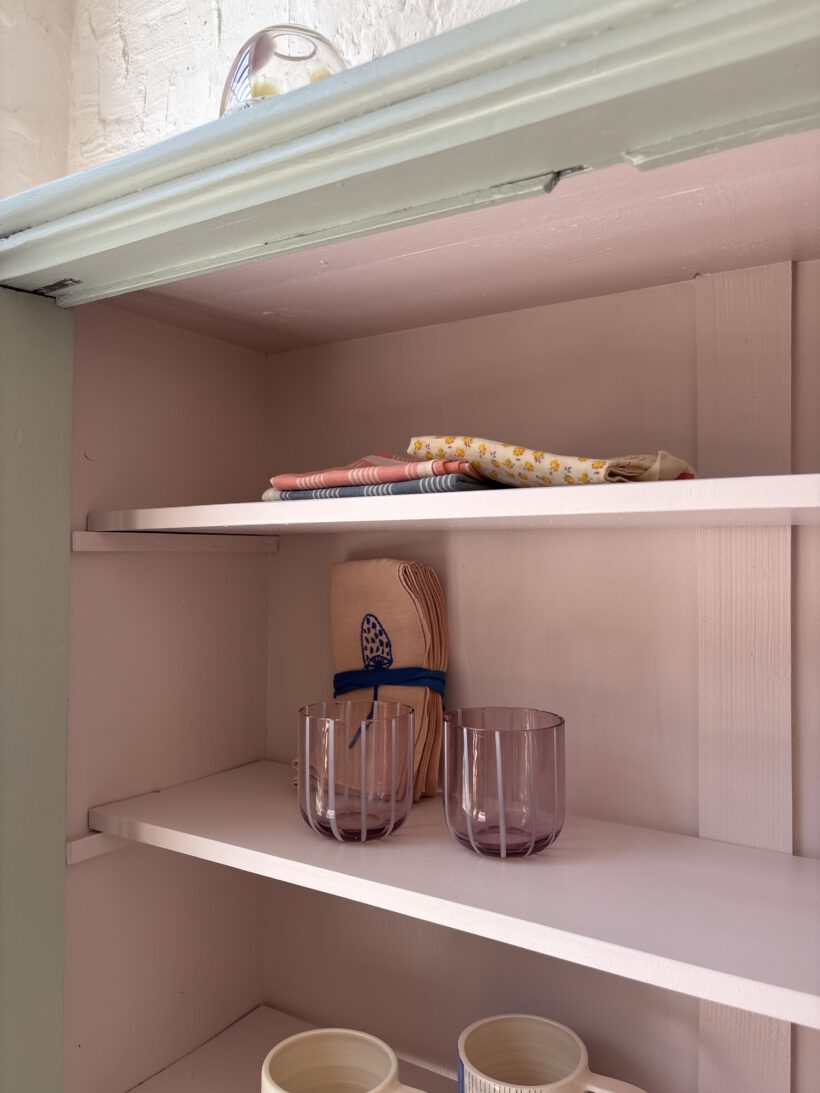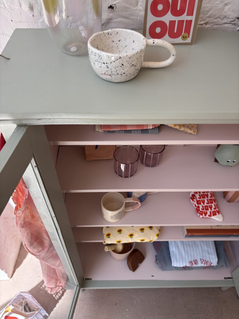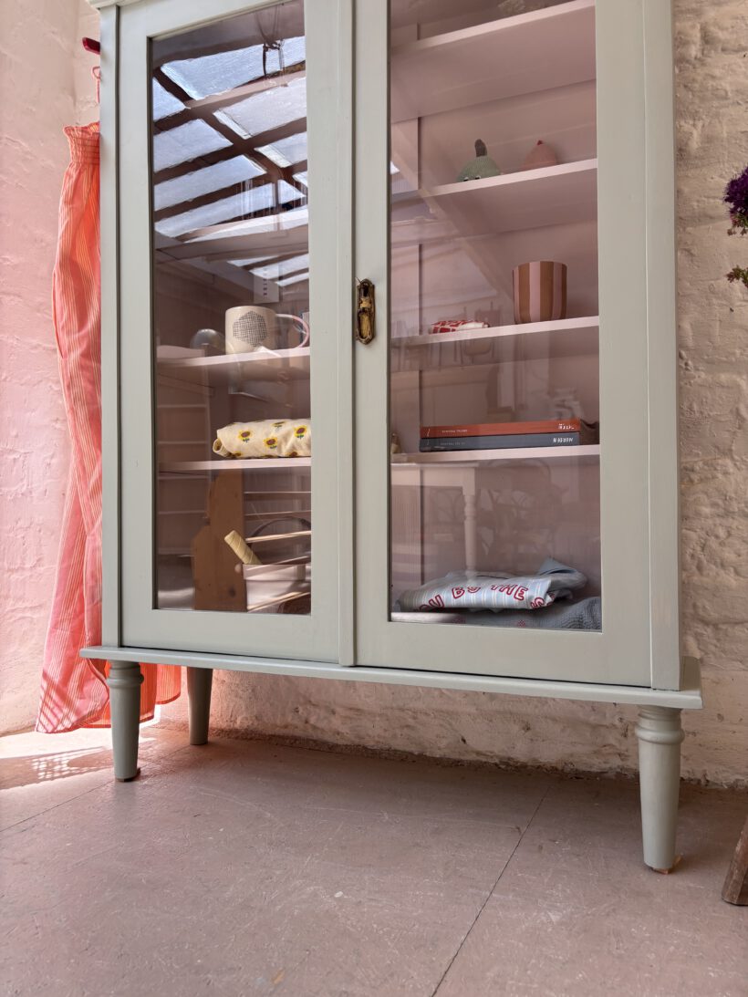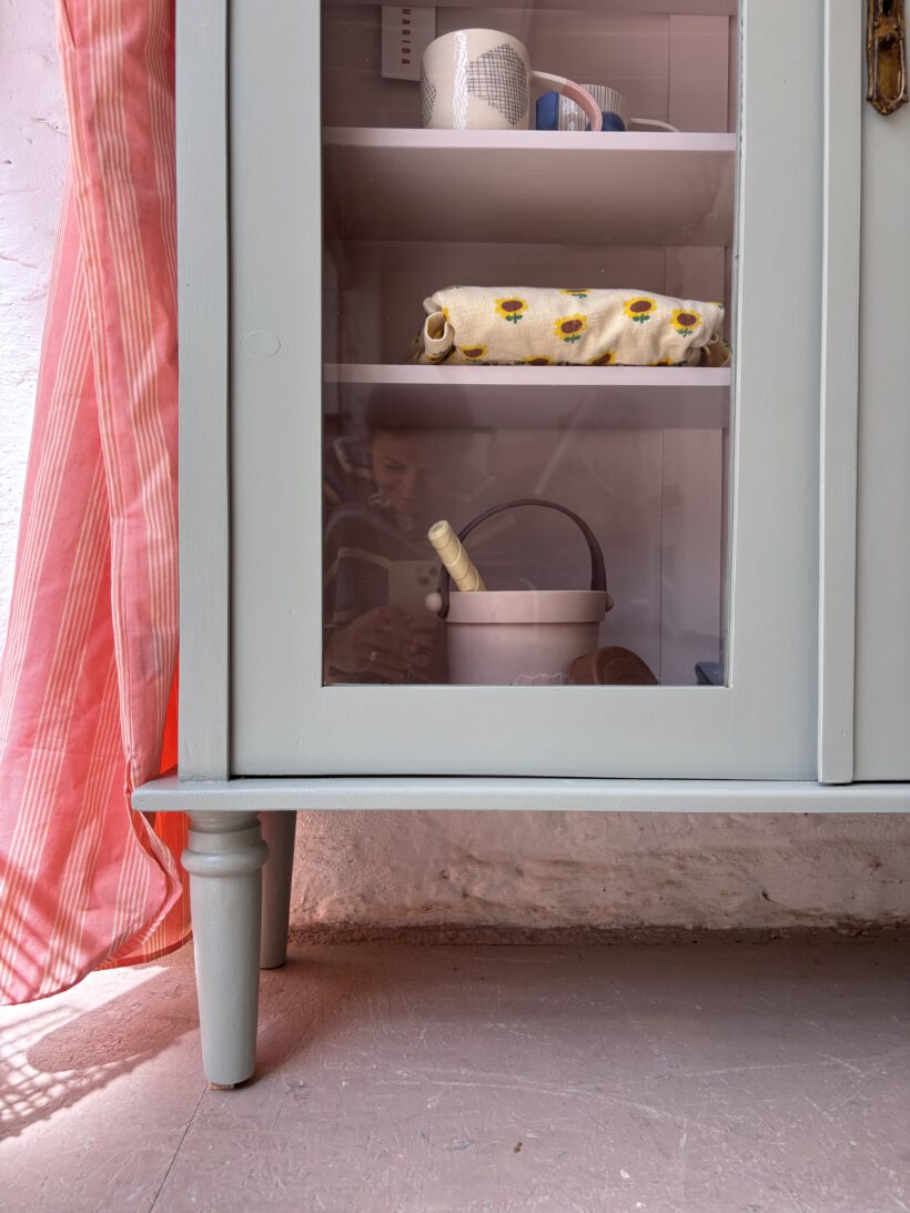 Hilma kommt auf höhen eleganten Füßen daher und strahlt ganz leicht durch ihre schlichte Schönheit. Sie ist der zweite Teil eines alten großen Buffets, dass wir umgebaut haben. Hilma hat von uns neue Füße aus einem alten Möbelgestell bekommen. Sie wurde aufbereitet, restauriert, grundiert und zwei Mal lackiert. außen Silberfarben und innen rosa mit Farrow and Ball Farben.