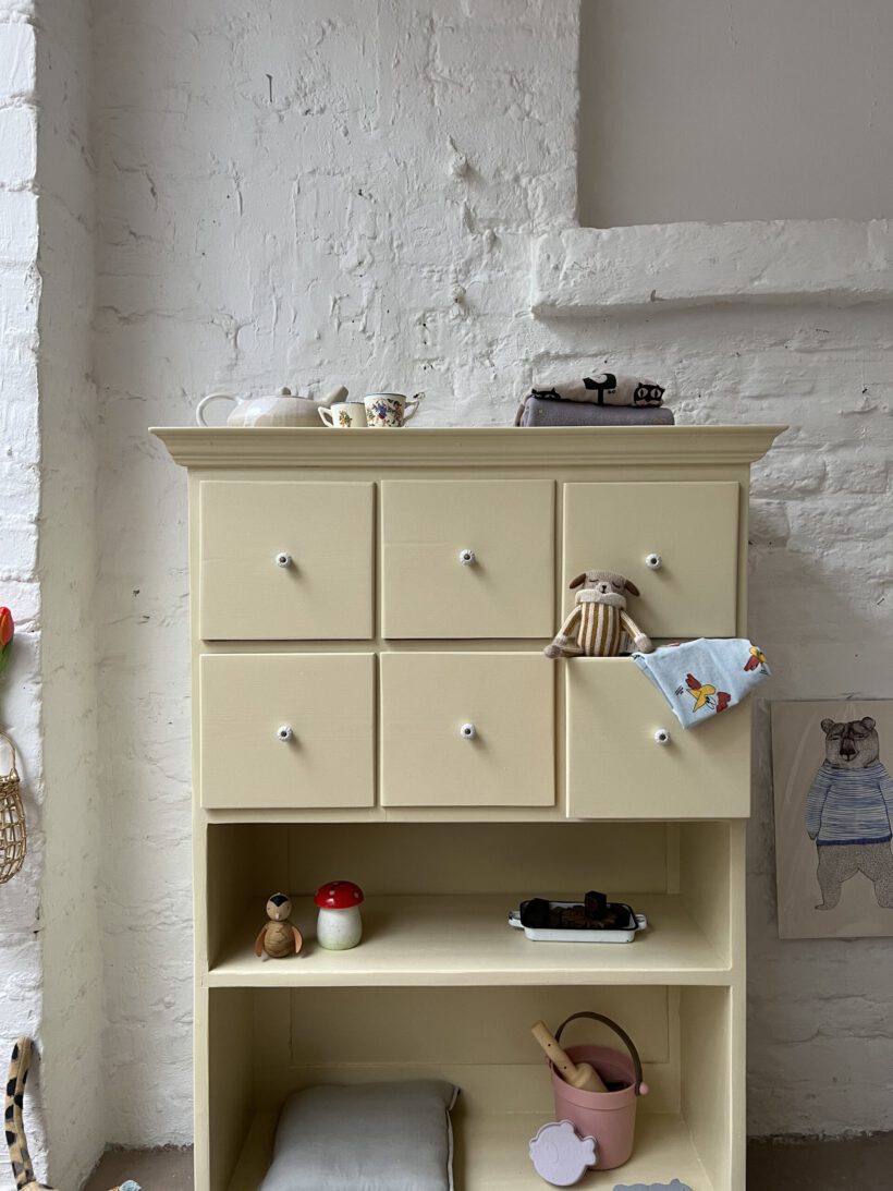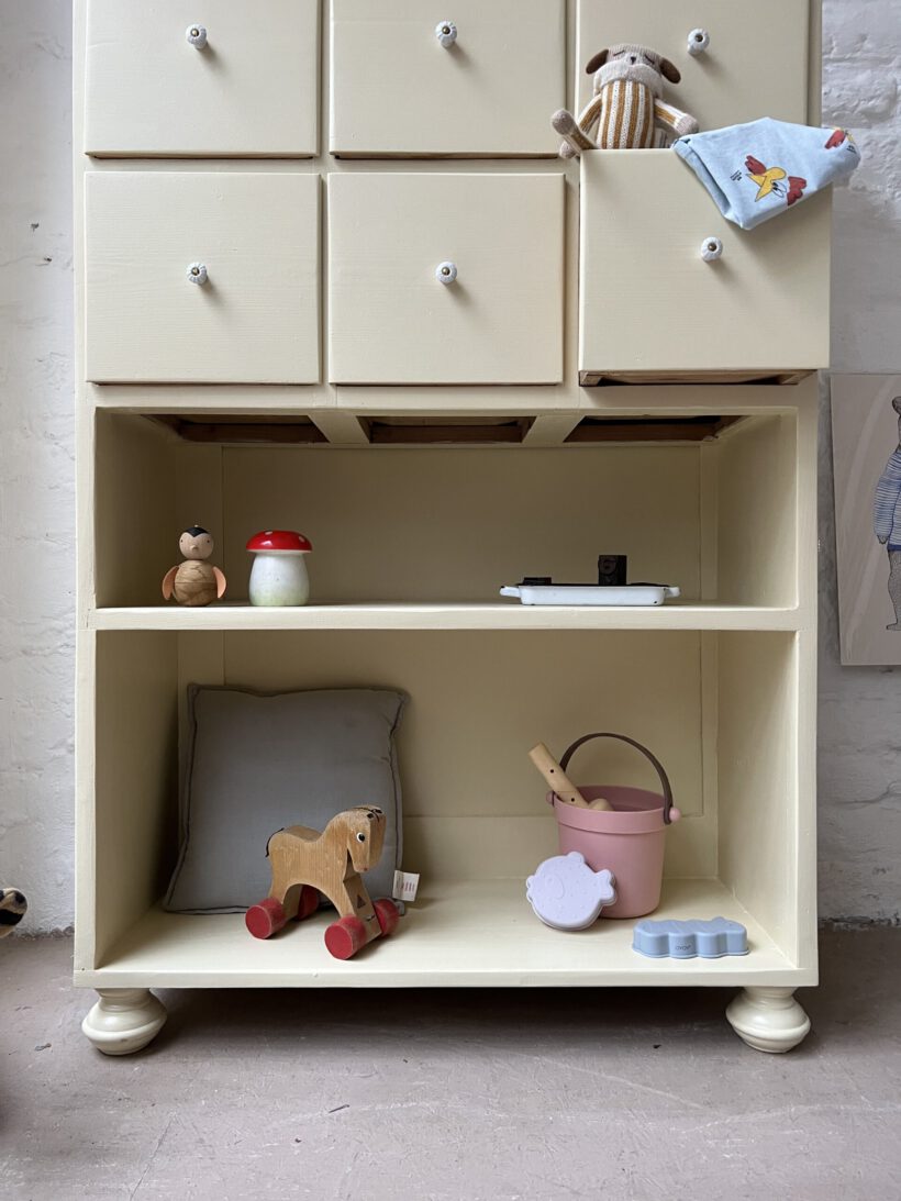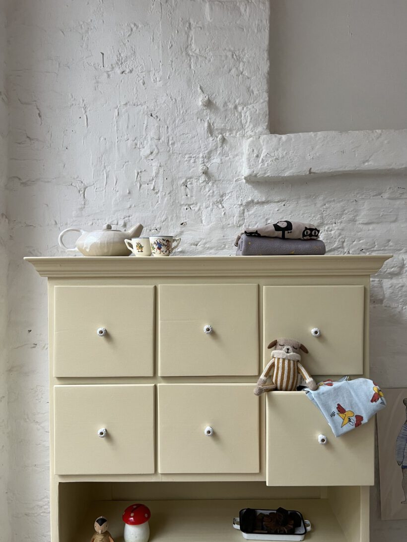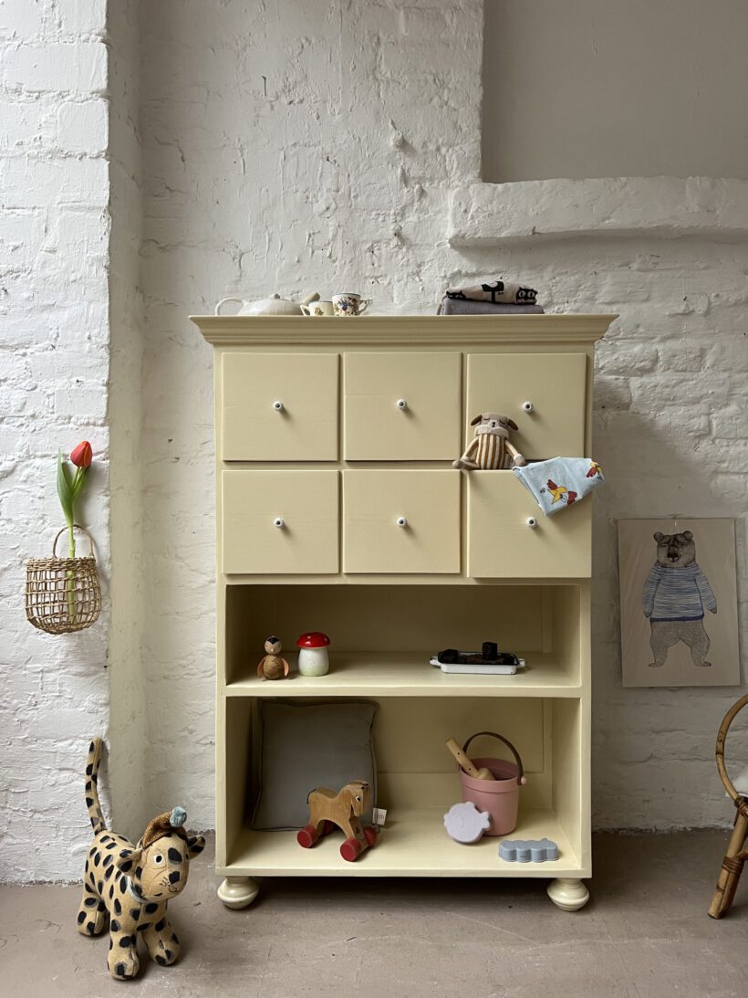 Wir haben Irma restauriert, grundiert und zwei Mal lackiert in einem Pastelgelbton von Farrow and Ball.