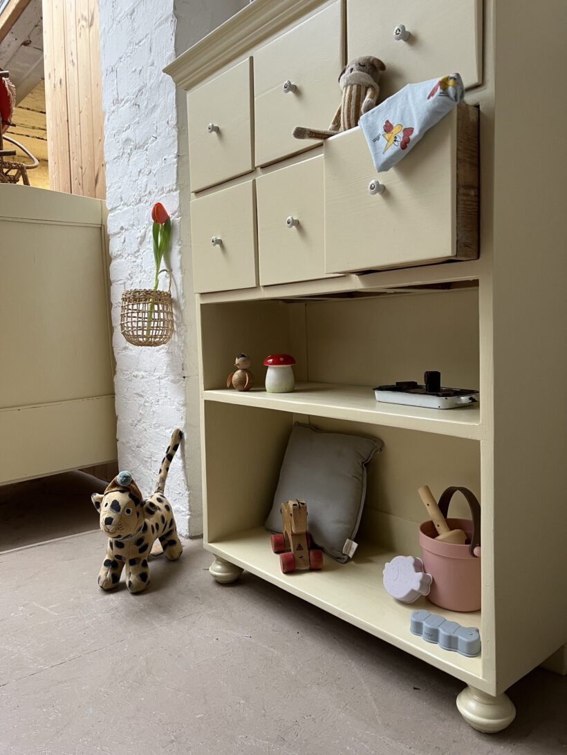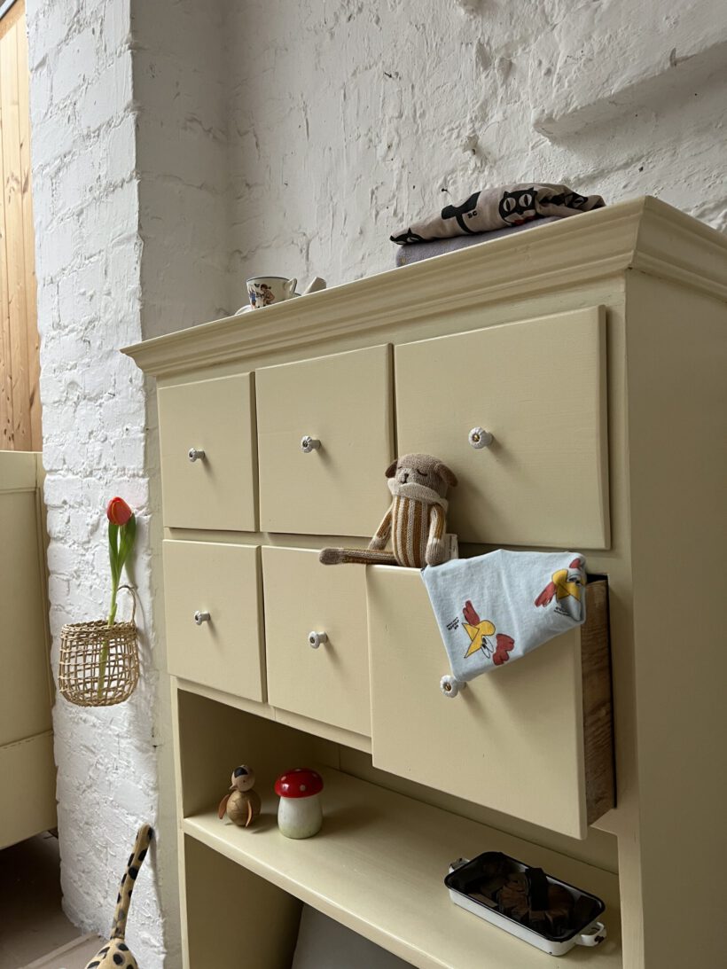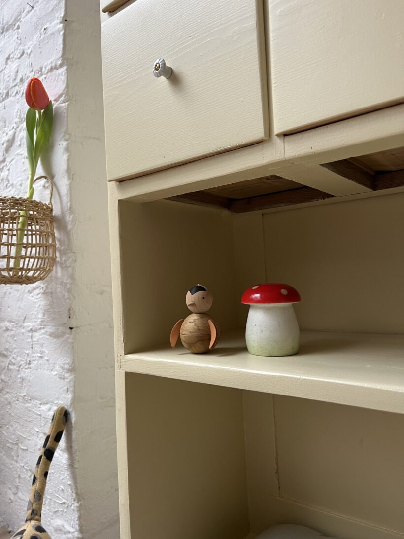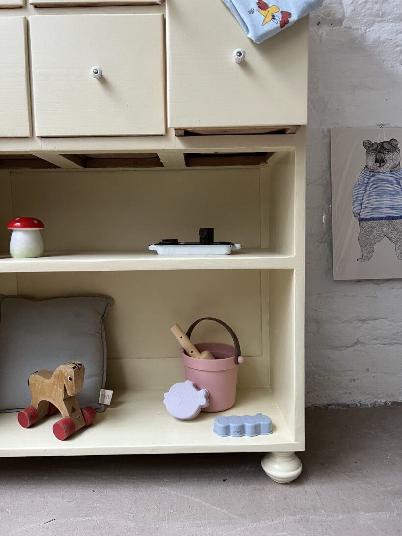 Wir haben Irma restauriert, grundiert und zwei Mal lackiert in einem Pastelgelbton von Farrow and Ball.