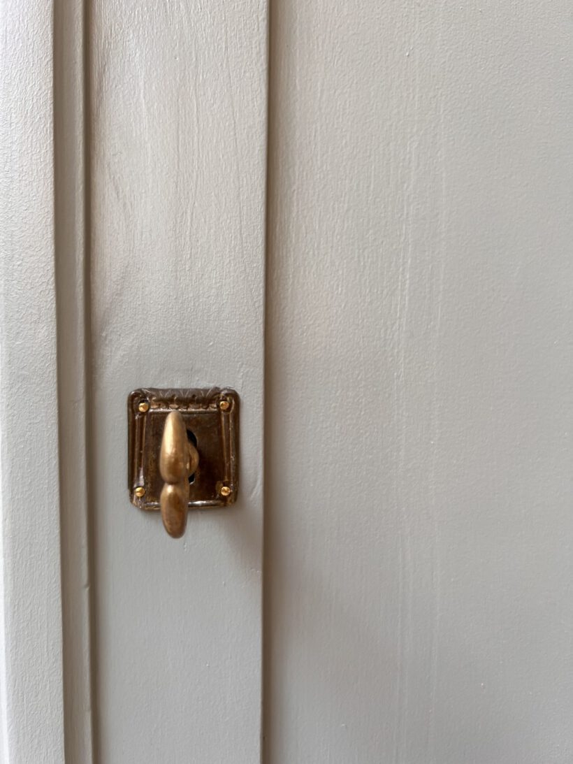 Der Schlüssel funktioniert einwandfrei und die linke Tür wird mit einem antiken Hacken verschlossen.